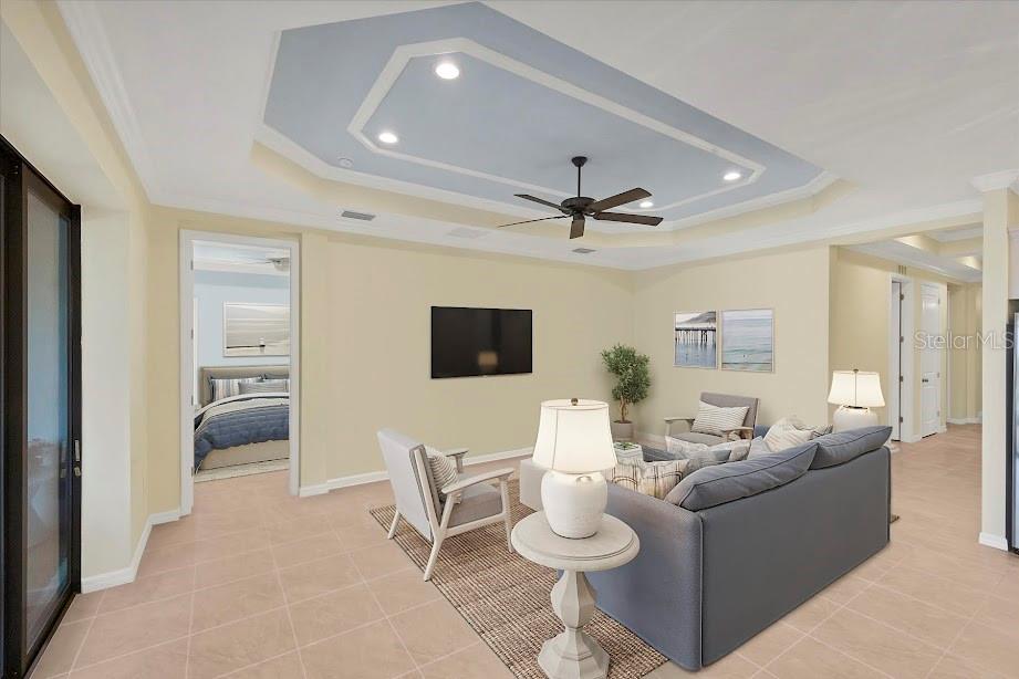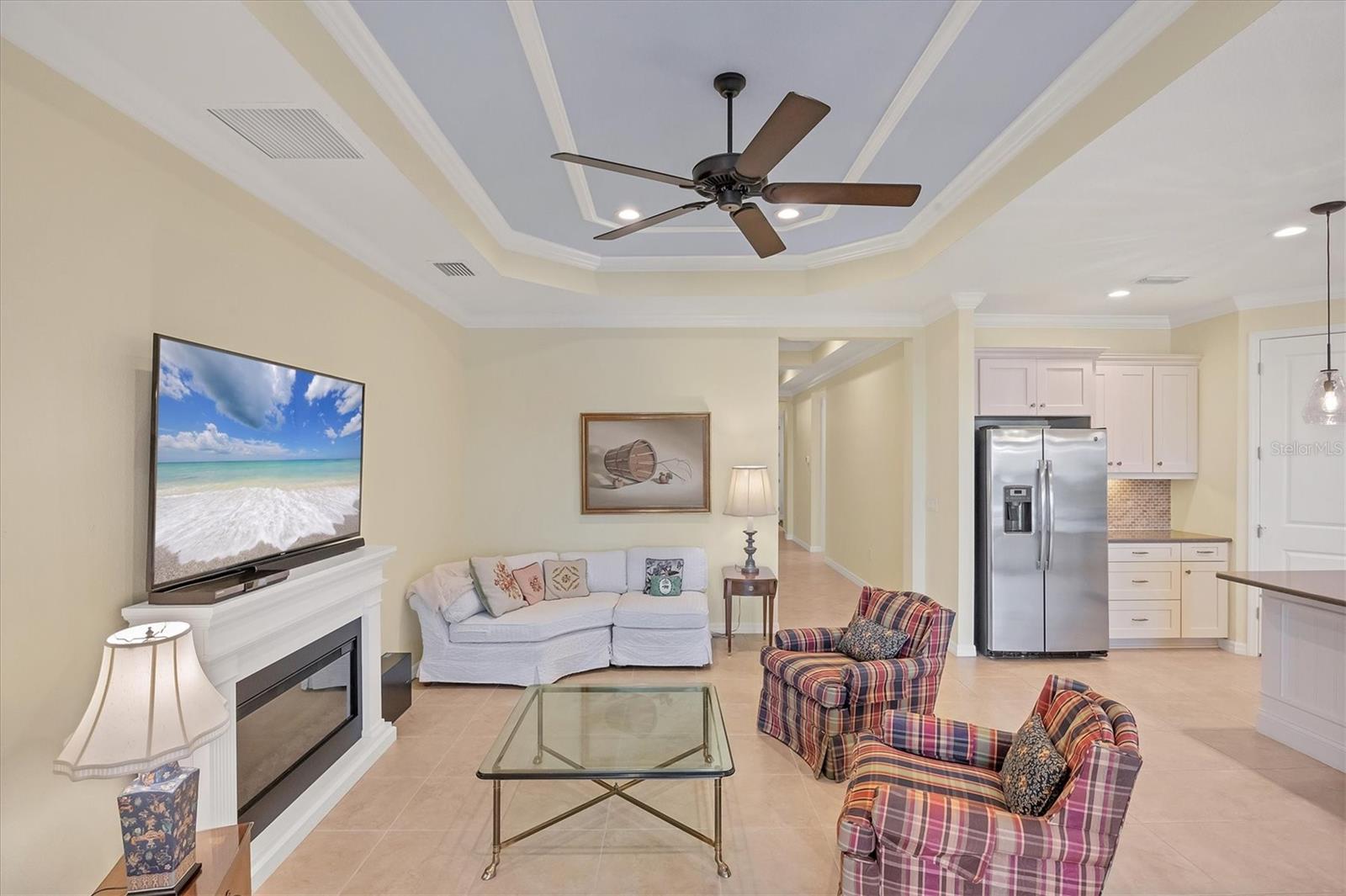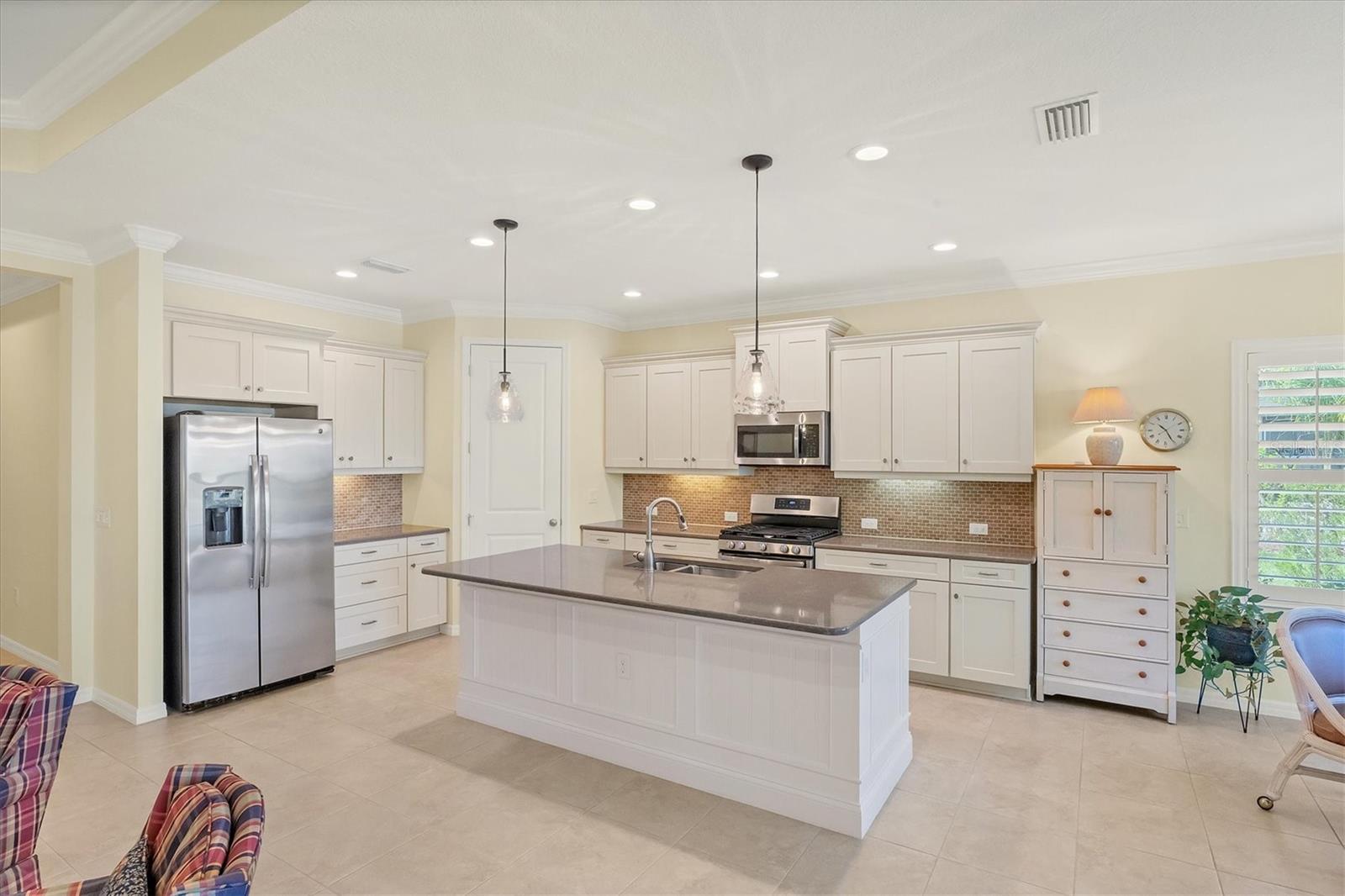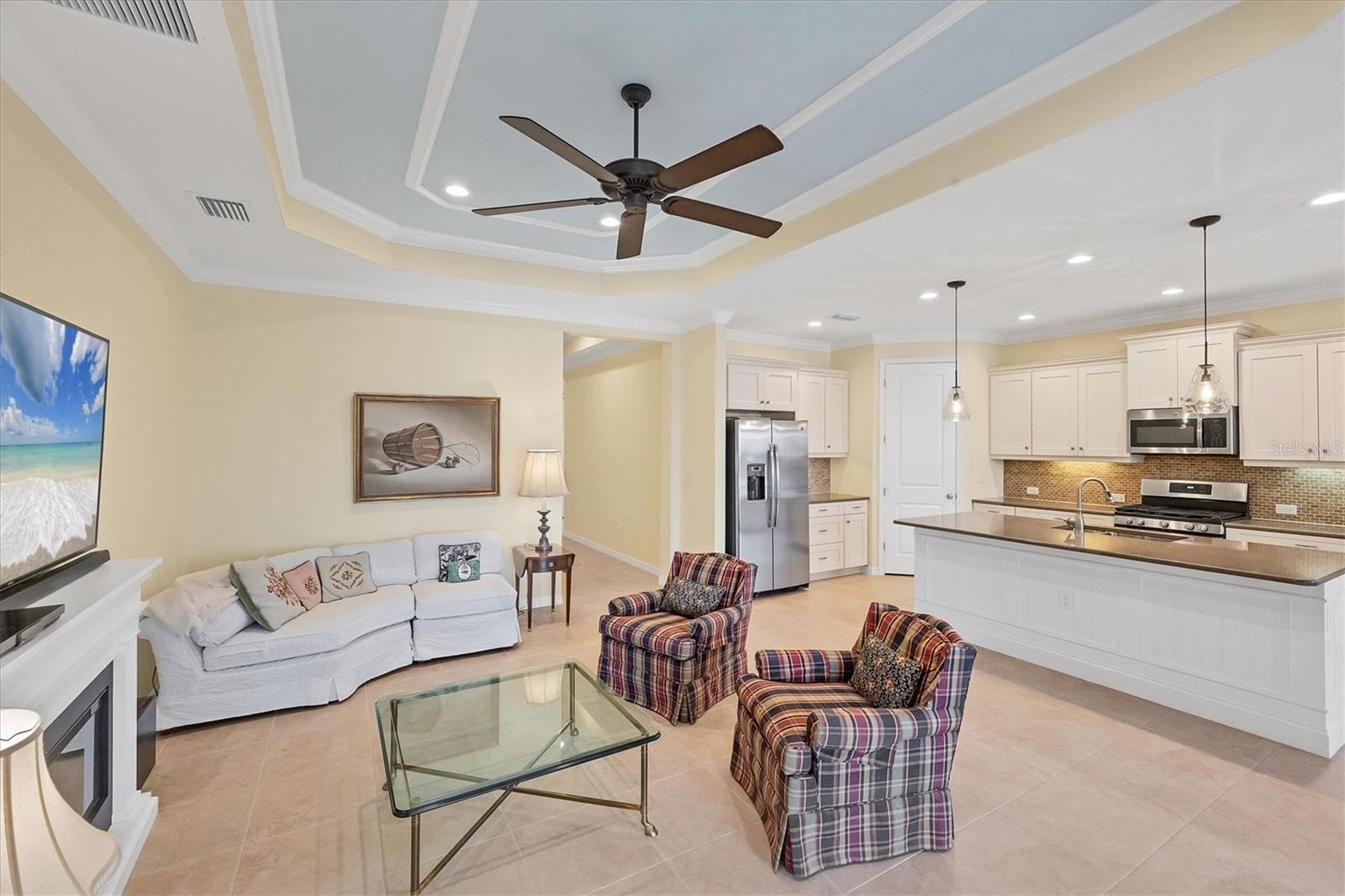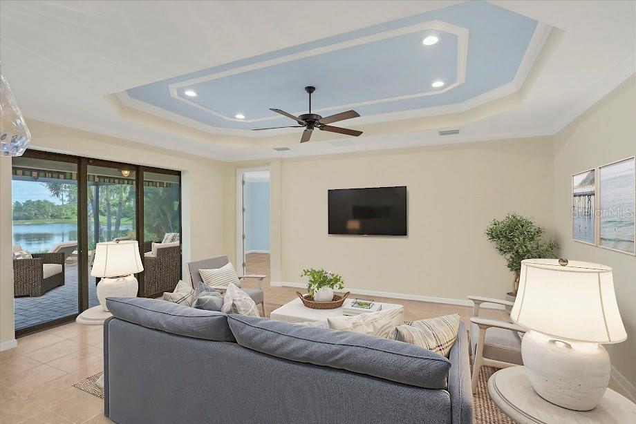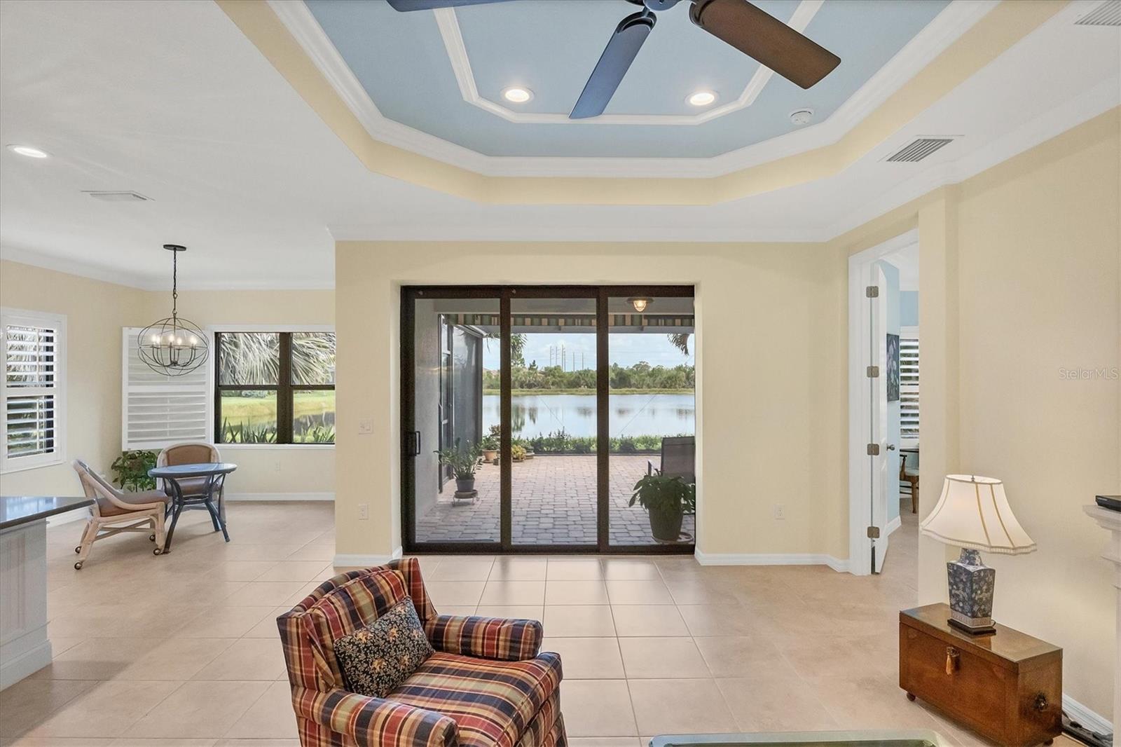 DON'T WAIT TO SEE THIS MAGNIFICENT HOME BEING OFFERED NOW!! Located on a short cul de sac street with little drive through traffic. Boasting a GORGEOUS LAKE VIEW from the extended pavered lanai with SPECTACULAR SUNSETS! Large lot has been transformeed with tropical trees and landscaping to create a peaceful and serene tropical oasis. Perfect for watching wild life. Inside this beautiful home you will find a great room open floor plan with 18" PORCELAIN TILE throughout main areas of home and hardwood in the den up front. Loaded with upgrades this home also features crown molding, tray ceilings, designer fans and fixtures, 4" PLANTATION SHUTTERS and 8' Doors throughout. Kitchen shines with upgraded cabinets, under cabinet lighting, extra recessed lighting, Zodiac counter tops, tile backsplash, stainless steel appliances, and the stove is GAS run for those chefs in the family. Gorgeous Lake views from all main rooms and master bedroom. Let the inside and outside flow together with POCKET SLIDERS TO LANAI. Lanai is pavered ( along with front walk) and extended, with CLEAR VIEW SCREENING to showcase the lake and tropical landscape. Night time is special with outside lighting to make your surroundings glow. If you are tired of the sunshine, there is a RETRACTABLE AWNING WITH LIGHTS, and a RETRACTABLE SIDE SCREEN for shade if desired. Back inside again, property offers 3BD/3BA/DEN. The extremely spacious master bedroom en suite has plenty of room for a king size bed , night stands, and a separate sitting area for reading or watching TV. En suite master bath offers dual sinks, walk in shower, 2 closets and linen closet. Two Guest bedrooms at other end of home for privacy. Guest bedroom 2 has an en suite bath also, perfect for longer staying guests. Separate Den/Office for those who want to work in the home. Eastern exposure in front provides tons of natural light to work with and you can shut the world out with GLASS FRENCH DOORS while still keeping an eye on the comings and goings. Also featured is a whole laundry room with wash sink and hanging/storage racks. 2 Car garage with wall mounts and storage racks. NO REASON TO WORRY ABOUT HURRICANES, HOME WAS BUILT WITH HURRICANE IMPACT WINDOWS AND PROPERTY COMES WITH WHOLE HOUSE KOHLER GENERATOR IF THE LIGHTS DO FLICKER. Electrical system was upgraded. Check out the 3D walk through tour at: https://my.matterport.com/show/?m=vVBf6oLXSd6 Milano is a FANTASTIC GATED COMMUNITY, offering Clubhouse, heated swimming pool, picklball courts, tennis courts, bocce ball, Fire Pit gathering area, dog park, and Myakka River Nature Trails for walking. LOW HOA'S. NO CDD. Located minutes to Downtown Venice, Venice Beach, shopping, restaurants, theaters, outdoor activities, Nokomis Beach, Casey Key, and so much more. The new shops and Atlanta Braves spring training facility is not far away. Up in Sarasota visit the many sights to see at Mote Marine, Selby Gardens, Ringling Museum, and a thriving art center on Main St. Sarasota Airport is just a short drive along with the UTC Mall and shops. Highways are just around the corner. COME SEE THIS BEAUTIFUL HOME NOW BEFORE IT IS GONE!!