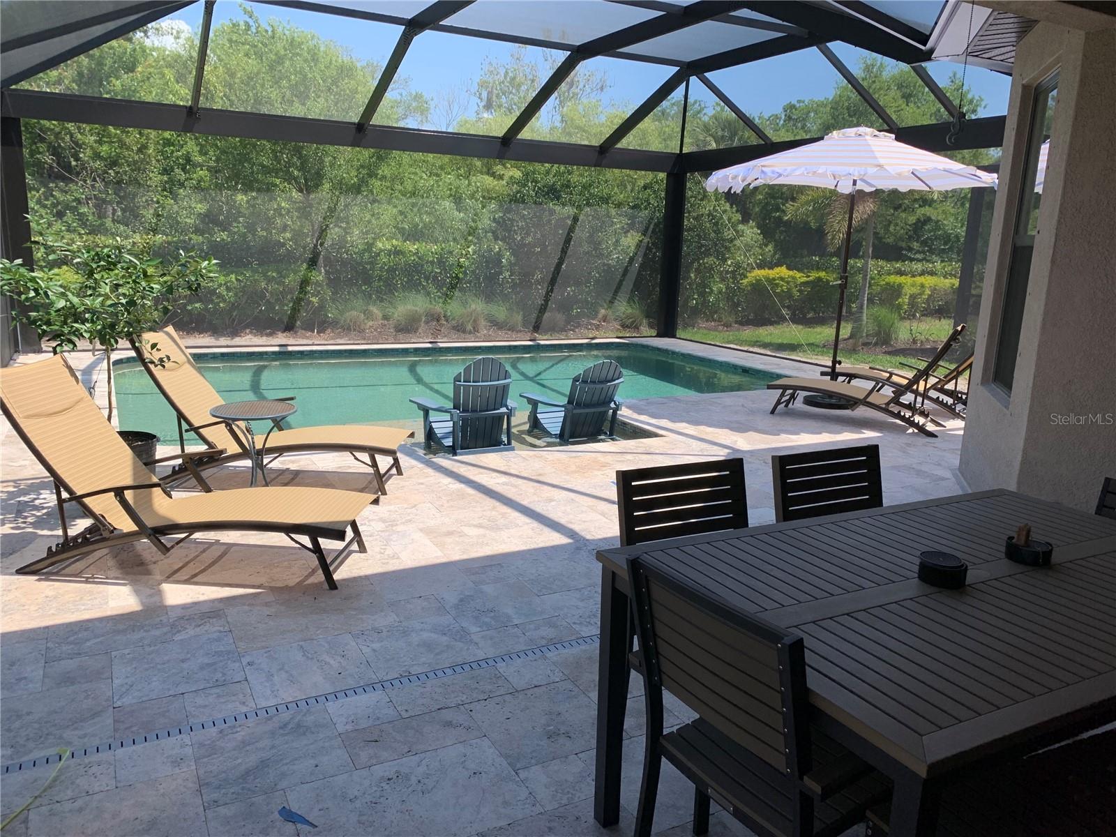 One or more photo(s) has been virtually staged. *NOW PRICED TO SELL* DON'T MISS THIS OPPORTUNITY TO OWN A BEAUTIFUL HOUSE WITH A STUNNING PRIVATE POOL AND LUSH LANDSCAPING! Immerse yourself in RESORT-STYLE LIVING at Bellacina by Casey Key! NOT IN A FLOOD ZONE! Welcome home to this stunning Taylor Morrison Roma model, built in 2020, featuring 1,678 sq ft, 2 bedrooms, 2 bathrooms, and a versatile DEN, which can easily be used as a 3rd bedroom with a wardrobe closet and Murphy bed. Step out to your private tropical oasis, featuring a 400 sq ft HEATED SALTWATER POOL with a pebble tec surface, travertine tile patio and pool deck, and a WATER DECK with BUBBLER. Light up your night with color-combo pool/bubbler lighting — All pool equipment Wi-Fi enabled! The patio is prepared for you to install an outdoor kitchen, with a gas line already in place. For peace of mind, this home is equipped with HURRICANE SHUTTERS and remote-controlled KEVLAR HURRICANE SHADES for the lanai. The two-car garage features two durable metal hanging shelves, ideal for additional storage. Baffles are installed on the roof vents for further protection against water intrusion. You have exclusive access to the Legacy Trail right down the street! Bring your dog to the nearby designated bark park to frolic and play! Step inside and you'll be delighted to find a split-bedroom floor plan, a spacious kitchen with all stainless steel appliances, quartz countertops throughout, recessed lighting, upgraded ceiling fans, crown molding, plantation shutters, a laundry room, a 2-car garage, and more! The primary bedroom features a bay window that overlooks the pool and lush landscape. The ensuite bathroom includes dual sinks, a walk-in closet, a seamless glass shower enclosure, and a rain showerhead. Dryer, stove, and hot water tank run on gas. Centrally located between Venice and Sarasota with quick access to I-75 and US 41, with Nokomis beach and the North Jetty, where manatee and dolphin sightings are frequent, just 3.5 miles from your door. Quaint and historic downtown Venice and Venice Beach are just 5.5 miles away! This tight-knit, charming MAINTENANCE-FREE GATED COMMUNITY has a must-see amenity center! Offering complimentary and paid programs to include adult socials, potlucks, craft classes, card games, community holiday gatherings, BBQs, and much more. Amenities include a FITNESS CENTER, COMMUNITY POOL, SPA, GRILL, POOL TABLE, PICKLEBALL, BOCCE BALL, TENNIS COURTS, FIRE PIT, PLAYGROUND, WALKING AND BIKING TRAILS, COMMUNITY CENTER, AND GOLF CARTS ARE WELCOME! You need to see this delightful home and community in person! Schedule your showing today!