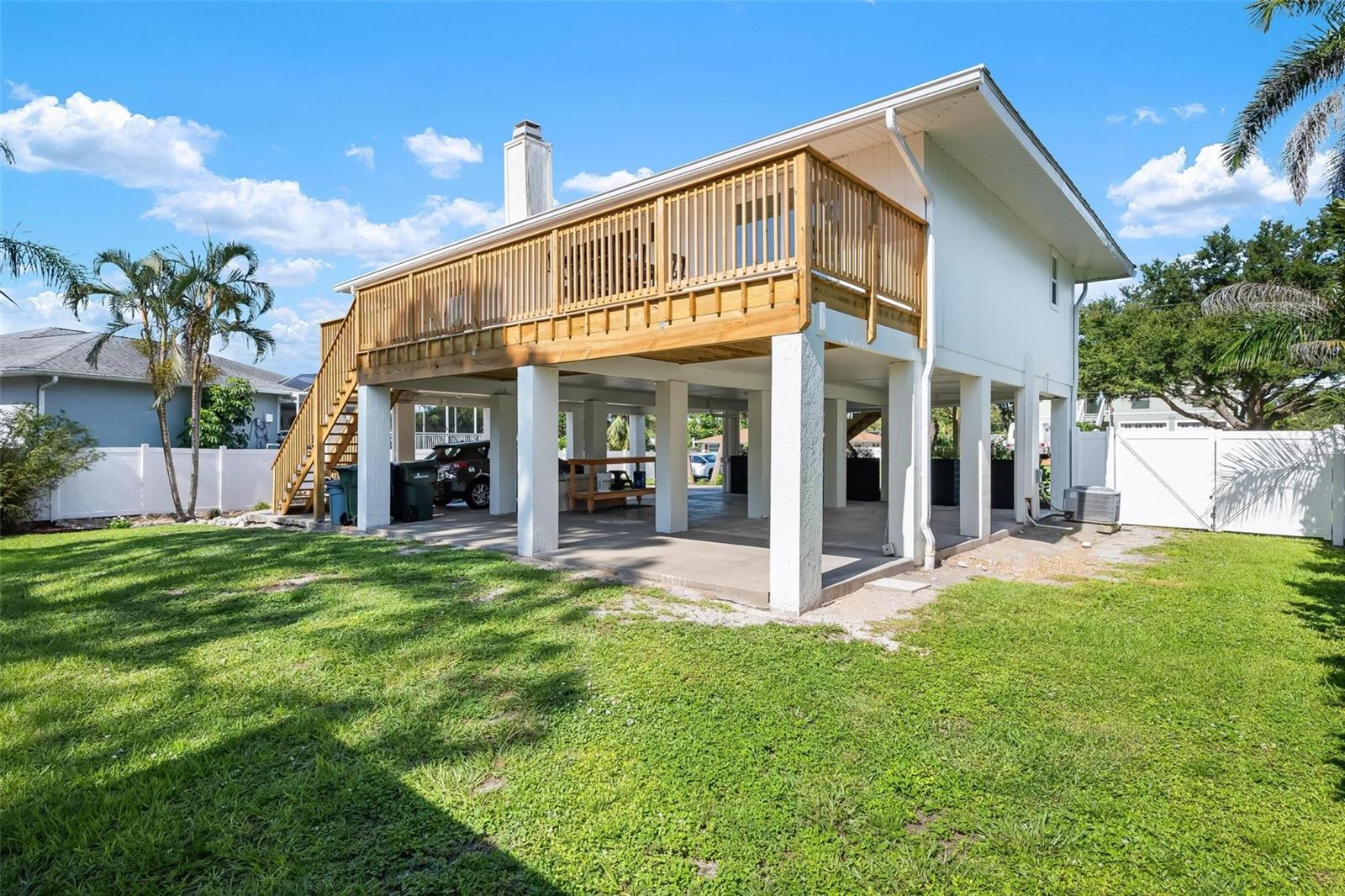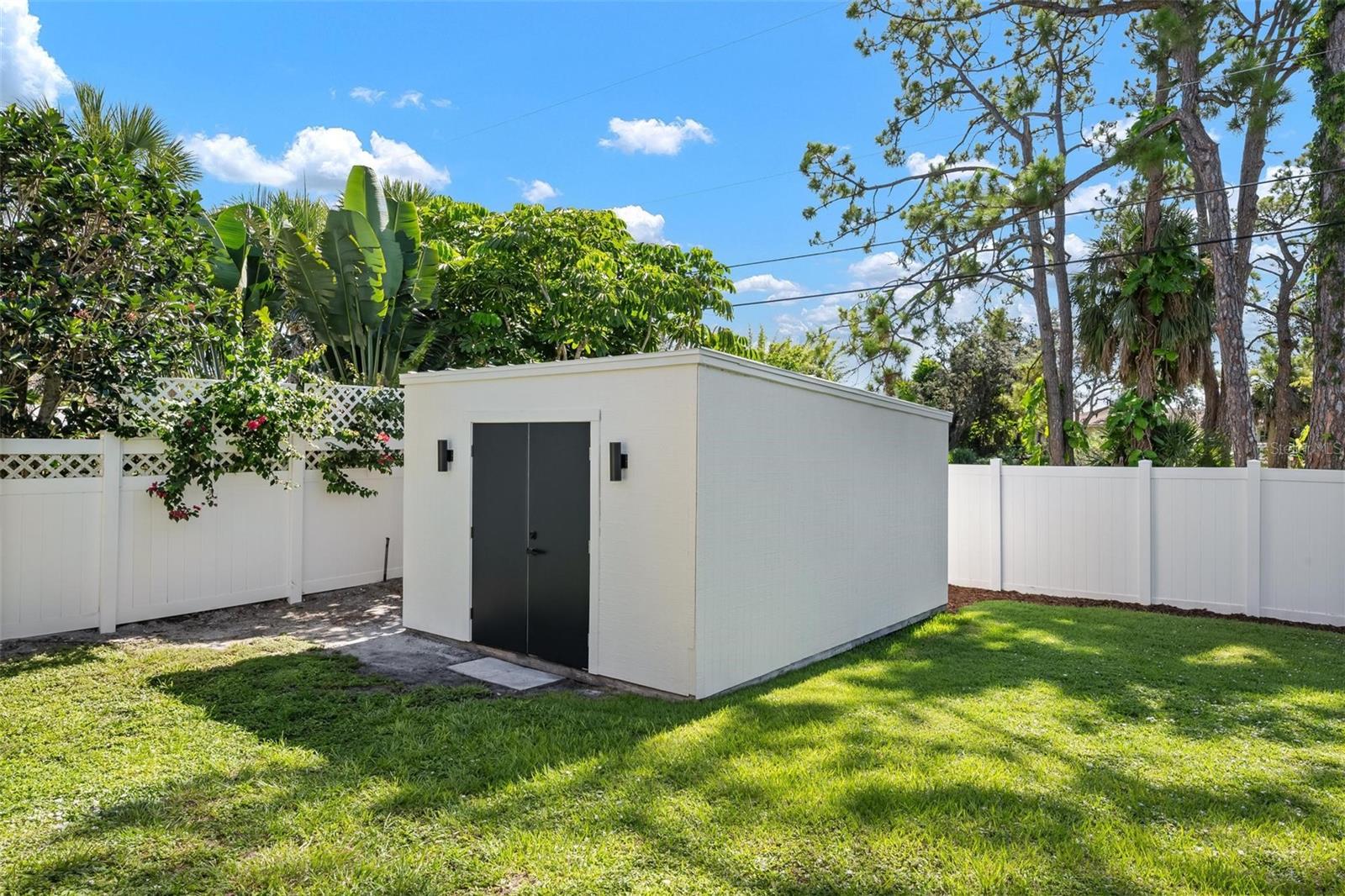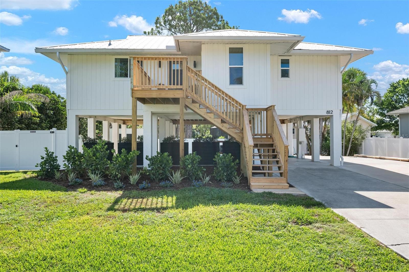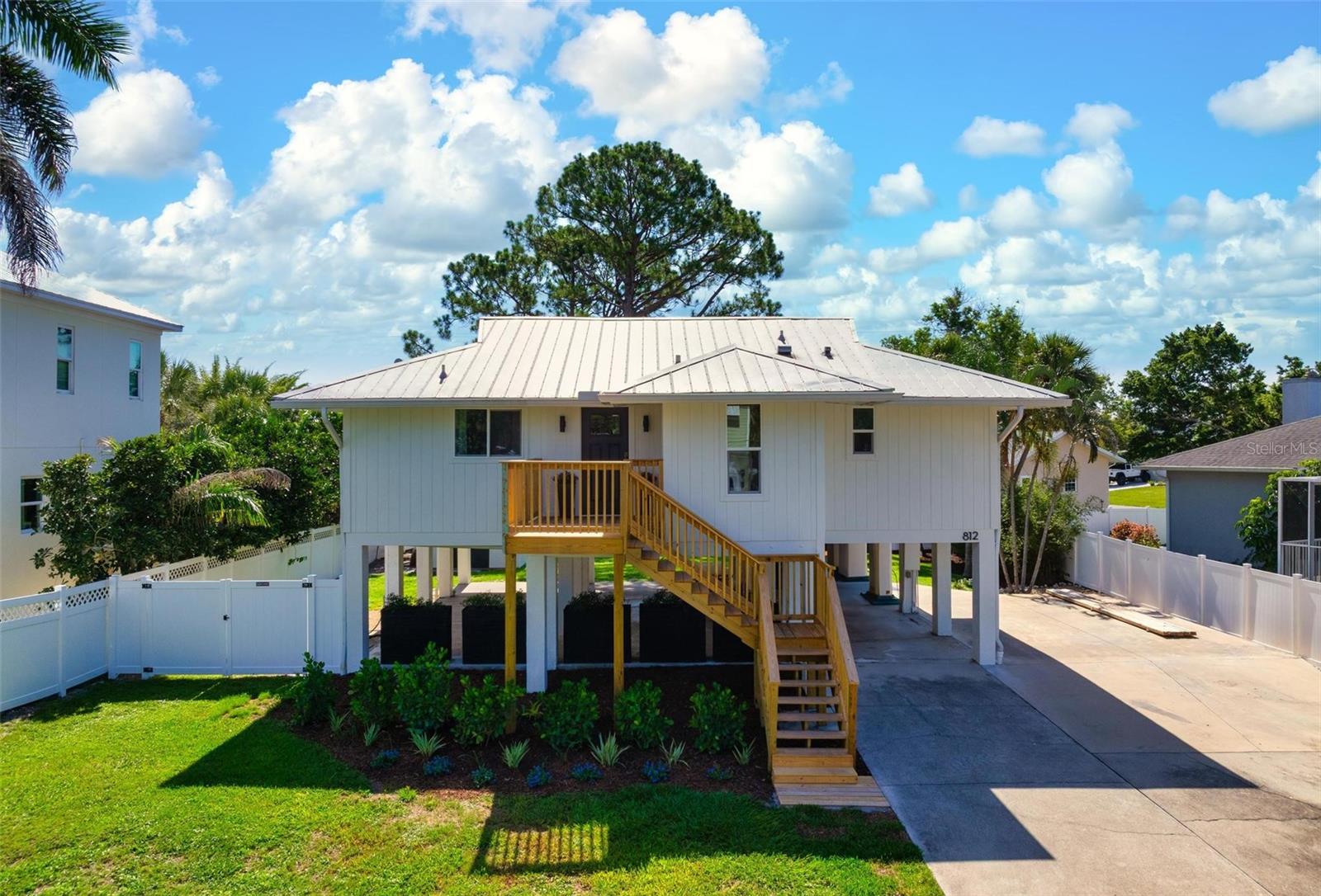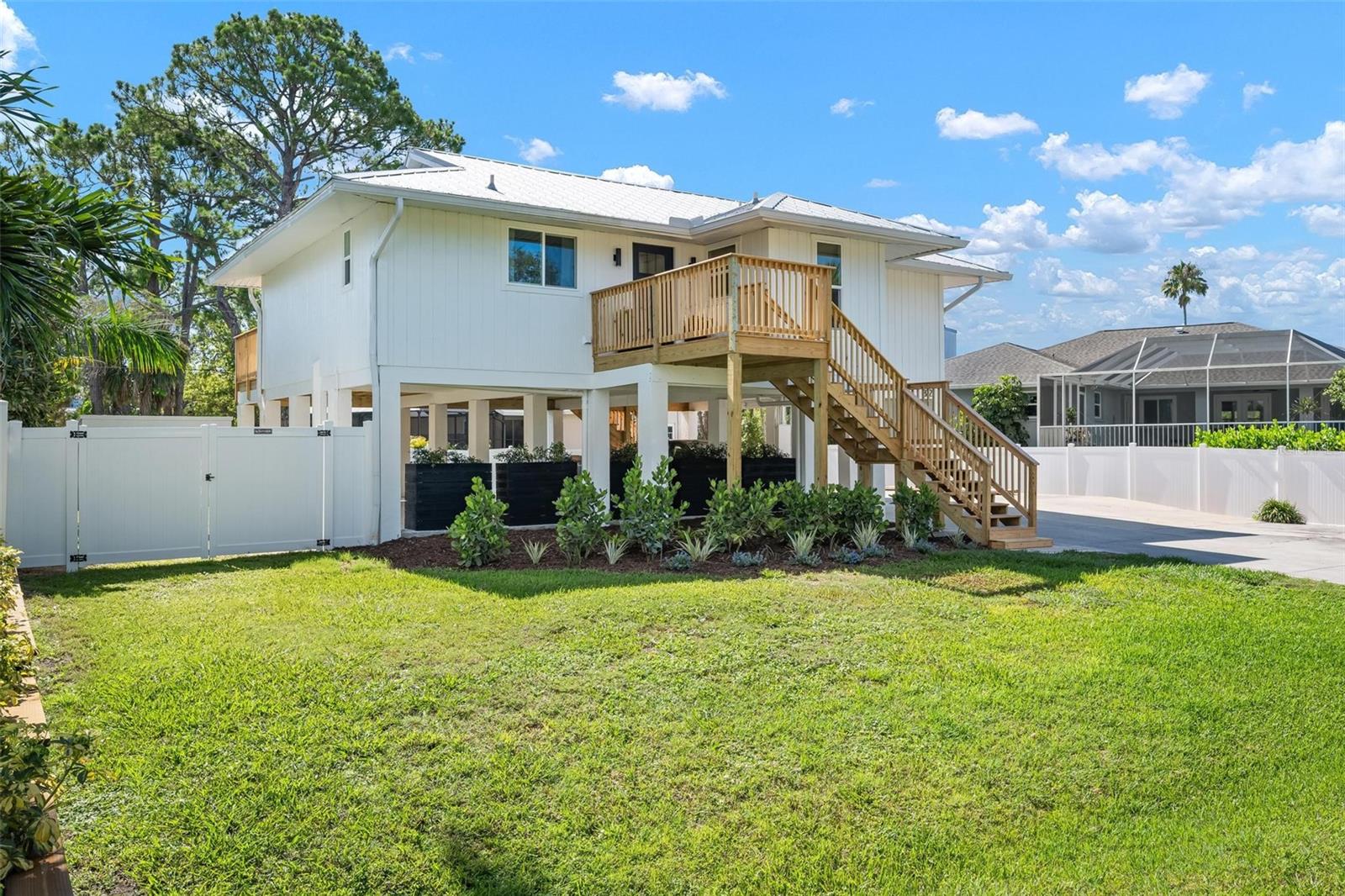 Welcome to your dream retreat in the coastal community of Hidden Bay Estates — a haven for boating, cycling, and beach enthusiasts alike. This thoroughly renovated home exudes a breezy Key West vibe and is filled with natural light that enhances its open floor plan and soaring vaulted ceilings. The stylish kitchen features white shaker cabinets, quartz countertops, and stainless steel appliances, while luxury vinyl and porcelain tile flooring throughout make for easy coastal living. Step outside to the brand-new expansive deck, accessible from the great room, primary suite, and guest bedroom — perfect for relaxing or entertaining in the Florida sunshine. A durable metal roof, ample parking, and storage space beneath the home, along with a large powered shed, offer both peace of mind and convenience. Just a half mile from the Legacy Trail and minutes from the neighborhood boat launch with direct access to Shakett Creek, Dona & Roberts Bays, and the Gulf, this location is ideal for water lovers. All of this, just a short 15-minute drive from beautiful beaches, downtown Venice, and a wide array of shopping and dining options.