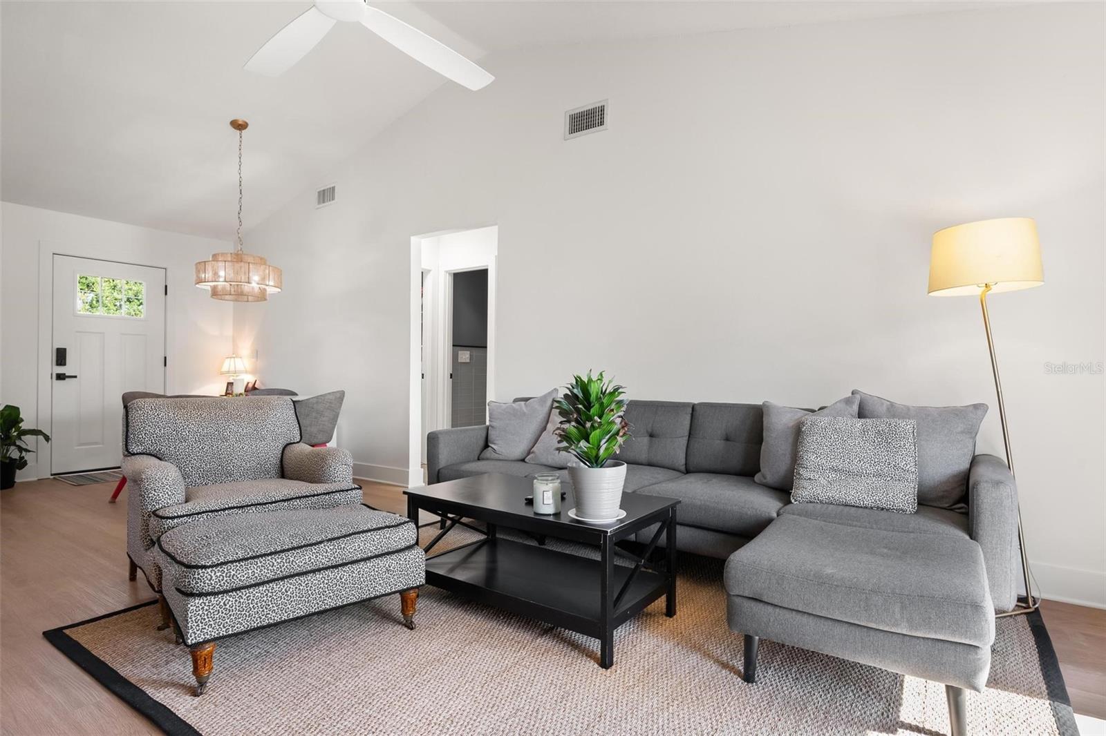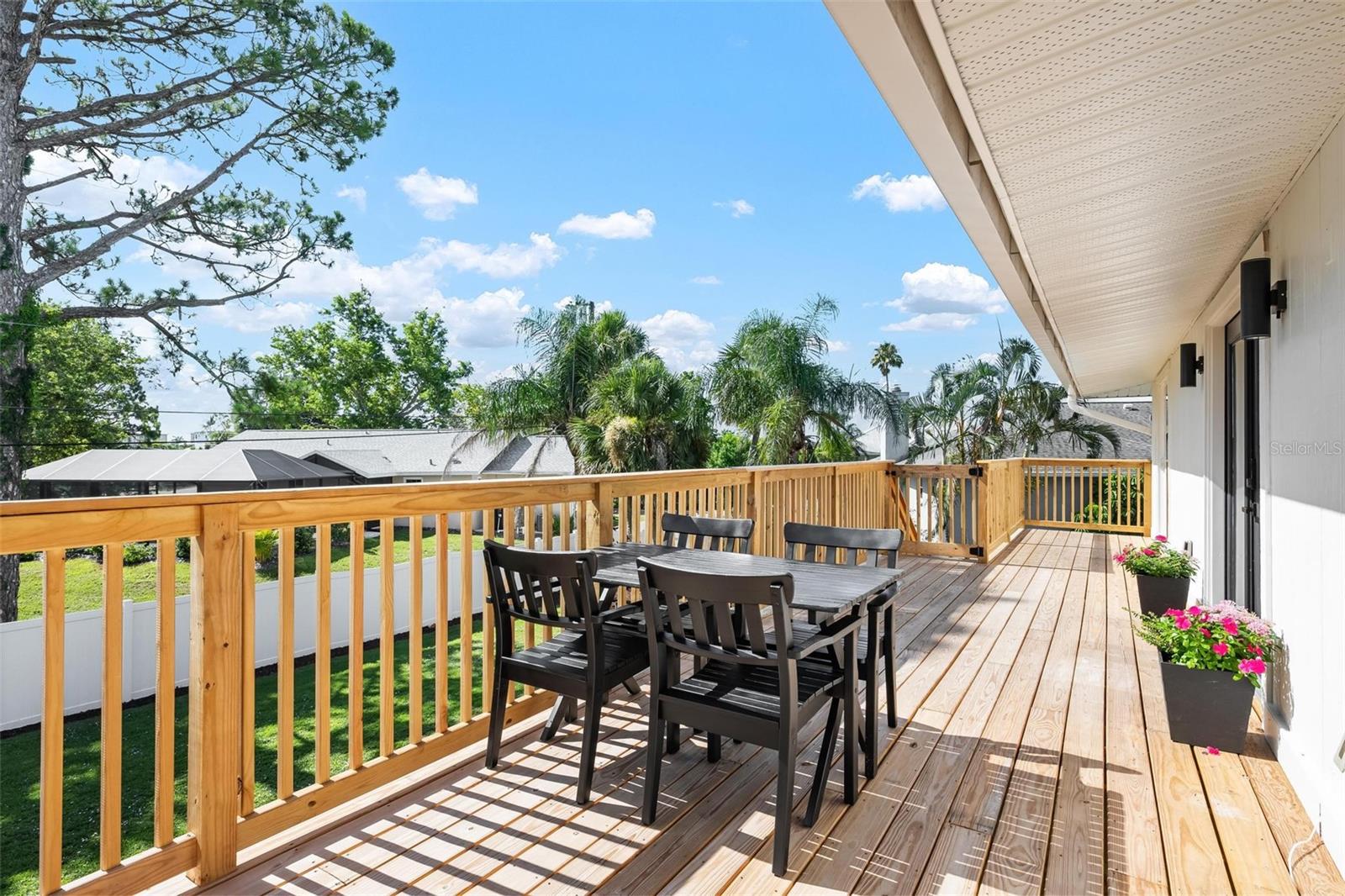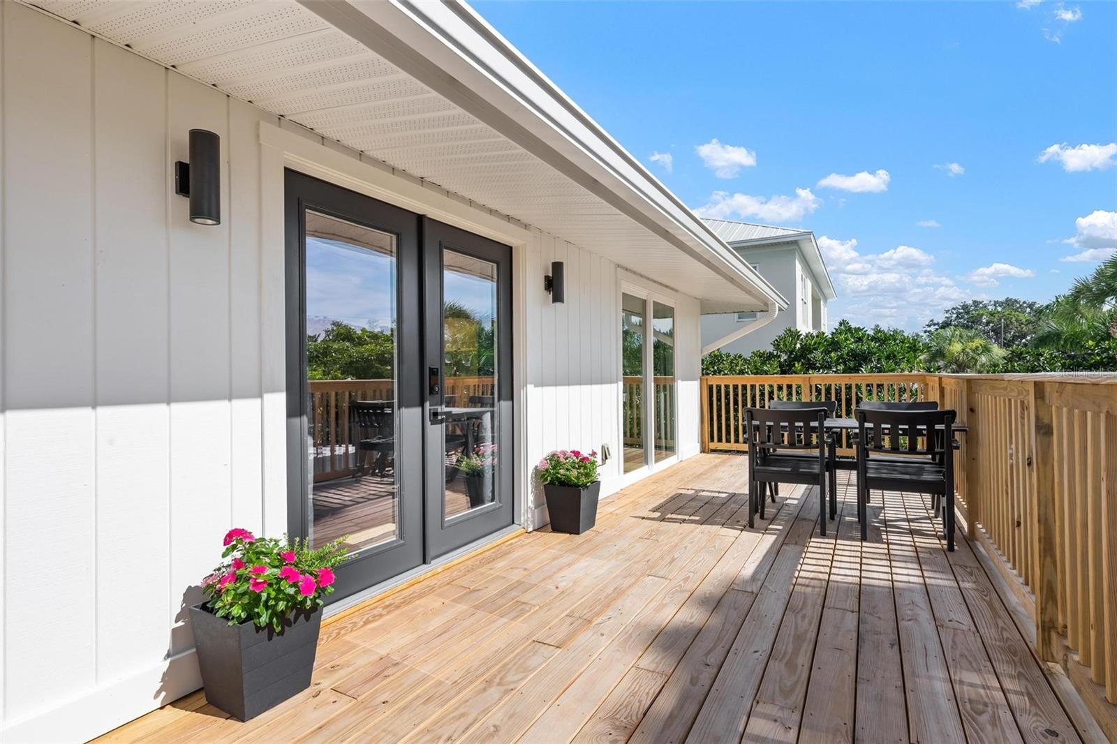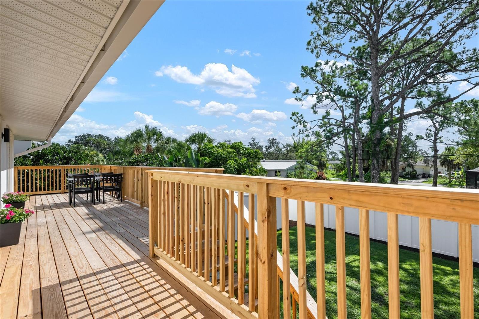 Welcome to your dream retreat in the coastal community of Hidden Bay Estates — a haven for boating, cycling, and beach enthusiasts alike. This thoroughly renovated home exudes a breezy Key West vibe and is filled with natural light that enhances its open floor plan and soaring vaulted ceilings. The stylish kitchen features white shaker cabinets, quartz countertops, and stainless steel appliances, while luxury vinyl and porcelain tile flooring throughout make for easy coastal living. Step outside to the brand-new expansive deck, accessible from the great room, primary suite, and guest bedroom — perfect for relaxing or entertaining in the Florida sunshine. A durable metal roof, ample parking, and storage space beneath the home, along with a large powered shed, offer both peace of mind and convenience. Just a half mile from the Legacy Trail and minutes from the neighborhood boat launch with direct access to Shakett Creek, Dona & Roberts Bays, and the Gulf, this location is ideal for water lovers. All of this, just a short 15-minute drive from beautiful beaches, downtown Venice, and a wide array of shopping and dining options.