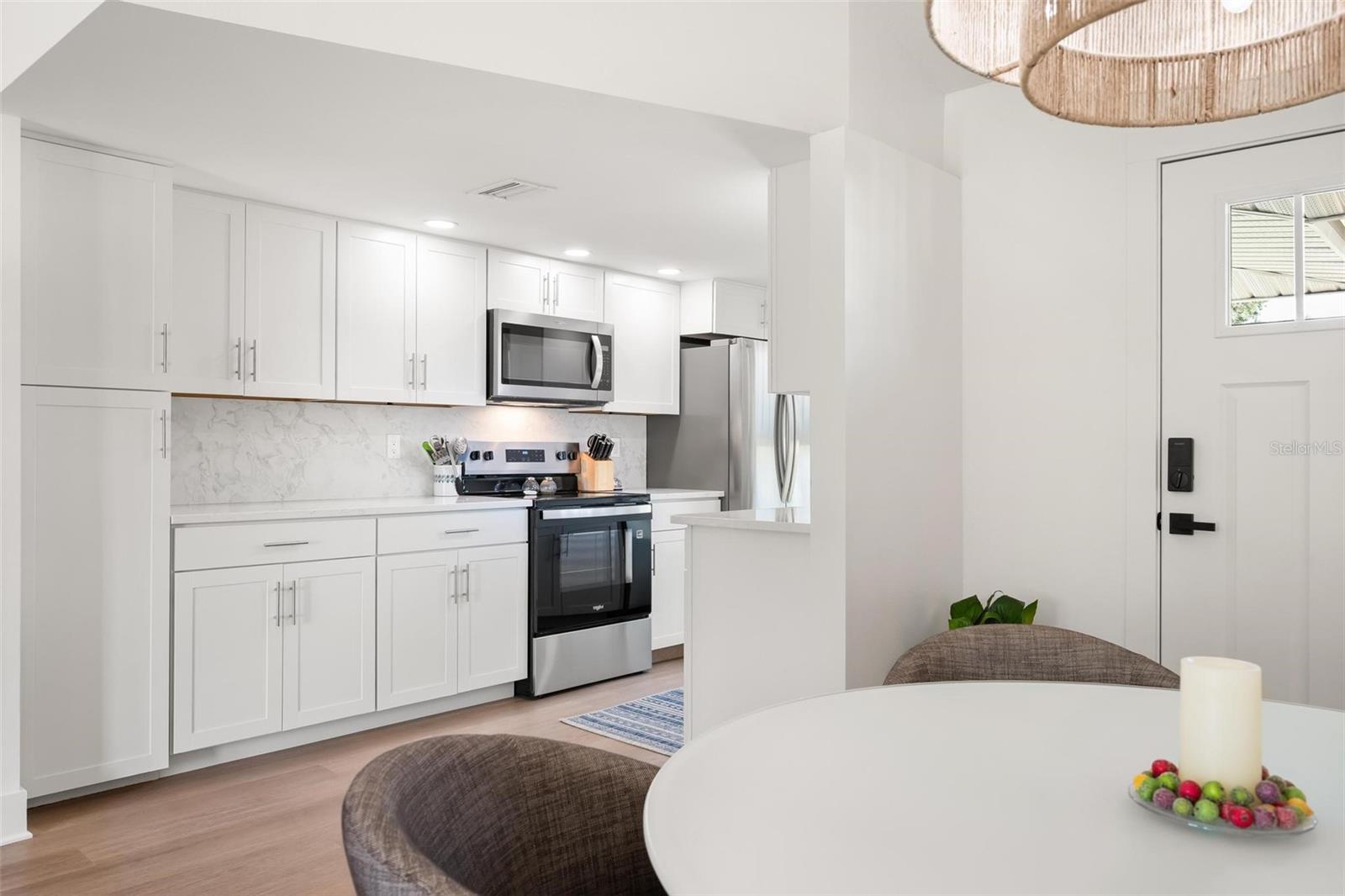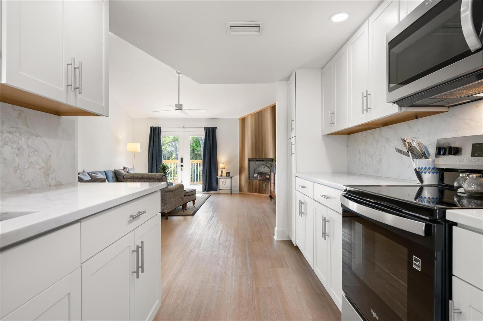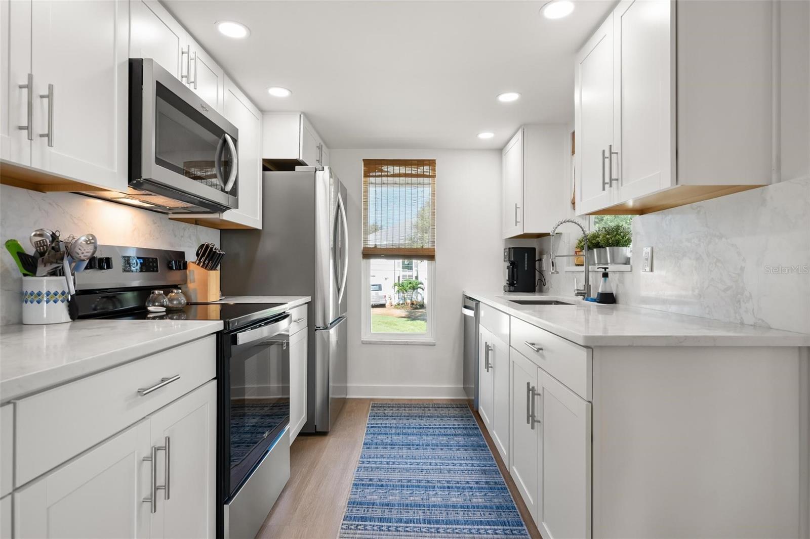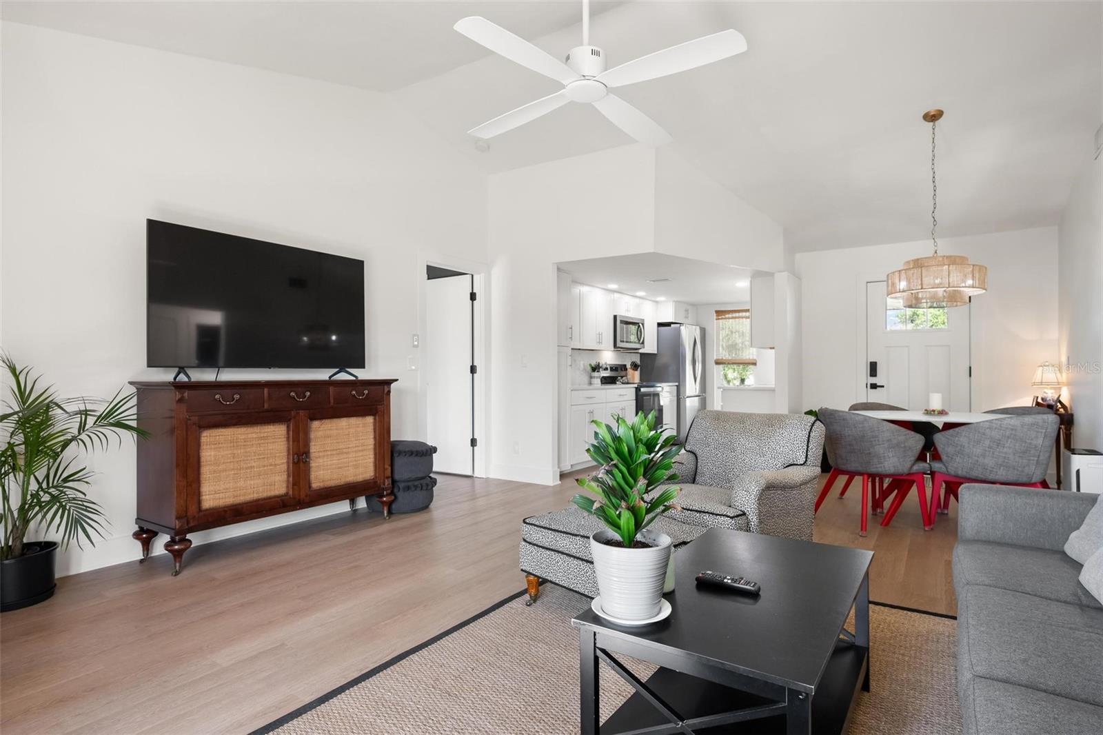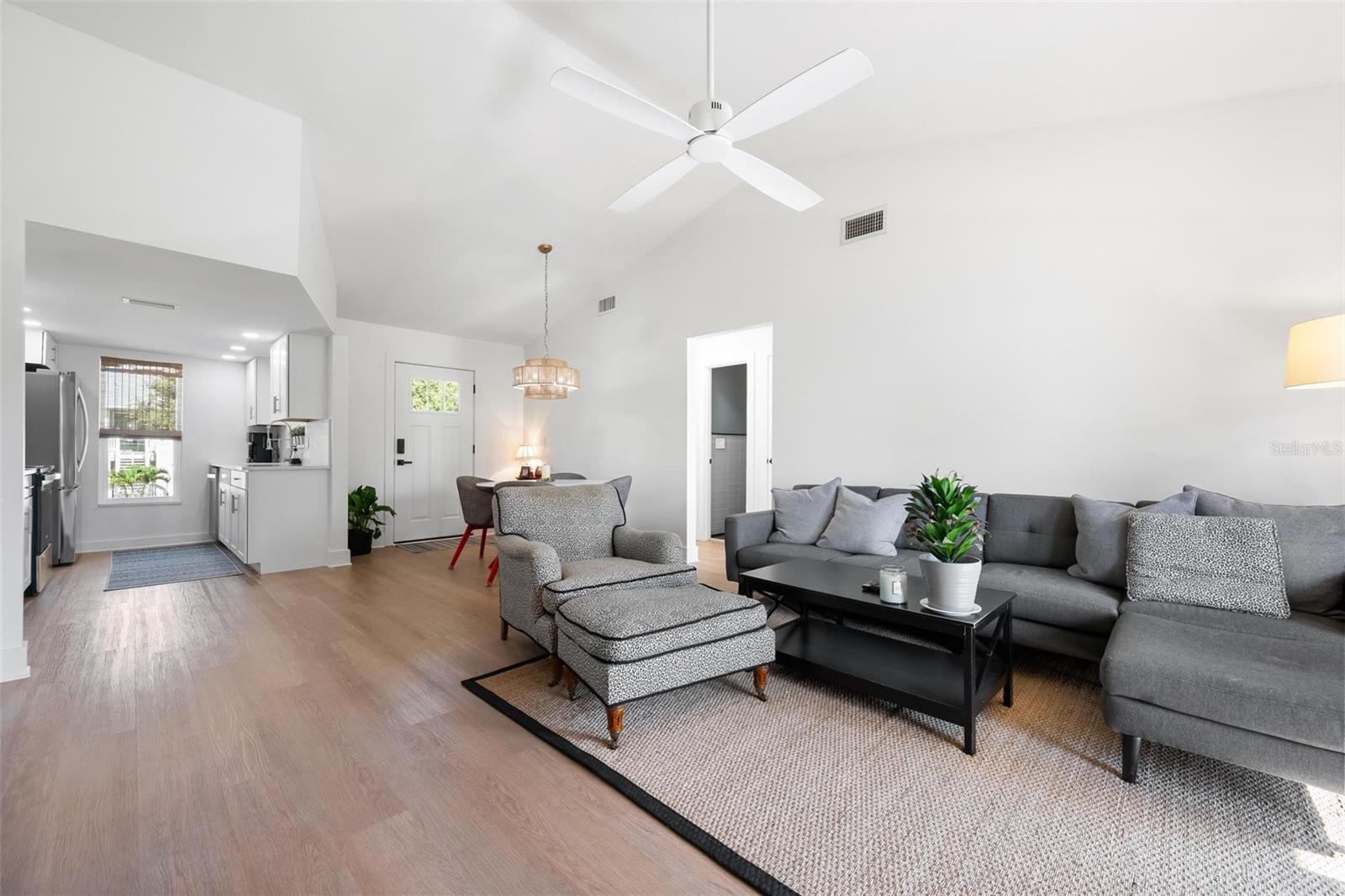 Welcome to your dream retreat in the coastal community of Hidden Bay Estates — a haven for boating, cycling, and beach enthusiasts alike. This thoroughly renovated home exudes a breezy Key West vibe and is filled with natural light that enhances its open floor plan and soaring vaulted ceilings. The stylish kitchen features white shaker cabinets, quartz countertops, and stainless steel appliances, while luxury vinyl and porcelain tile flooring throughout make for easy coastal living. Step outside to the brand-new expansive deck, accessible from the great room, primary suite, and guest bedroom — perfect for relaxing or entertaining in the Florida sunshine. A durable metal roof, ample parking, and storage space beneath the home, along with a large powered shed, offer both peace of mind and convenience. Just a half mile from the Legacy Trail and minutes from the neighborhood boat launch with direct access to Shakett Creek, Dona & Roberts Bays, and the Gulf, this location is ideal for water lovers. All of this, just a short 15-minute drive from beautiful beaches, downtown Venice, and a wide array of shopping and dining options.
