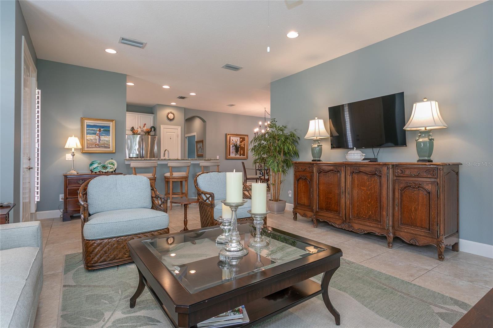 This is the Florida lifestyle you've been waiting for! Check out this Taylor Morrison Roma Model in Bellacina by Casey Key! An immaculate 2 Bedroom, 2 Bathroom + Flex/Den home, perfectly situated across from the Bellacina Amenity Center! Step inside to an open-concept floor plan featuring upscale furnishings (furniture negotiable), plantation shutters, and ceramic tile flooring throughout the main living areas. The chef’s kitchen boasts GE stainless steel appliances, a gas cooktop and range, granite countertops, and a breakfast bar—ideal for entertaining or casual meals. At the rear of the home, you'll find a luxurious primary suite offering a peaceful retreat with a spacious ensuite bathroom featuring double sinks, neutral tile, and a custom walk-in closet designed for both elegance and functionality. The guest bedroom includes an en-suite option, with a door from the hallway that can be closed to create a private guest suite—ideal for visitors or multigenerational living. The den/flex room provides a perfect space for a home office, media room, or even an additional guest space—tailored to your lifestyle needs. Unwind in your screened lanai overlooking a serene grassy backyard—perfect for morning coffee or evening relaxation. This home comes with a hurricane impact front guest room window and front door, and is equipped with hurricane shutters, giving you added peace of mind during storm season. The epoxy-coated double garage adds style and durability, while the home’s location within the community offers unbeatable convenience. Just steps away, the resort-style amenity center offers a heated resort-style swimming pool with cabanas, 24-hour fitness center, a clubhouse with kitchen and event room, jacuzzi spa, firepits, 4 lighted pickleball courts and tru-har tennis court, playground, and 2 dog parks. Outdoor enthusiasts will love direct private access to the famous Sarasota Legacy Trail—ideal for walking, biking, or jogging. Take your golf cart just 2.5 miles to Nokomis Beach, restaurants, ice cream parlor, and shopping center, or enjoy quick drives to Downtown Venice Island (10 mins), Siesta Key Beach (20 mins), and Downtown Sarasota & SRQ Airport (35 mins). Don't miss this incredible opportunity to live in one of Sarasota County’s most desirable gated communities—Bellacina by Casey Key. Florida living starts here!