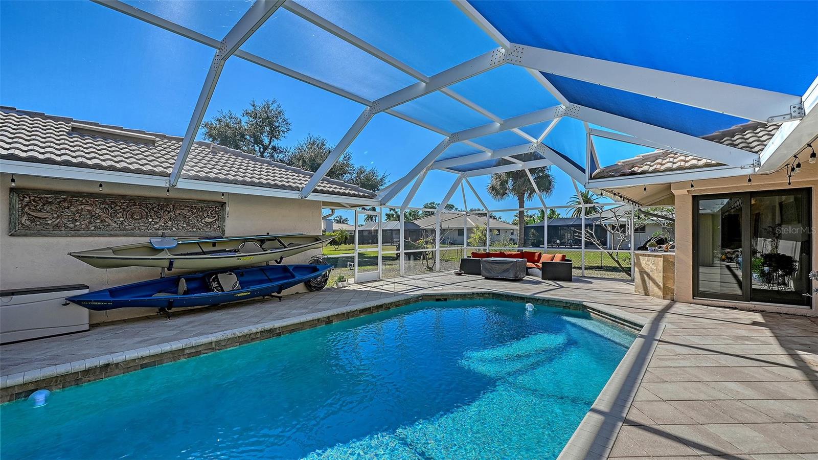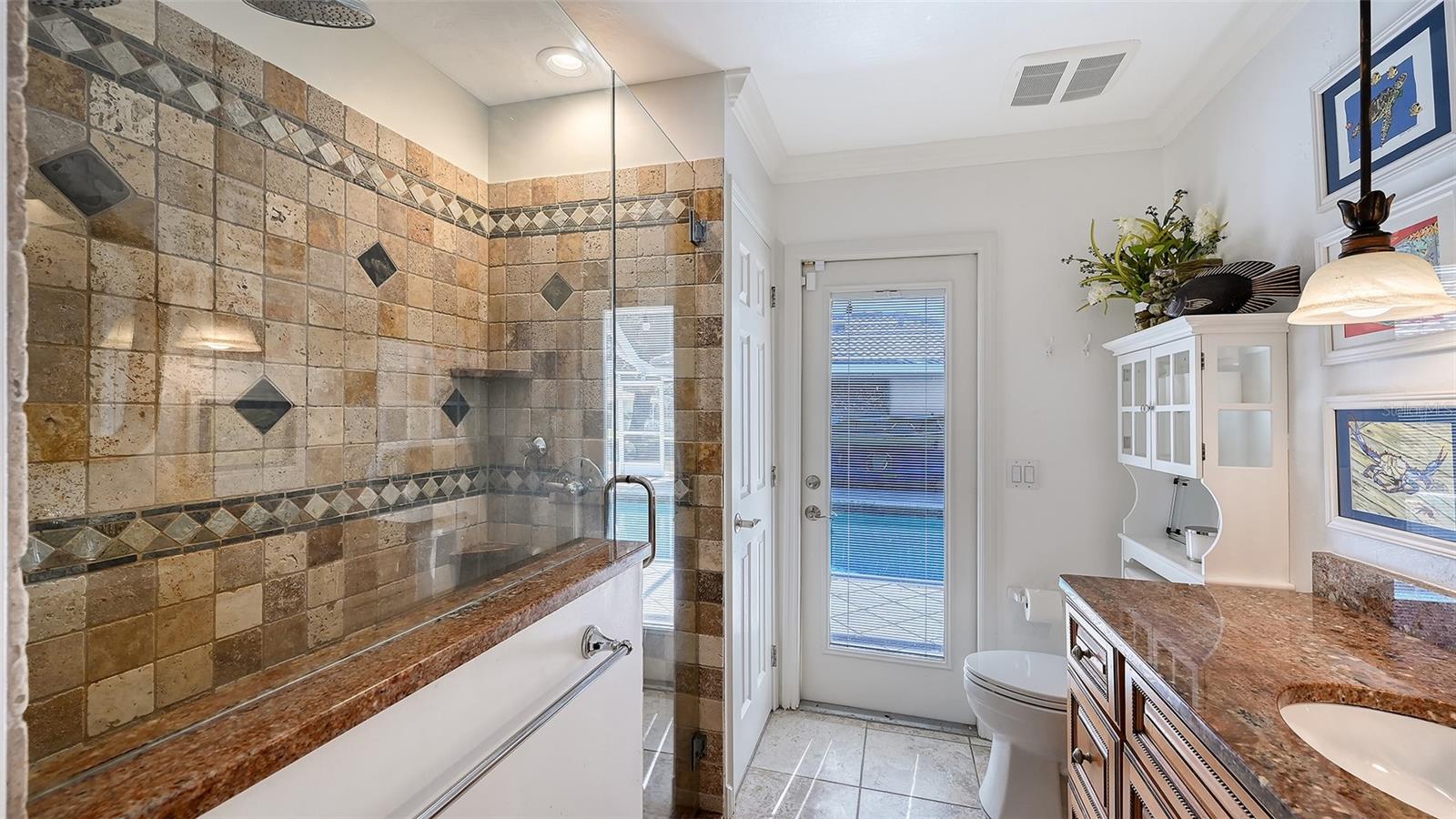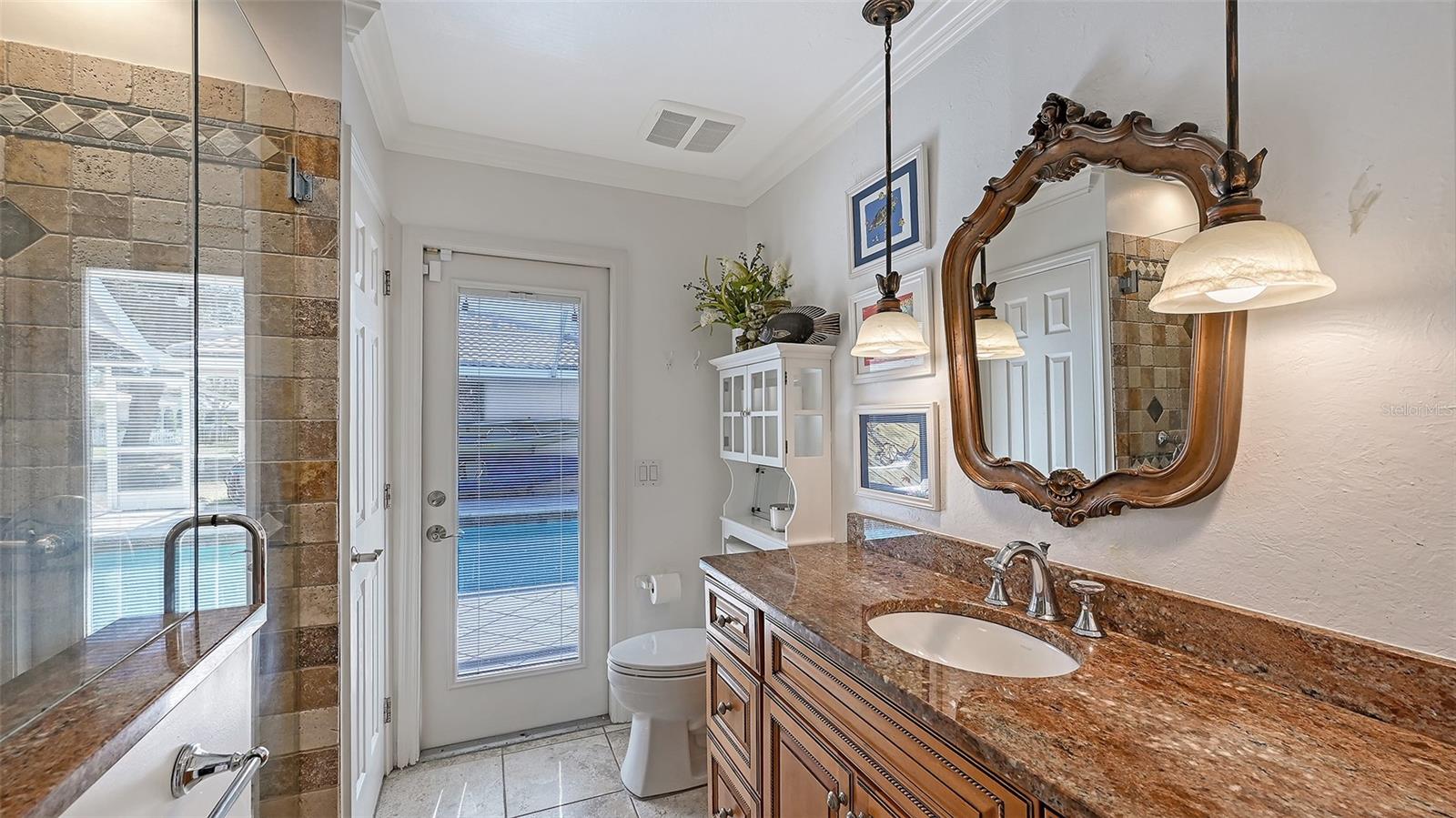 Step into refined coastal living in this beautiful residence with OVER $115,000 IN UPGRADES, in COVETED Sorrento Woods, where elegant interiors and exceptional community amenities create a truly elevated lifestyle. This 4 Bedroom, 3 Bathroom home includes an office, pool and boasts open concept living and the In-law Suite offers options of MULTI-GENERATIONAL LIVING too. A stunning 2024 custom kitchen anchors the home with quartz countertops, pot filler, double ovens, wine fridge, and designer lighting—perfectly positioned between the formal dining room and the spacious family room with sliders to the lanai. The formal living room impresses with a tray ceiling, crown molding, plantation shutters, French doors, and an in wall sound system. The primary suite offers a serene retreat with custom built ins, lanai access, and a spa inspired ensuite wrapped in granite, featuring a rain shower, wavy cut glass doors, built in shelving, bidet, and skylight. A second master/in law suite with its own ensuite and skylight provides ideal multigenerational flexibility. Guest bedrooms include custom closets, crown molding, and plantation shutters, while the cabana bath offers pool access, granite counters, and a rain shower. Additional highlights include cherry hardwood flooring in the foyer, hardwood in the dining room, recessed lighting throughout, a custom cabinet office, a spacious laundry room with utility sink and wood flooring, and a plywood reinforced attic offering exceptional storage. The screened lanai and resurfaced pool create a private outdoor oasis perfect for entertaining. Sorrento Woods elevates the lifestyle with a PRIVATE COMMUNITY BOAT RAMP and day dock on a scenic canal—placing the Gulf and Intracoastal Waterway just minutes away. Low HOA, NO CDD, and a central location close to the new SMH Venice Hospital, Nokomis and Venice Beaches, Legacy Trail, shopping, dining, and A rated schools make this an unmatched opportunity in Sarasota County.
