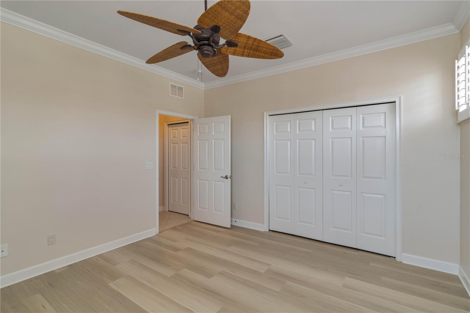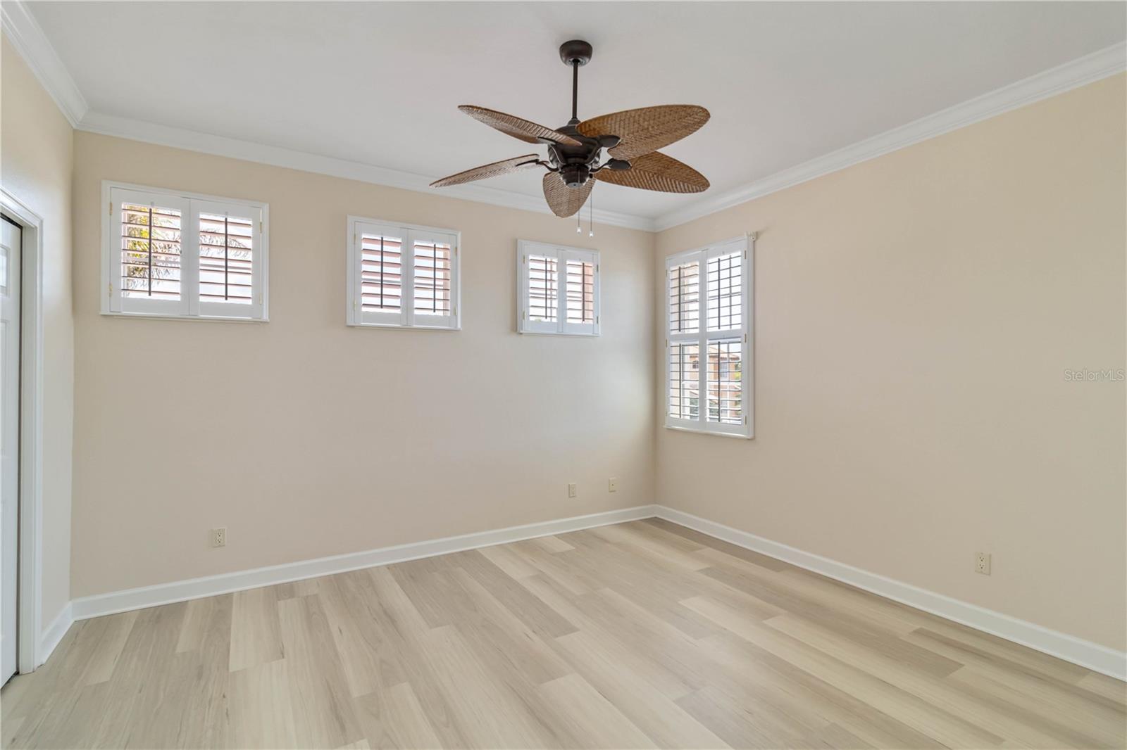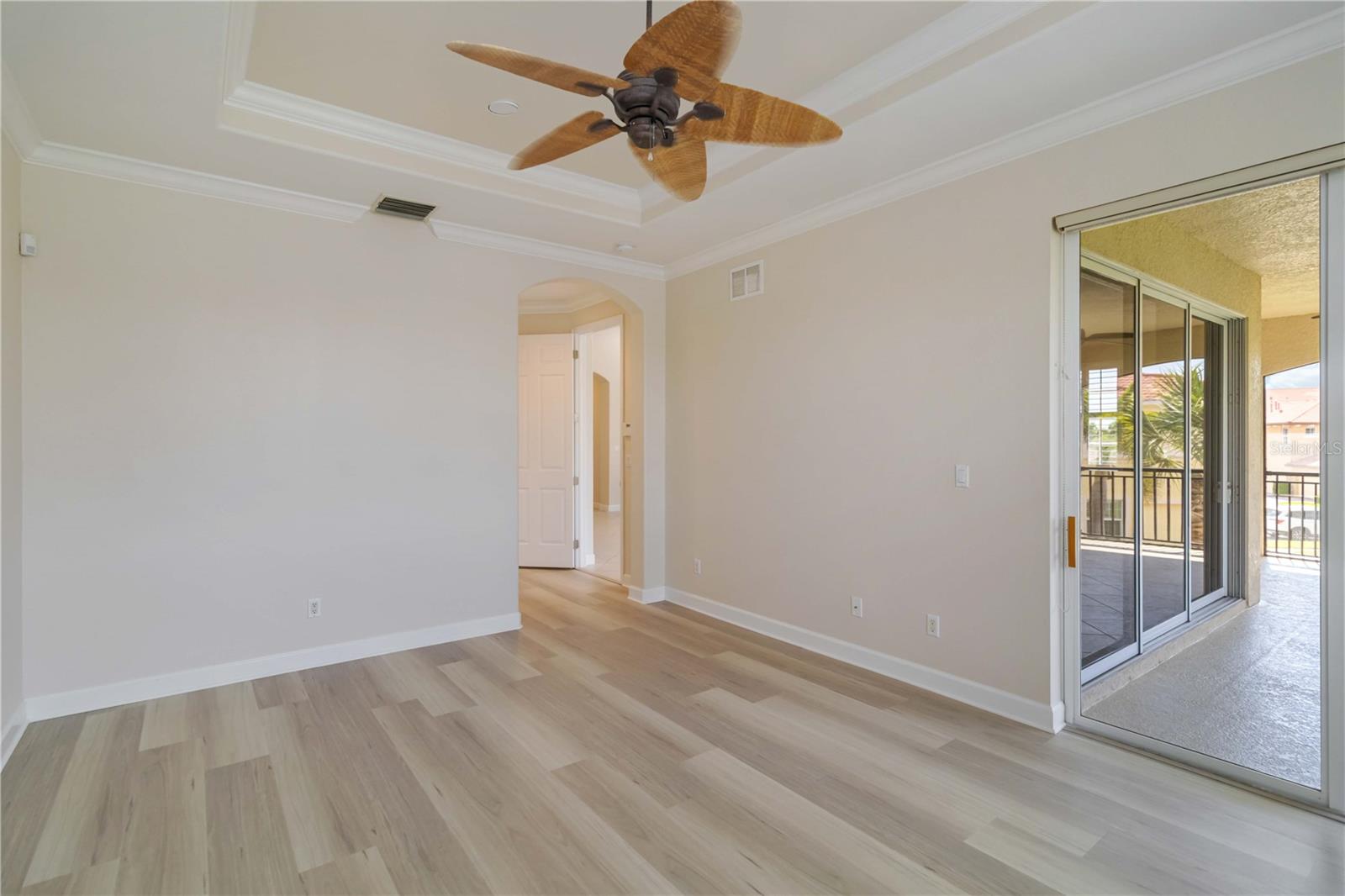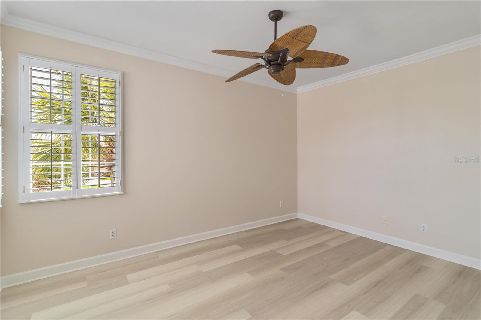 One or more photo(s) has been virtually staged. Impeccable Second-Floor Carriage Home in the Venetian Golf & River Club. Welcome to this beautifully maintained and lightly lived-in Monaco floor plan, offering 2,326 square feet of thoughtfully designed living space in the highly sought-after Venetian Golf & River Club. This second-floor carriage home showcases exceptional attention to detail with custom upgrades throughout. Enjoy modern tile flooring, new luxury vinyl flooring in bedrooms, elegant crown molding, plantation shutters on all windows, and stylish custom lighting and ceiling fans that enhance the home’s comfortable ambiance. The spacious split-bedroom layout features 3 bedrooms plus a versatile den, 2 full bathrooms, a separate laundry room, and multiple oversized closets. Storage is abundant, including generous interior space and a two-car attached garage with additional attic storage. At the heart of the home, the open-concept kitchen is perfect for entertaining, featuring granite countertops, wood cabinetry, and stainless-steel appliances. The seamless flow into the living and dining areas creates an inviting space for gatherings or relaxed everyday living. Embrace the ease of maintenance-free living, with the exterior of the home fully maintained by the association. Impact-resistant windows and sliding glass doors provide added peace of mind. For ultimate convenience, the home is equipped with a private elevator—making second floor living effortless and accessible. Step outside to your private screened lanai, where you’ll enjoy tranquil lake views with a fountain, breathtaking sunsets, and a peaceful, private setting—perfect for morning coffee or evening relaxation. Residents of the Venetian Golf & River Club enjoy a secure, gated lifestyle with an impressive array of amenities. The community borders the scenic Myakka River and features a 70-acre nature park. Optional membership is available for the 18-hole, par-72 championship golf course. Additional amenities include six Har-Tru tennis courts, 3 pickleball courts, a life-style director, a fitness center, exercise studio, resort-style pool and lap pool, the River Club, tiki bar, and a beautifully renovated full-service banquet facility. Ideally located near Sarasota Memorial Hospital, I-75, Gulf Coast beaches, and the charming downtown areas of Venice and Sarasota, this home offers both convenience and an exceptional Florida lifestyle. Schedule your private showing today—this one won’t last!