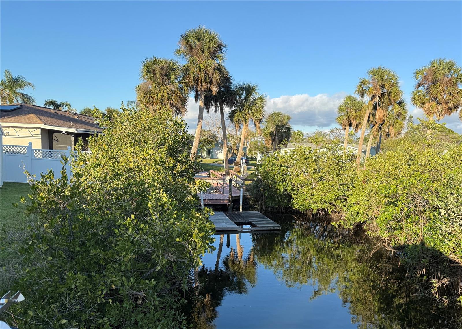 WATERFRONT, NO FLOODING! Your slice of WATERFRONT PARADISE! The property’s high elevation had NO FLOODING from Hurricane Helene or Milton. Known as one of the best kept secrets in Sarasota County, this corner lot is located West of Legacy Trail at the end of a protected canal with South-facing backyard views on Lake Charlotte and features a well-maintained masonry block and stucco ranch home. With numerous upgrades since construction in 1978, this move-in ready home has an appraised Effective Year Built of 2003 and includes new plumbing, impact glass and energy efficient windows throughout along with custom storm shutter protection. Perfect for boating enthusiasts, the property features a concrete seawall with riprap and a fixed dock with fresh water station providing direct access to Dona Bay through the fixed high-clearance bridge at Hwy 41 to reach the ICW, the Venice Jetty inlet, and the Gulf Coast less than 2 miles away. The home includes generous storage across 3 bedrooms and 2 bathrooms as well as a utility sink in the kitchen’s adjacent laundry room, which also has built-ins to serve as a walk-in pantry. Beautiful, engineered hardwood floors invite you inside the elegant living room and lead to a spacious family room with ample natural light from ceiling skylights and windows overlooking the nature of lake Charlotte. Along with an updated septic and water supplied by Sarasota County, there is a reverse osmosis system and a solar hot water heater. On nearly a ¼ acre lot, the property’s tropical landscaping features mature palm trees, low-maintenance shrubs and a mango tree, all irrigated with well water. The privacy offered by this serene cul-de-sac location allows for limited traffic and low noise being further away from busy roads. In addition to having No HOA, CDD fees or Deed Restrictions, the property offers sufficient space for RV, boat or trailer parking. With its location just West of Legacy Trail, the neighborhood features convenient sidewalks, street lighting and access to one of the trail’s most exclusive runs made for bikers and pedestrians to cross Dona Bay and Roberts Bay with lovely panoramas in all directions. The neighborhood is also close to Nokomis Community Park (0.8 miles by road), Venice Beach (1.9 mi) and Nokomis Beach (2.7 mi). Enjoy the shops and restaurants of downtown Venice (1.6 mi) as well as local restaurants of Nokomis like Captain Eddie’s Seafood (0.9 mi), Evergreen Café (0.8 mi) and Nokomo's Sunset Hut (1 mi). Properties at this elevation and location are rarely available, so don’t wait! This can be your own slice of paradise!