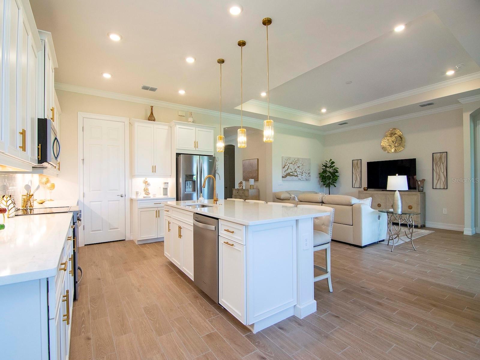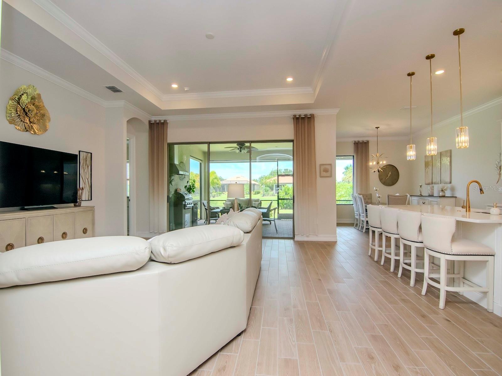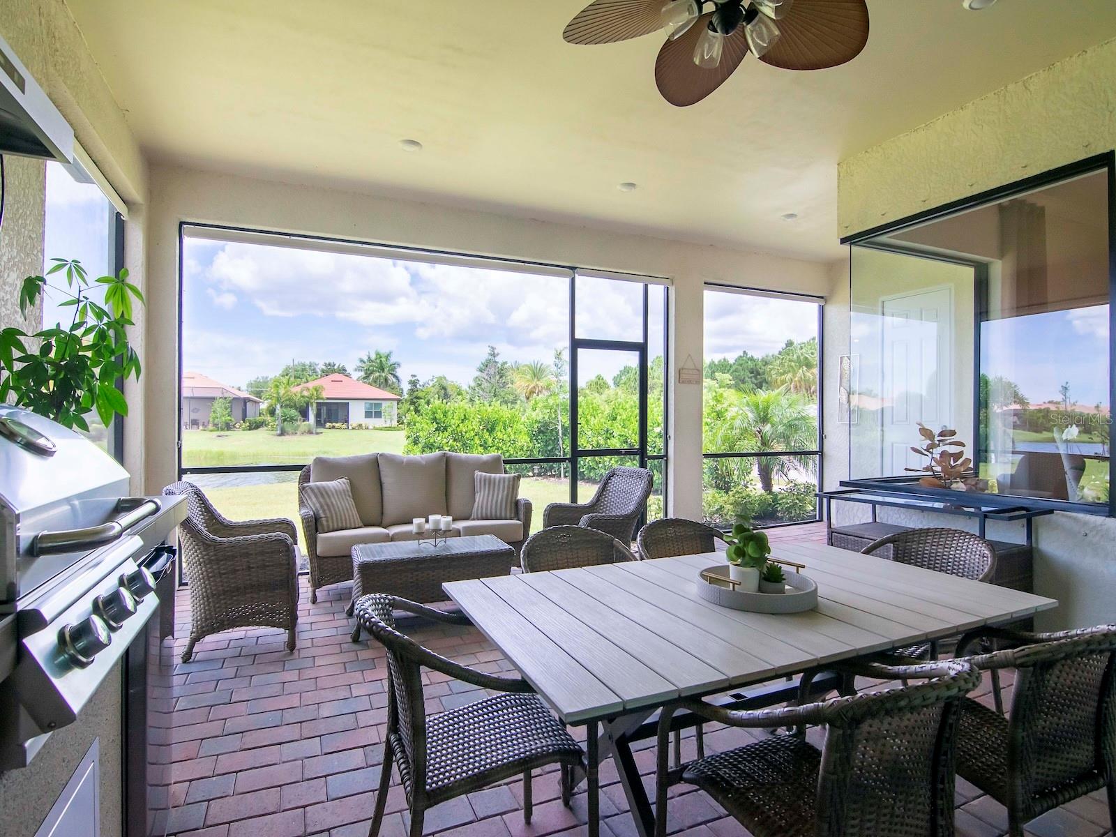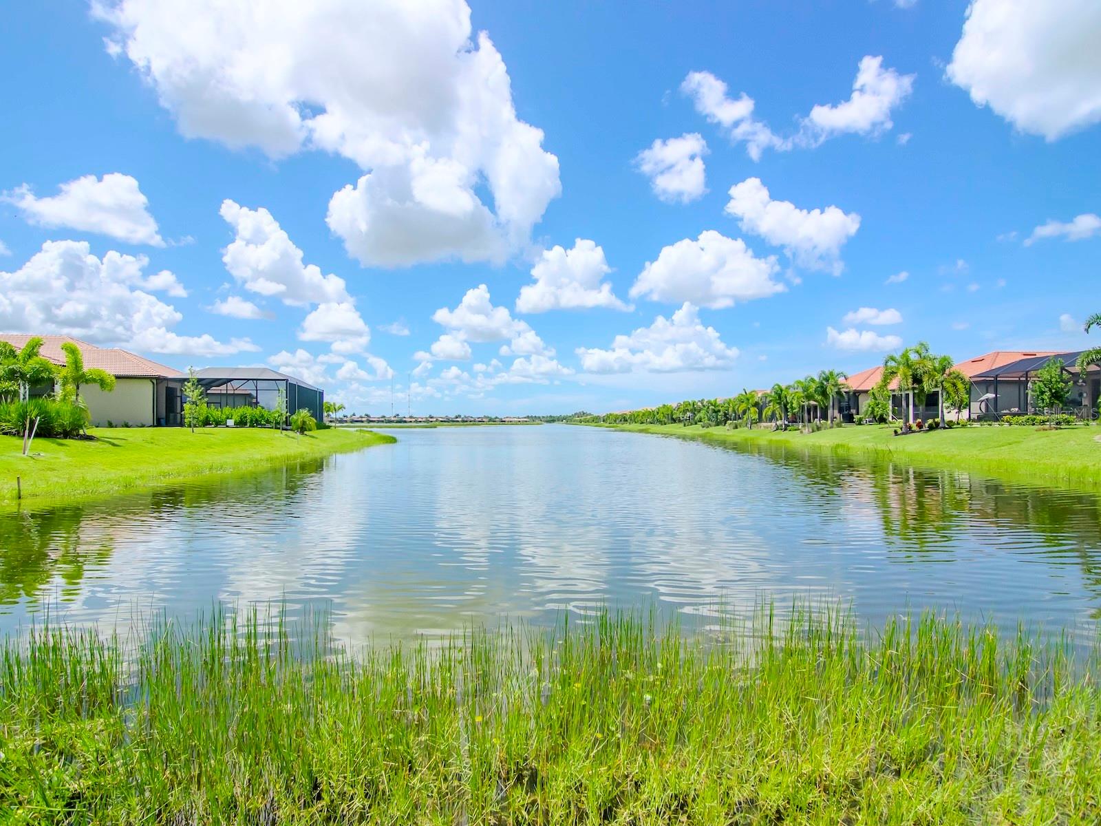 NO FLOOD ZONE!!! DON’T MISS OUT!!! LOWEST INTEREST RATES IN ALMOST 2 YEARS!!!! Nearly new 3 bedroom 3 full baths plus 2 1/2 baths and a true 3 car garage. You can fish on the beautiful lake right in your private back yard. Floating docks are even permitted along with Kayaks and electric trolling motor boats. This is a beautiful nearly new Wheaton spacious floor plan with almost 2600 sq ft.² which hardly ever becomes available. So many upgrades it is hard to list them all - wood look plank ceramic tile flooring throughout quartz countertops in gourmet kitchen, baths and laundry room, outdoor kitchen, plantation shutters, upgraded lighting fixtures and fandeliers, Bali sunshades and extensive landscaping– nothing left to upgrade here. Each bedroom has it is own wing and there is a large flex room suitable as an office, additional bedroom, den, playroom. The master bedroom has its own private ensuite bathroom with his and her closets. There are two guest bedrooms with large closets and each with their own bathrooms (one being an en suite ). The kitchen, gathering room and eat in dining room are massive that makes it a true open concept and great for entertaining or just enjoying intimate family gatherings. The kitchen with its high end finishes is massive with a ginormous walk in pantry. AND THE LOCATION - Toscana Isles is a gated community with less than 10 minutes to a major highly rated Sarasota Memorial Hospital, beaches less than 15 min away, wonderful restaurants in Wellen Park and easy access to a major interstate that makes Sarasota shopping and restaurants less than 20 min away. Fort Myers, Naples, Tampa and St. Pete all within driving distance of this beautiful community. Toscana Isles boasts a $33 million clubhouse with a fitness room, pool table reading room and party room with a kitchen and bar for private parties There is a beautiful infinity pool overlooking the lake and on the grounds there are pickle ball courts, tennis courts, and bocci ball courts Come enjoy the Florida lifestyle and feel like you are on vacation all year round!