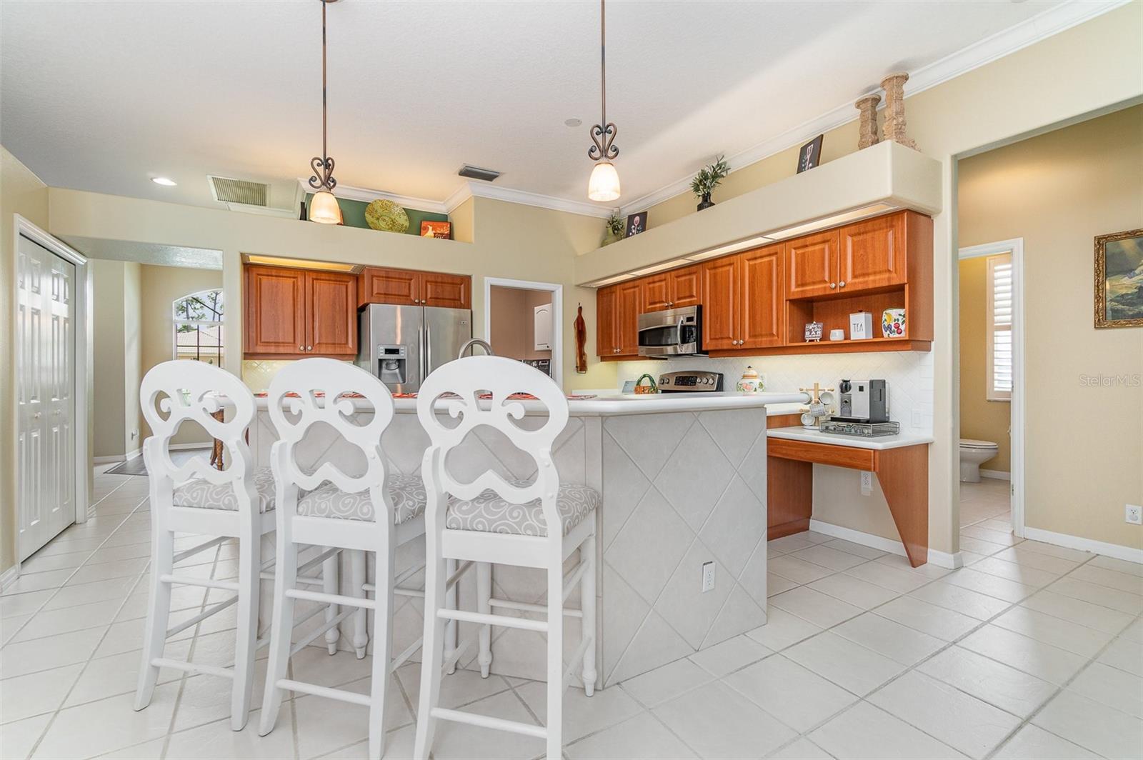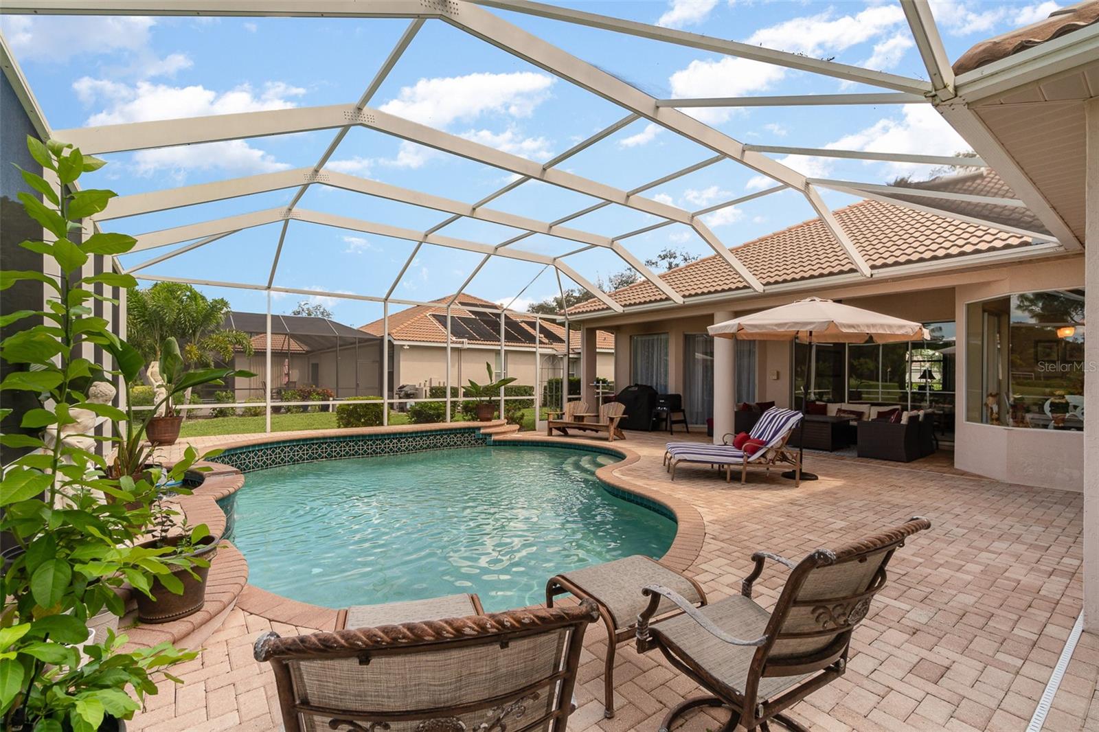 Discover unparalleled elegance in this stunning 5-bedroom, 3-bathroom residence, perfectly situated on a pristine golf course within a prestigious gated community. This home has been appraised this year for $768,000, reflecting its exceptional value and luxurious features. With an expansive layout designed for both sophisticated entertaining and serene relaxation, this property is a true gem. As you enter, you are greeted by elegant living spaces that exude warmth and sophistication. The heart of the home is a spacious kitchen, equipped with modern appliances and ample counter space, making it a chef's dream. The adjacent family room is the ideal setting for gatherings, seamlessly opening to a charming caged pool area that offers breathtaking views of the lush golf course—perfect for unwinding or hosting memorable events with family and friends. The beautifully designed bedrooms provide comfort and privacy, with the master suite featuring a luxurious en-suite bathroom for your ultimate retreat. Each bathroom is tastefully appointed, ensuring both style and functionality. The home also boasts a three-car garage, providing generous storage and convenience for all your needs, whether it's cars, sporting equipment, or seasonal décor. Living in this gated community offers an added layer of privacy and security, allowing you to enjoy your surroundings without worry. Experience the perfect blend of comfort and style in this exquisite home, designed for those who appreciate the finer things in life. Don’t miss this opportunity to own a piece of paradise that epitomizes luxury living!