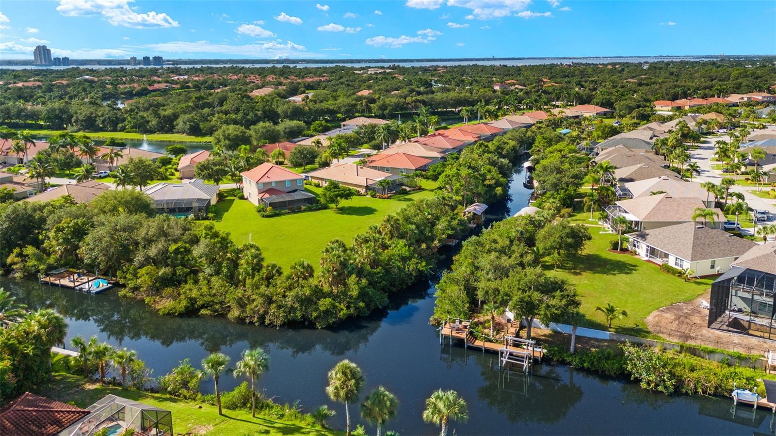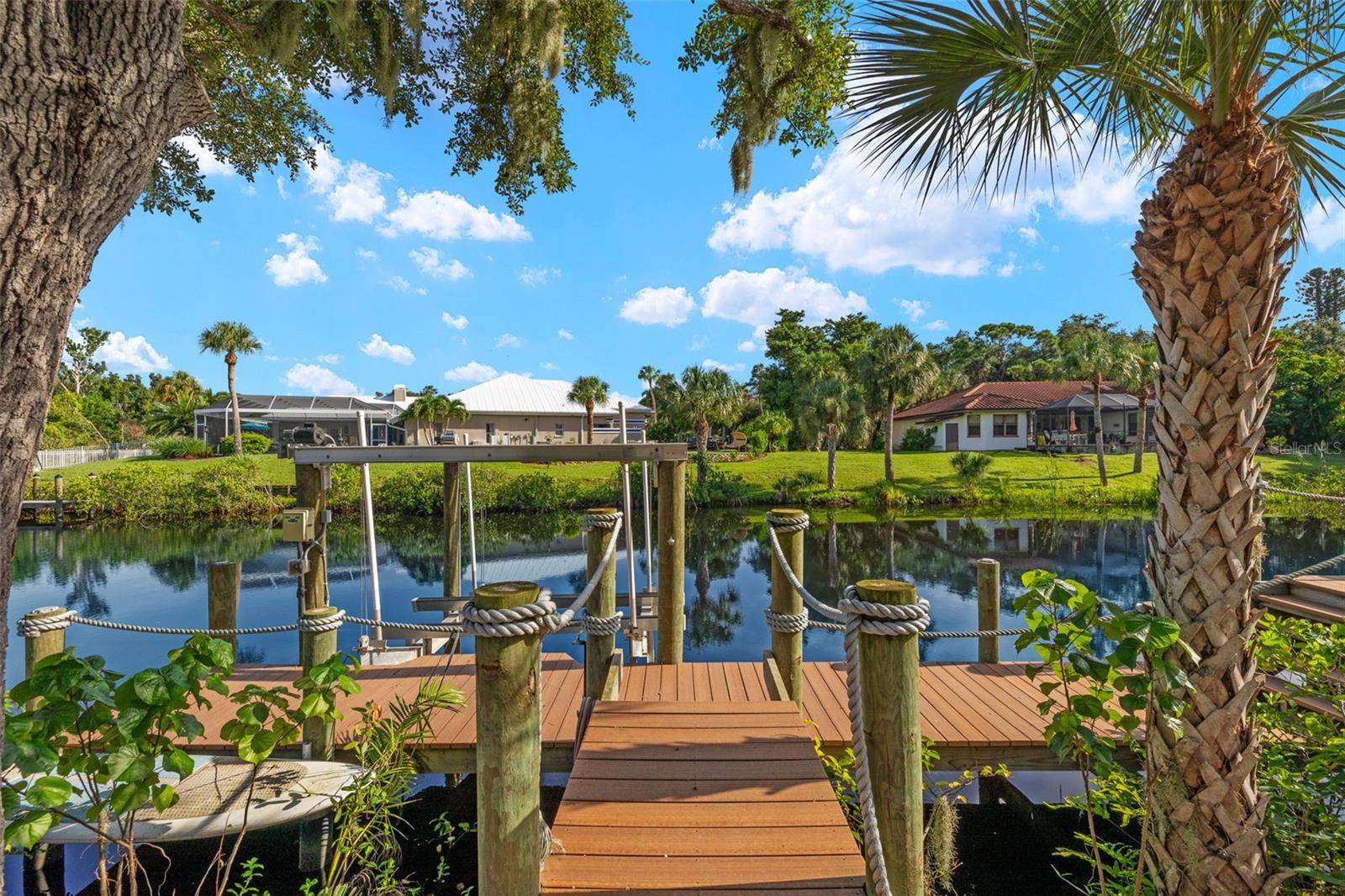 One or more photo(s) has been virtually staged. DRASTIC PRICE REDUCTION!! CORNER POINT WATERFRONT LOCATED IN A FLOOD ZONE X, NO FLOOD INSURANCE REQUIRED SAVING THOUSANDS!! WENT THROUGH HURRICANE IAN, HELENE AND MILTON WITHOUT DAMAGE! This meticulously maintained, contractor owned, 3 bedroom, 2 bath home is loaded with amenIties while providing a natural paradise. With 2007 sq ft under air and all new interior and exterior paint done in 2021 as well as the appliances being updated with top of the line models the same year. The interior is tasteful and offers a wonderful base slate to make your dream home and has plenty of room for pool or home addition both allowed by HOA. Offering the largest lot ( 1/2 acre) in all of the community with the most canal frontage on 2 sides, it is just a 10 minute boat ride from your back yard to gain access to the famous Caloosahatchee River and a 45 minute ride will put you directly in the gulf!Complete with an oversized boat dock that was added in 2021 and a 10,000 pound boat lift, as well as outside seating area and an outdoor fireplace with potential for an additional boat lift to be added if desired. These amenities stood tall through Ian and withstood ZERO wind or water damage. Furthermore, the owners have added new AC, a new 50 gallon water heater, 30 year roof shingles with underlayment and a 250 gallon underground LP tank. Located in Palm Island, the community’s HOA offers an abundance of appeal in itself as your HOA fee covers, lawn maintenance and irrigation, clubhouse access and complete with a gym and pickleball/ tennis courts and a pool/jacuzzi! Inside the gated and patrolled neighborhood, there are additional boat ramps and docks. Located minutes from historical downtown Fort Myers and a plethora of dining, shopping and adventure as well as all the offerings of a waterfront property and an abundant community, this is the perfect property to settle down and call this your forever home!