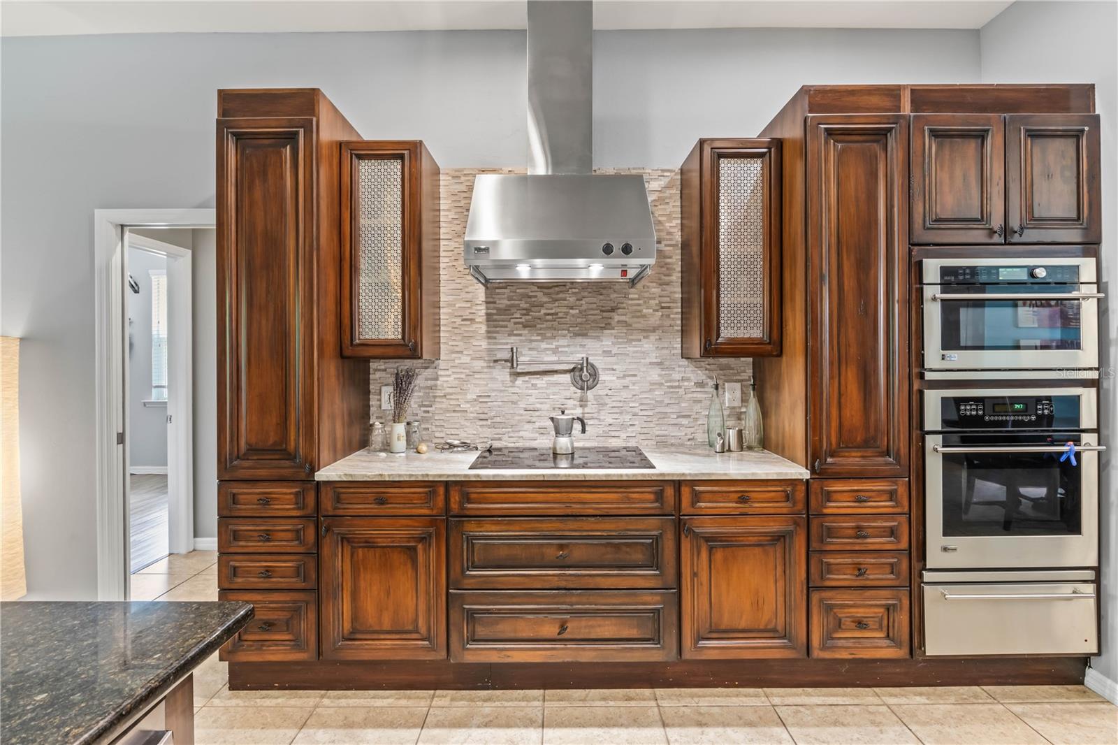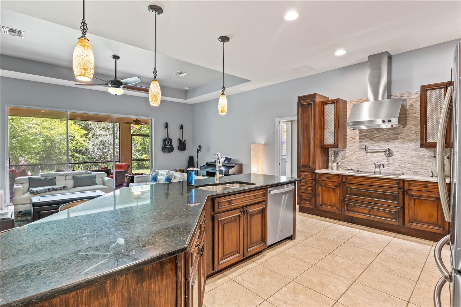 NO FLOODING EVER!!!!! Discover your private paradise tucked away in a tranquil cul-de-sac at Moody River Estates! This enchanting residence, featuring the beloved Brookfield floor plan, offers a perfect blend of elegance and practicality with 2,264 square feet of thoughtfully designed living space. Moody River is amenity rich with a boat launch directly out to the Caloosahatchee River, pickleball, tennis, resort style pool and clubhouse - a true lifestyle for boaters and activities. This isn’t your average home—it's filled with luxurious upgrades that make it stand out. The split 3-bedroom layout includes a den and a versatile flex room that can serve as a formal dining area, additional living space, or a home office. The recently remodeled gourmet chef’s kitchen is a culinary dream, equipped with stainless steel appliances, custom granite countertops, an eye-catching backsplash, and an oversized island perfect for gatherings. Unique features like a pot filler over the stove and a central vacuum system add convenience, while high-quality custom cabinets with pullouts and can drawers provide ample storage. The open floor plan ensures the home is always light, bright, and airy. The kitchen seamlessly connects to the large great room, offering breathtaking views of the tranquil preserve. The two spacious bedrooms and a bathroom with a pocket door create a private wing, perfect for guests or family members. The master suite is a true sanctuary, complete with private access to the covered lanai, his-and-hers walk-in closets, and a spa-like bathroom featuring a large walk-in shower and a luxurious soaking tub. This spectacular home is a rare find, blending modern luxury with timeless elegance. Don’t miss your chance to call this Moody River Estates gem your own—priced to sell and ready to welcome you home! HOA Fees includes all landscaping with annual mulching, internet/basic cable and access to all amenities- gym, two pools, playground and clubhouse. Residents also have access to the boat ramp off Moody Road and Hancock Bridge Parkway. The best of all worlds!