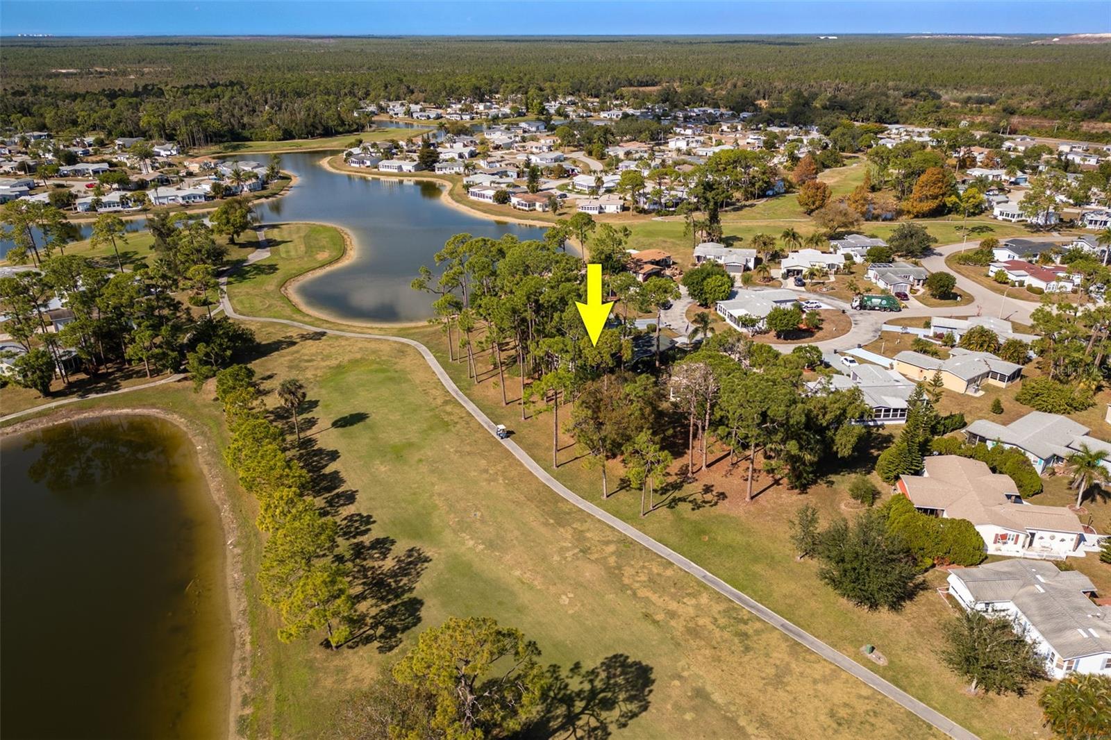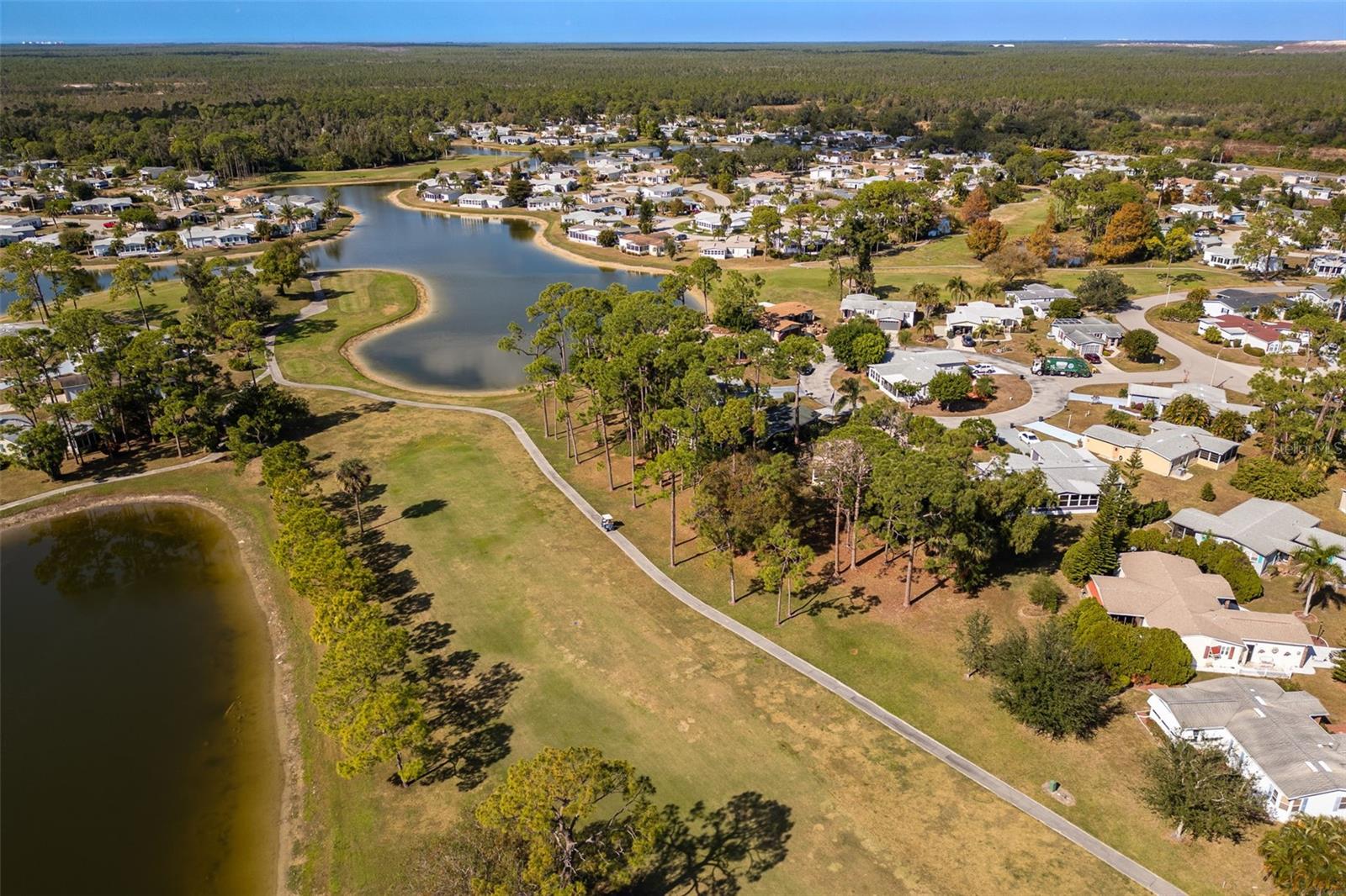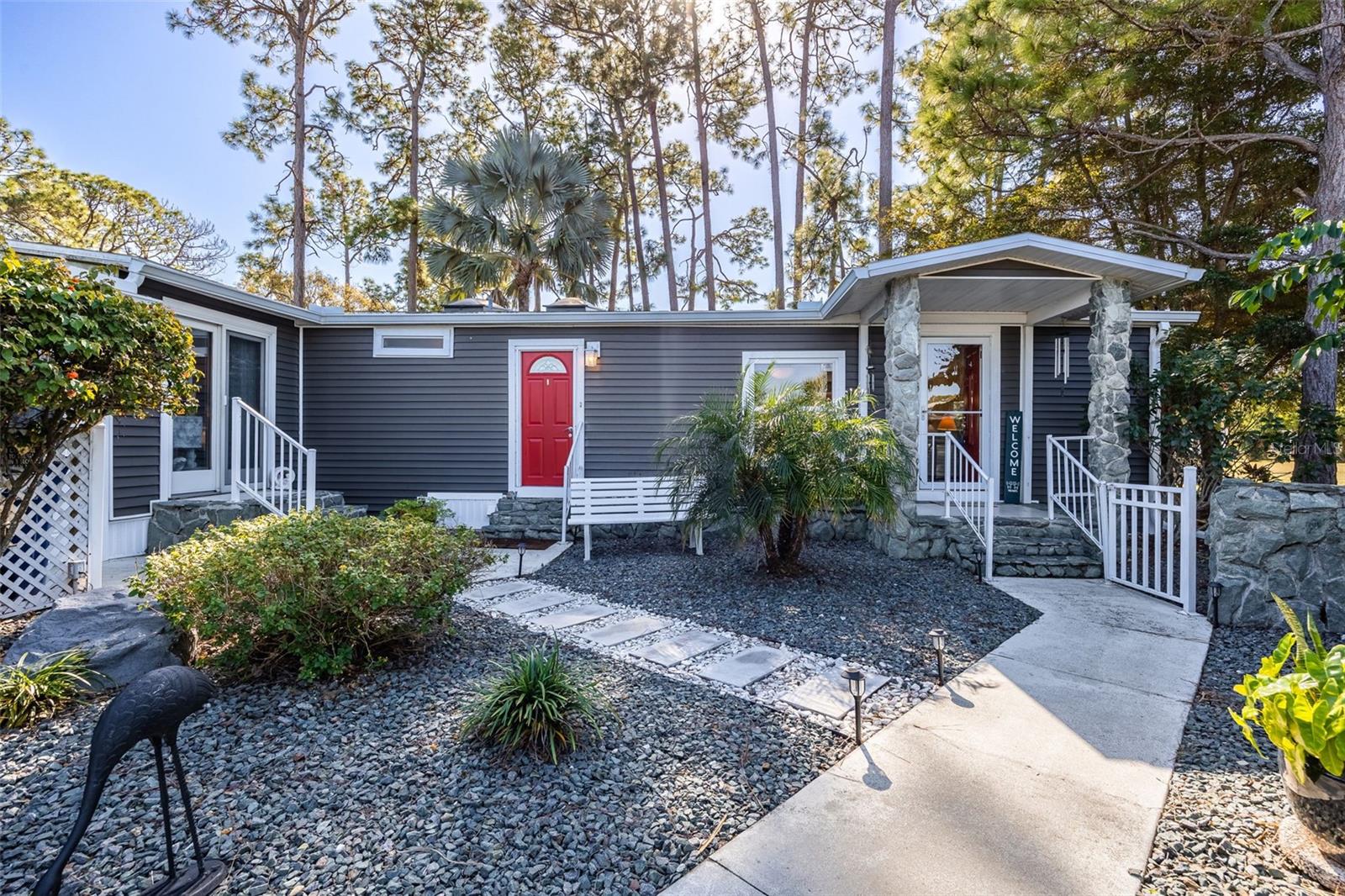 Your new peaceful retreat in the highly sought after 55+ Pine Lakes community awaits. This is a fun, active neighborhood centered around golf, nature, and friendly neighbors. Own the Home and the Land here with breathtaking views of two sparkling lakes and the 18th fairway, creating a truly serene backdrop for everyday living. You’re welcomed through a beautifully landscaped stone wall courtyard into a thoughtfully designed floor plan and charming home with two bedrooms plus a den/office, two bathrooms, and a two car garage with a convenient storage closet. The heart of the home is the open kitchen, perfectly positioned to connect with the surrounding living spaces. Enjoy a large kitchen island, pantry, abundant storage, and a window over the sink framing the backyard and water views. Just beyond, the expansive Florida room features a stunning 40-foot wall of windows, filling the home with natural light and showcasing the tranquil scenery. Lovingly updated with impact windows, premium vinyl siding with water vapor barrier, a new air conditioner, a 2018 roof, updated plumbing, and Hunter Douglas blinds. Outside, you’ll love the quiet setting, abundant wildlife, and wonderful neighbors, making this an ideal place to relax and enjoy the Florida lifestyle. Pine Lakes offers optional club membership while still allowing residents to enjoy an impressive array of amenities, including a community pool and spa, golf, tennis, bocce ball, shuffleboard, a library, and an on site restaurant. This is more than a home, it’s a lifestyle of comfort, beauty, and easy living in one of the area’s most welcoming communities. The owner has an assumable loan that may be a good option for you. Call today and come tour this home.