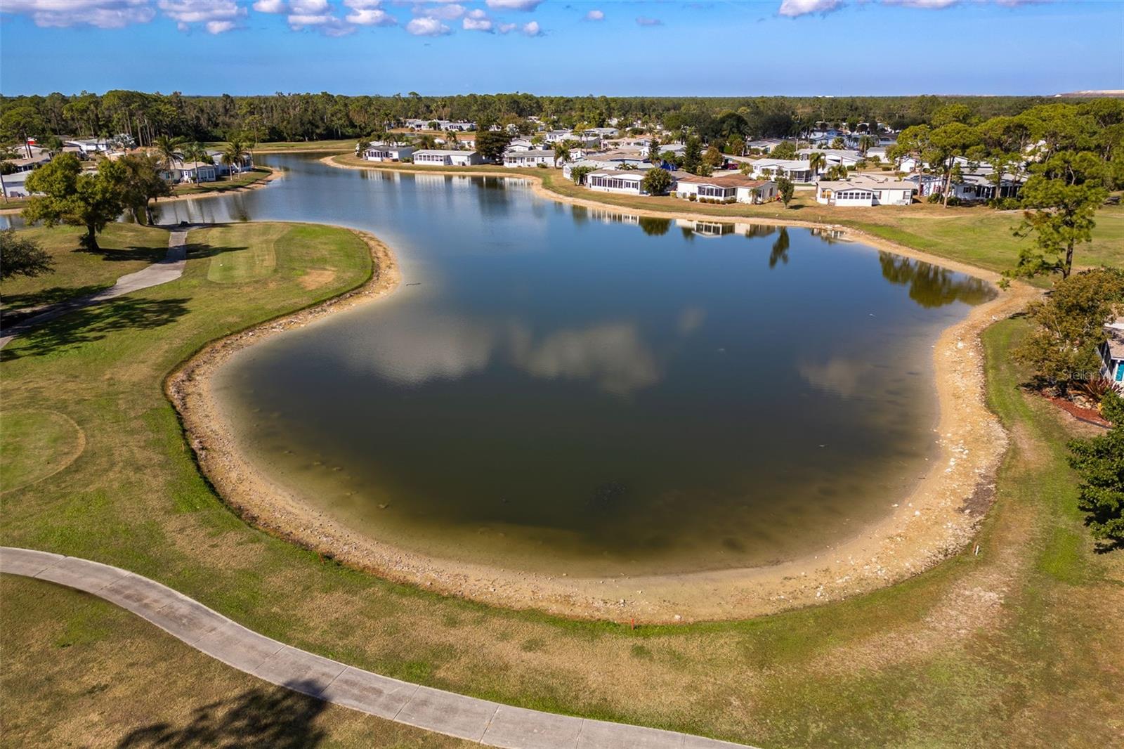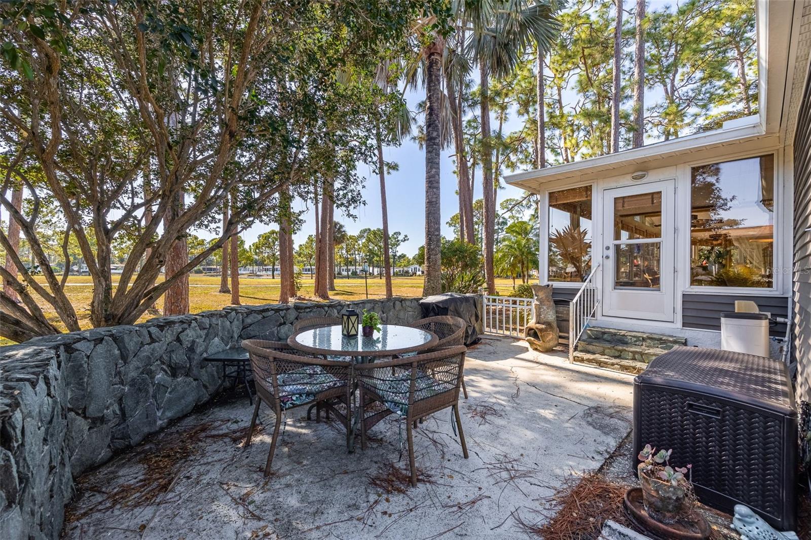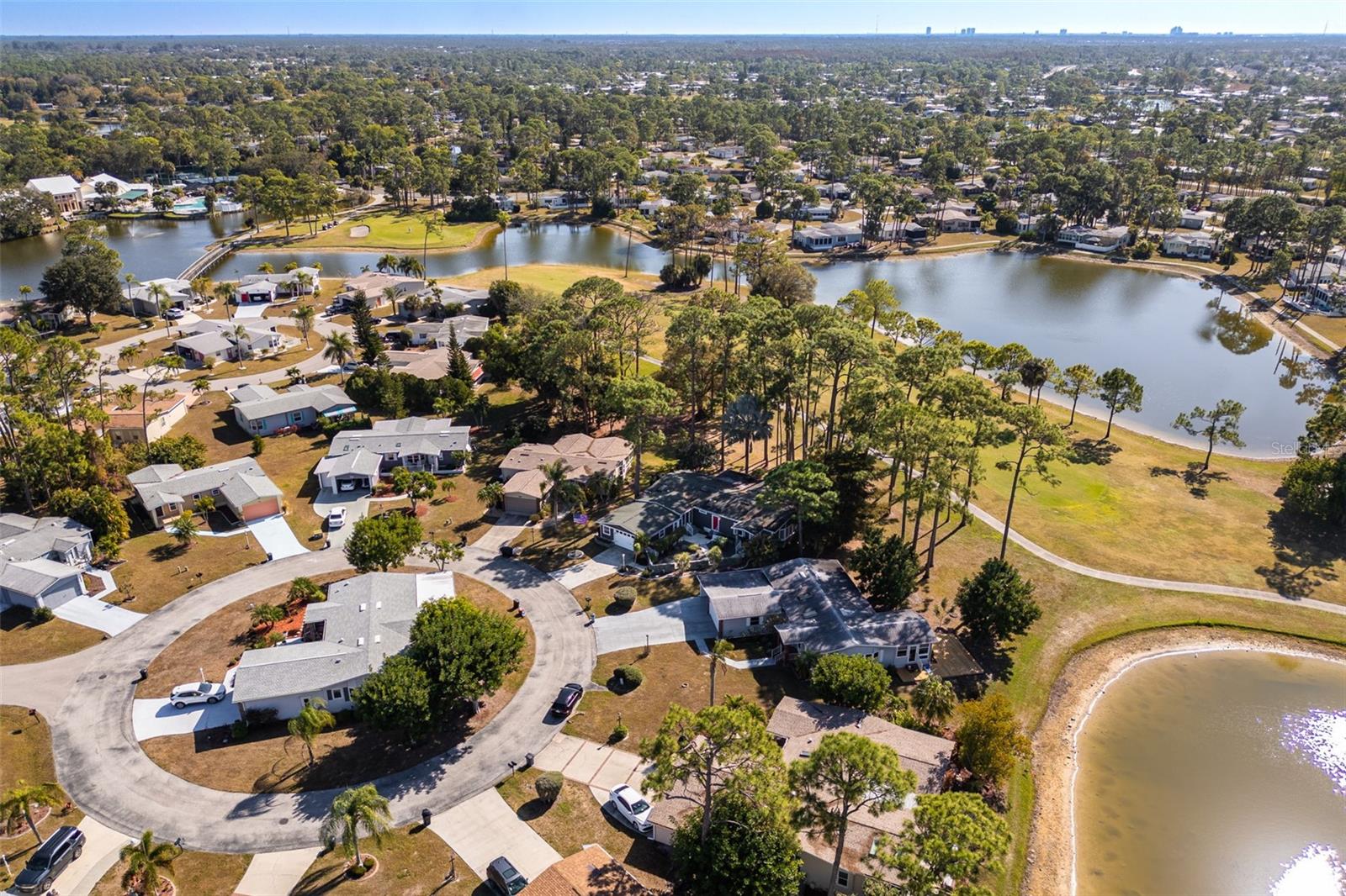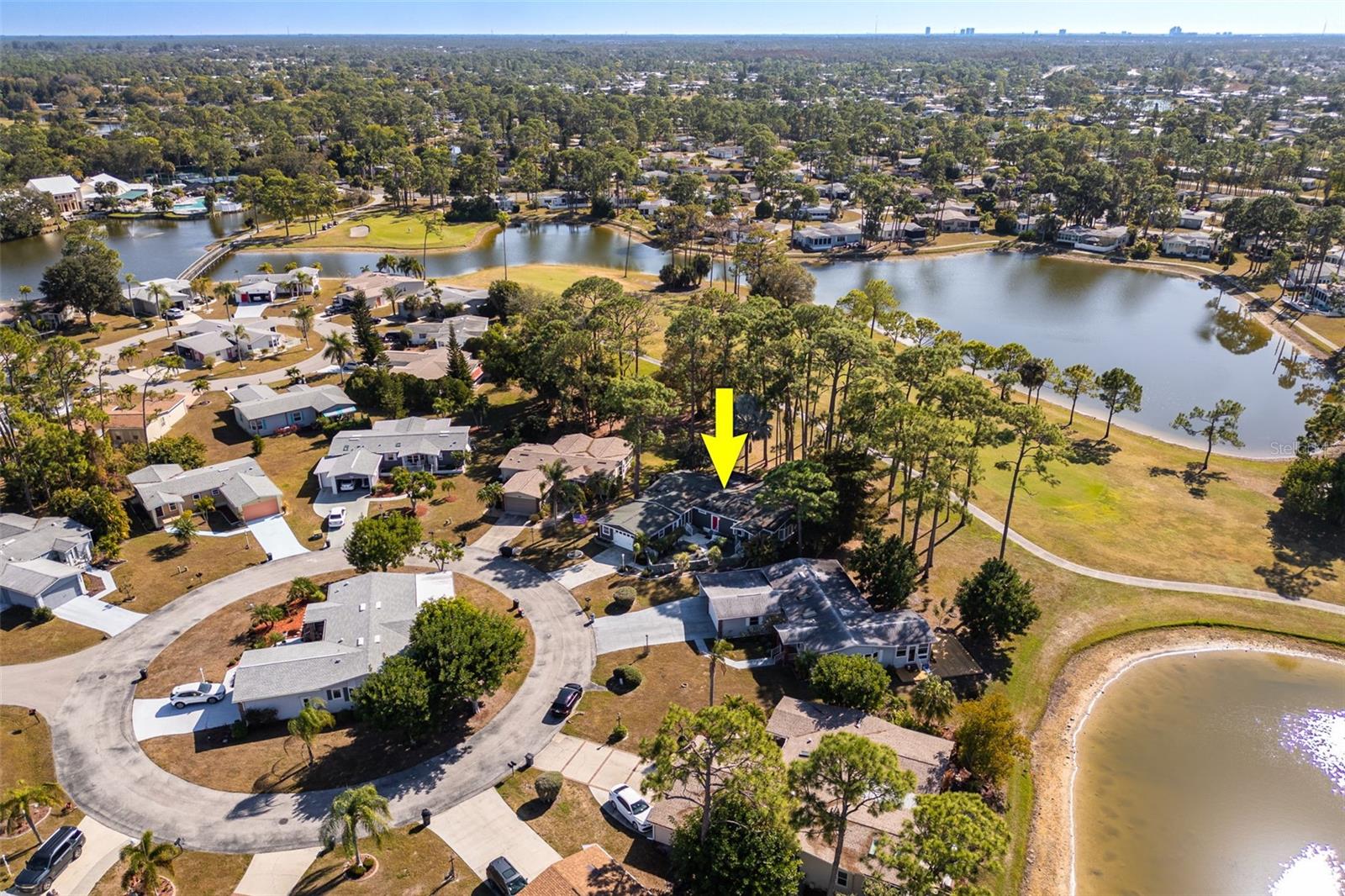 Your new peaceful retreat in the highly sought after 55+ Pine Lakes community awaits. This is a fun, active neighborhood centered around golf, nature, and friendly neighbors. Own the Home and the Land here with breathtaking views of two sparkling lakes and the 18th fairway, creating a truly serene backdrop for everyday living. You’re welcomed through a beautifully landscaped stone wall courtyard into a thoughtfully designed floor plan and charming home with two bedrooms plus a den/office, two bathrooms, and a two car garage with a convenient storage closet. The heart of the home is the open kitchen, perfectly positioned to connect with the surrounding living spaces. Enjoy a large kitchen island, pantry, abundant storage, and a window over the sink framing the backyard and water views. Just beyond, the expansive Florida room features a stunning 40-foot wall of windows, filling the home with natural light and showcasing the tranquil scenery. Lovingly updated with impact windows, premium vinyl siding with water vapor barrier, a new air conditioner, a 2018 roof, updated plumbing, and Hunter Douglas blinds. Outside, you’ll love the quiet setting, abundant wildlife, and wonderful neighbors, making this an ideal place to relax and enjoy the Florida lifestyle. Pine Lakes offers optional club membership while still allowing residents to enjoy an impressive array of amenities, including a community pool and spa, golf, tennis, bocce ball, shuffleboard, a library, and an on site restaurant. This is more than a home, it’s a lifestyle of comfort, beauty, and easy living in one of the area’s most welcoming communities. The owner has an assumable loan that may be a good option for you. Call today and come tour this home.