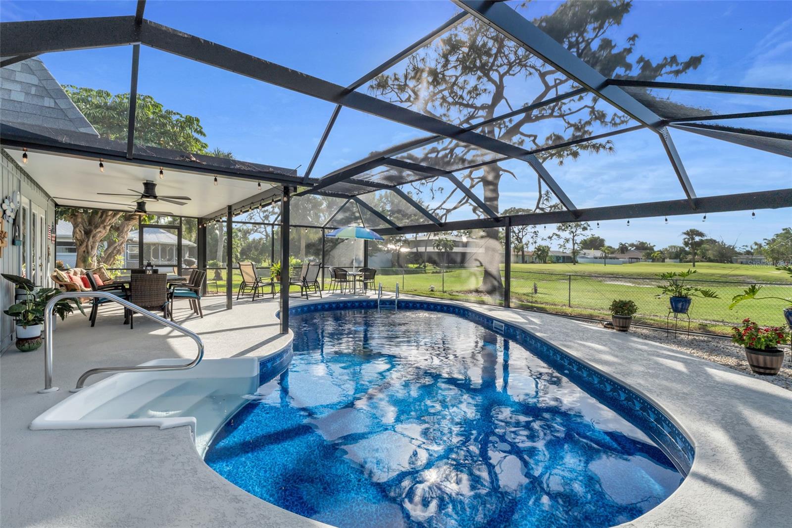 Discover this beautifully remodeled North Fort Myers gem, where modern comfort meets Florida charm. Recently renovated, this home boasts prime placement on the El Rio Golf Course and a host of upgrades, including a new roof, two new AC units, completely re-plumbed, and fresh indoor and outdoor paint. The open-concept interior features plantation shutters, abundant natural light, and a chef’s kitchen with granite countertops, new stainless-steel appliances, and a breakfast bar. The huge primary suite offers a tranquil retreat with an oversized bedroom and luxurious en-suite bath, while additional bedrooms provide versatile space for guests, an office, or hobbies. Outside, the fully fenced yard is a private oasis with a completely redone pool area, including a new cage, lining, deck, and repiping. Lush landscaping is supported by a new irrigation system, and the screened lanai is perfect for relaxing or entertaining. Conveniently located near shopping, dining, parks, and waterways, this move-in-ready home is your gateway to the ultimate Florida lifestyle!