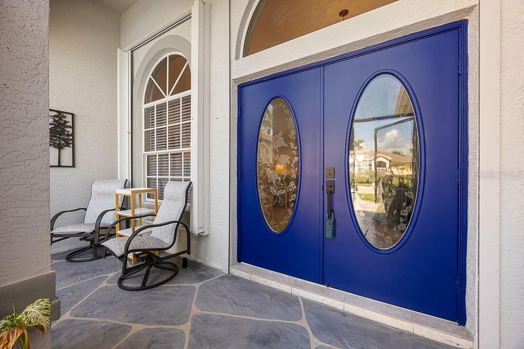 This spacious well cared for home in the lovely Herons Glen Golfing community is truly a gem. Tranquility at its best will sum it up. The Metal roof installed in 2023 has the appearance of barrel tile. The lush landscaping and welcoming front porch is inviting. When walking through the double door entry you instantly experience elegance. There is a large open feel throughout and the upgraded features are evident. The pool/lanai area is lovely with a spectacular view! It has a combination of a covered area for shade, a spacious deck for lounging and an electric awning for adjustable coverage, it is a wonderful place to appreciate the Florida lifestyle.