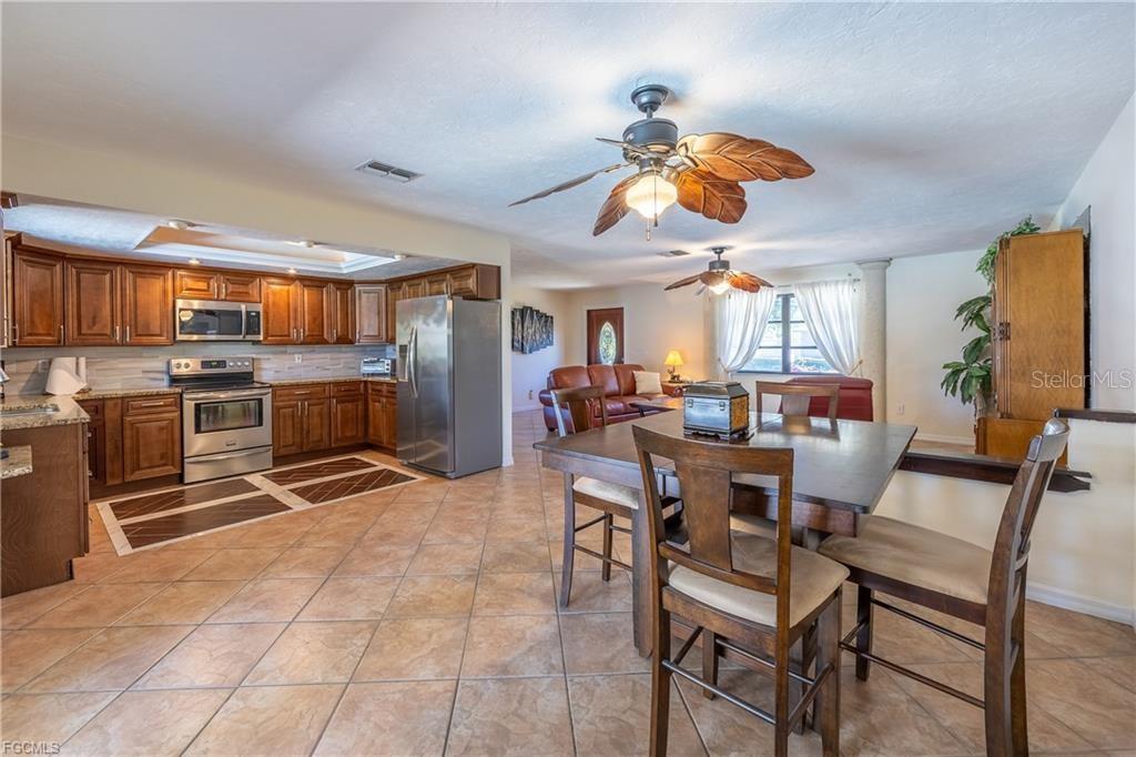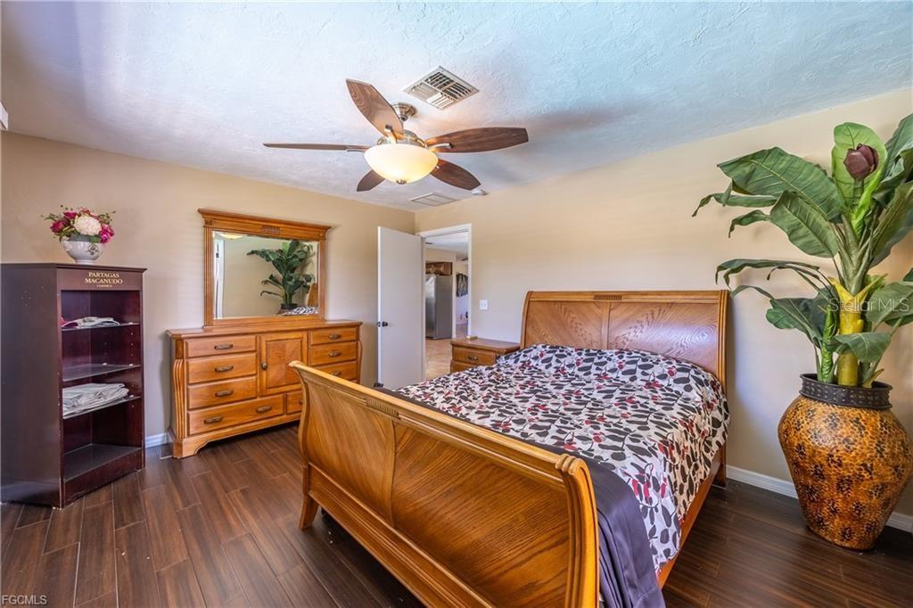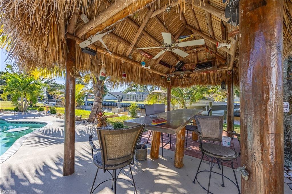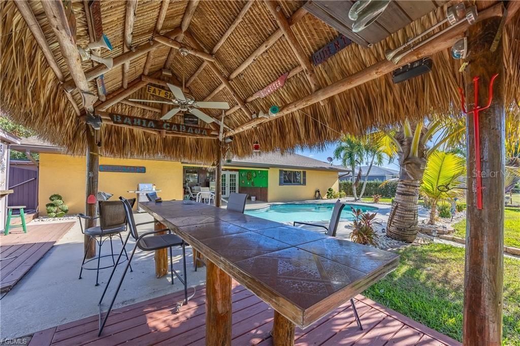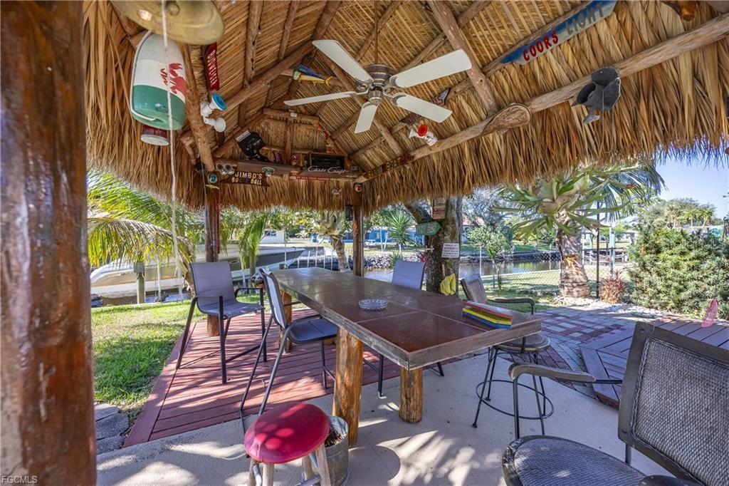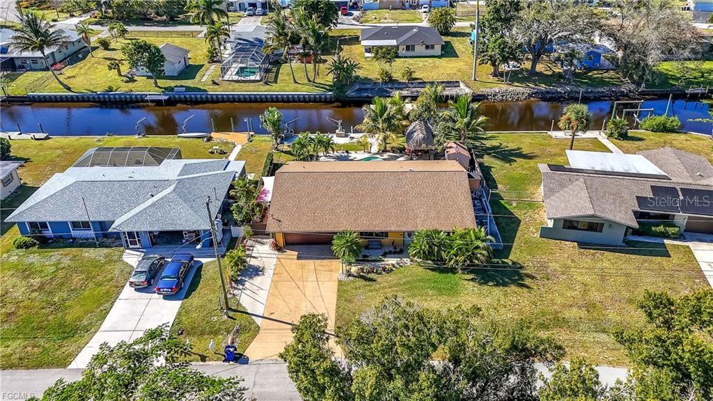 **Waterfront Paradise with Gulf Access – 3BR/2BA Pool Home in Prime North Fort Myers Location!** Welcome to your dream Florida lifestyle! This stunning 3-bedroom, 2-bathroom waterfront oasis combines modern upgrades with resort-style living and direct Gulf access. Boat enthusiasts will love being just minutes to the Caloosahatchee River with a private dock featuring Trex composite decking, electric boat lift with protective canopy (installed within 6 years), and davits ready for your watercraft. Recent major improvements include a brand NEW 2025 AC system and hot water heater, NEW 2022 roof, beautifully renovated modern kitchen, and sparkling pool surrounded by professionally landscaped tropical gardens. The backyard is a true entertainer's dream with an authentic tiki hut, resort-style heated pool, and lush greenery that transforms your outdoor space into a private island escape. Practical features abound with a HUGE 616 sq ft oversized garage providing abundant storage, convenient shed for tools and toys, and extra-wide driveway with room for multiple vehicles, boat trailer, and RV. The low-maintenance Trex dock won't warp, rot, or splinter, making waterfront ownership effortless. Furniture is negotiable for added convenience, and quick Gulf access opens up endless opportunities for fishing, boating, and island adventures. Ideally located near downtown Fort Myers, you'll enjoy easy access to shopping, dining, entertainment, and Southwest Florida's pristine beaches—all while living the coveted waterfront lifestyle. This move-in ready paradise won't last long in today's competitive market. Whether you're seeking a primary residence, vacation retreat, or investment property, schedule your private showing today before this gem is gone!