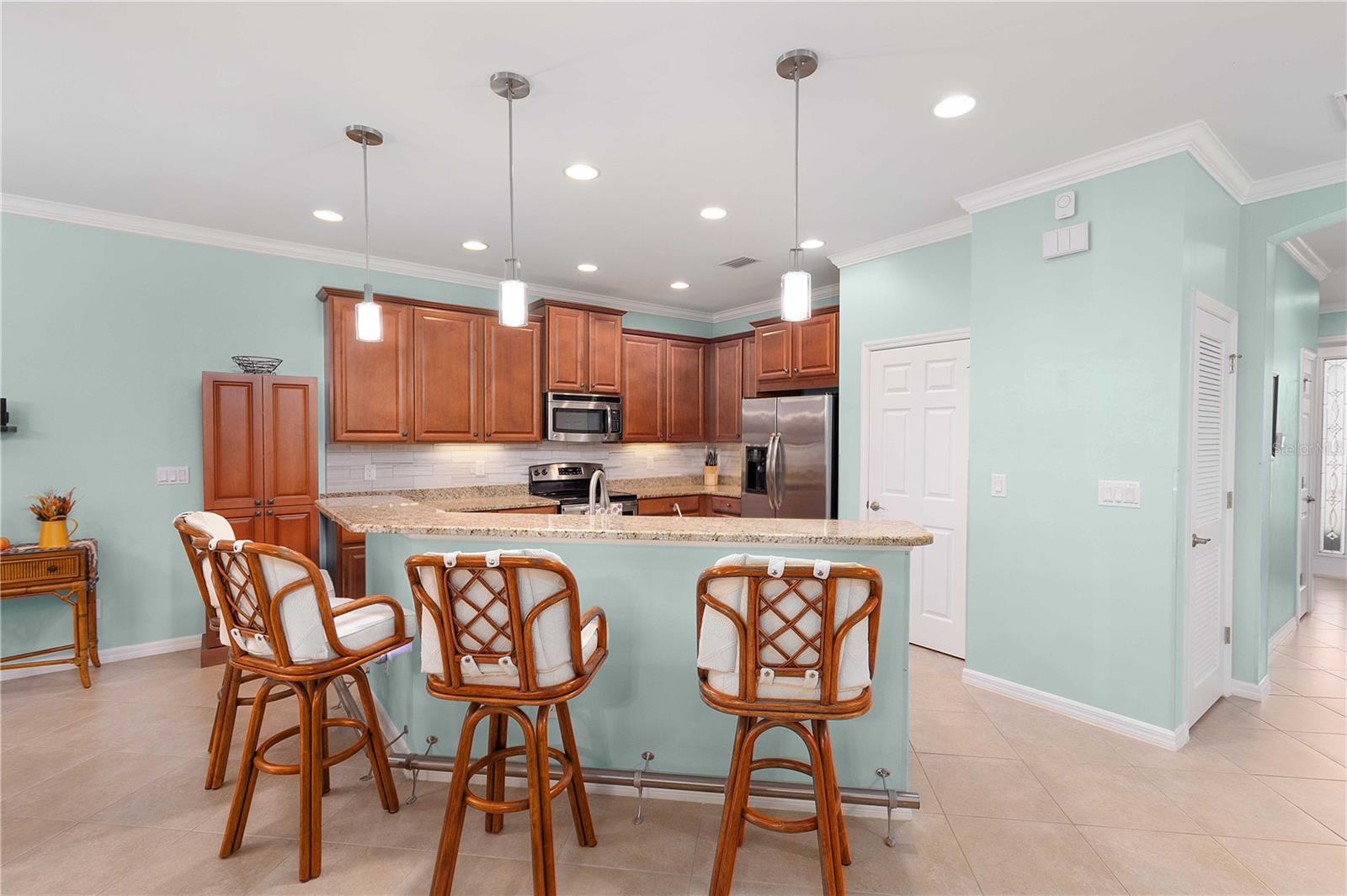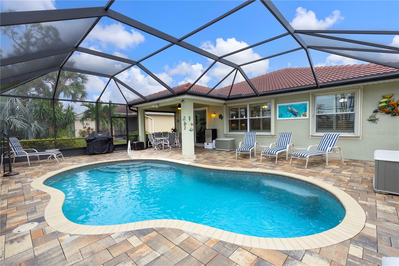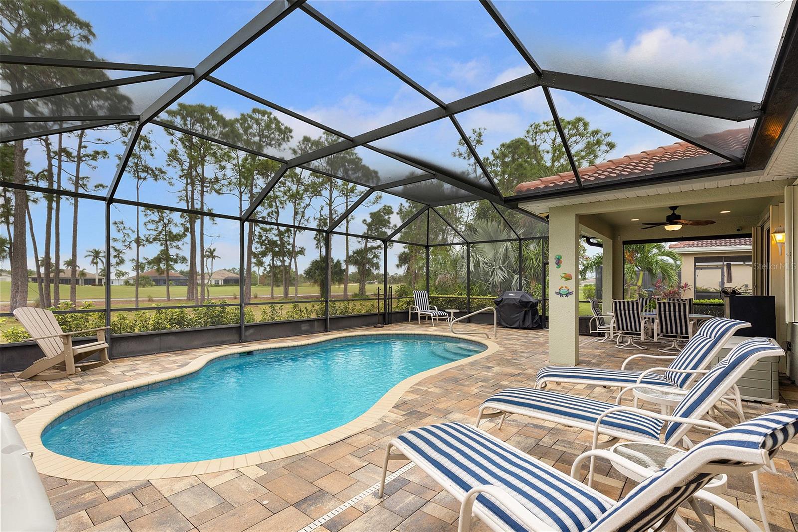 Welcome home! Make your appointment to tour this “move-in ready” 3 bedroom, 2 bathroom home that offers a perfect blend of comfort and style. Whether you're a growing family, a first-time homebuyer, or simply looking for a cozy retreat, this home is a must-see. The bright and airy living area welcomes you with natural light that floods the space, offering beautiful views of the swimming pool and 13th fairway. The open-concept design flows seamlessly through the living and dining areas into the kitchen, which is a true standout with sleek stainless steel appliances, beautiful granite countertops and a breakfast bar complete with foot rails. ideal for both casual meals and entertaining. The master suite provides a peaceful retreat with a spacious walk-in closet and a private ensuite bathroom. The ensuite includes dual vanities, a spa tub and step in shower, creating the perfect spot to unwind after a long day. The 2 additional well-sized bedrooms offer versatility—great for children, guests or a home office. Step out into your own private poolside oasis! Enjoy a refreshing swim, entertaining friends and family or simply enjoying quiet moments in the fresh air under the covered lanai. The attached two-car garage provides ample parking and storage, generator quick connect as well as the convenience of pull-down stairs for easy attic access, this home has been lovingly maintained and cared for ensuring years of enjoyment. Ideally located just minutes from the Clubhouse, Restaurant and Golf Course. This Community boasts Resort Style Living to include a Pool, Lap Pool, Fitness Center, Pickleball Courts, Bocce Ball, Shuffleboard, Social Hall, Daily Activities, Social Events and More. This home offers both tranquility and easy access to everyday amenities. Don’t miss your chance to own this fantastic property—schedule your private showing today!