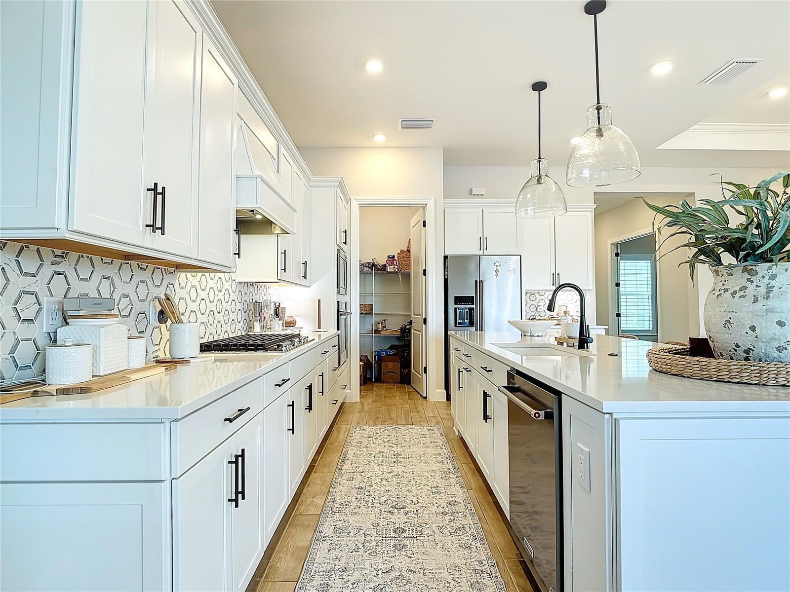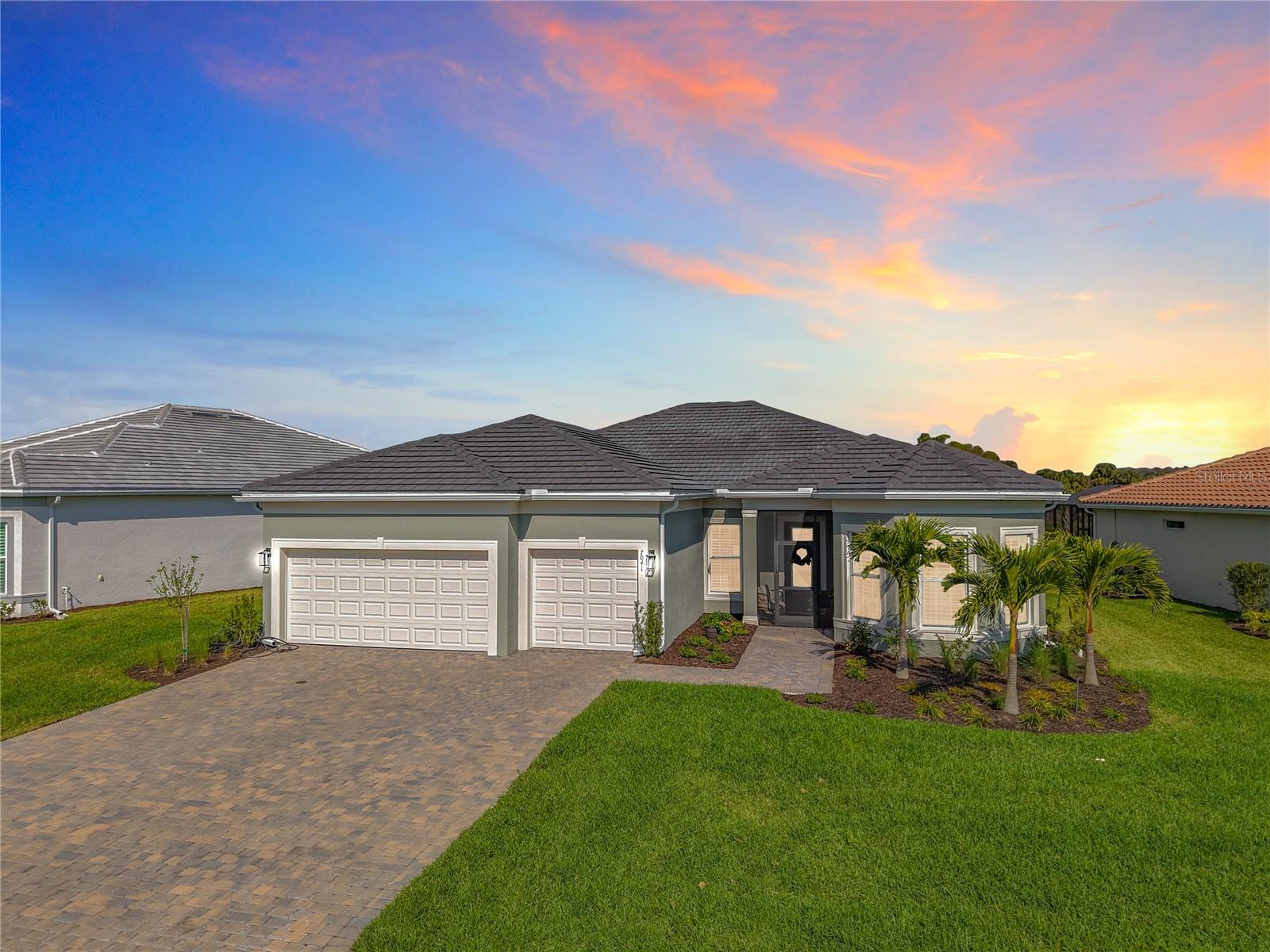Step into magazine-worthy elegance with this 2024-built Stellar model by Pulte, part of the prestigious Echelon Series. Less than a year old, this exceptional 3-bedroom + office/den home showcases impeccable design and craftsmanship, with high-end finishes and breathtaking lake views that set it apart. From the moment you arrive, the decorative brick-paved driveway and tile roof exude sophistication. Inside, the tray ceilings, quartz countertops, and designer lighting create an ambiance of refined luxury. The chef’s kitchen is a showstopper, featuring upgraded 42-inch cabinetry, a stylish designer backsplash, a built-in oven and microwave, a gas cooktop, and an expansive island. Both ensuite bedrooms offer spa-like retreats with walk-in showers, while the full stone wall fireplace adds warmth and elegance to the open living area. The seamless indoor-outdoor living experience is elevated with a zero-corner sliding glass door leading to a covered lanai, screened-in pool, and spa—all overlooking a mid-lake view of a picturesque island, home to majestic eagles and ospreys. Situated on a premium lot, this home also boasts all-tile flooring (no carpet!), a 4-ft extended 3-car garage with an electric car outlet, whole-house gutters, and a state-of-the-art "Tubes in Wall" pest defense system and Sentricon termite bait system. The automatic sprinkler system ensures lush landscaping year-round. Beyond your front door, Del Webb Oak Creek redefines resort-style living. Enjoy the grand clubhouse, resort pool, pickleball and bocce courts, a cozy fire pit lounge, cutting-edge fitness center, and group exercise studio. With endless social activities and community events, every day here is an opportunity for relaxation, recreation, and connection. Don’t miss your chance to own this designer-inspired sanctuary in one of the most sought-after 55+ communities!