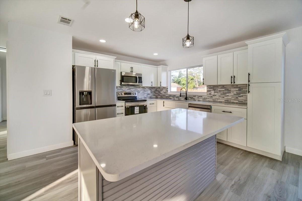 PRICED TO SELL - COMPLETELY REMODELED low HOA fee home centrally located in the up and coming North Port area. Close to some of the best dining, sports entertainment and shopping North Port has available. The house features a brand new roof, brand new HVAC system and all new appliances in the custom built kitchen with new solid wood cabinets and quartz countertops. Beautiful waterproof laminate flooring throughout and ceramic tile in the freshly remodeled bathrooms. Freshly painted inside and out. Brand new blown in insulation in the attic for more energy efficiency. This property is on county water and sewer. The home features a 12x12 home office/den with potential to become a fourth bedroom. This home has been tastefully designed for the Florida lifestyle and boasts a large back yard with ample space for a swimming pool or your recreational vehicles. Listing agent has interest in the property. EVERYTHING has been done for you, just bring your belongings and move right in!