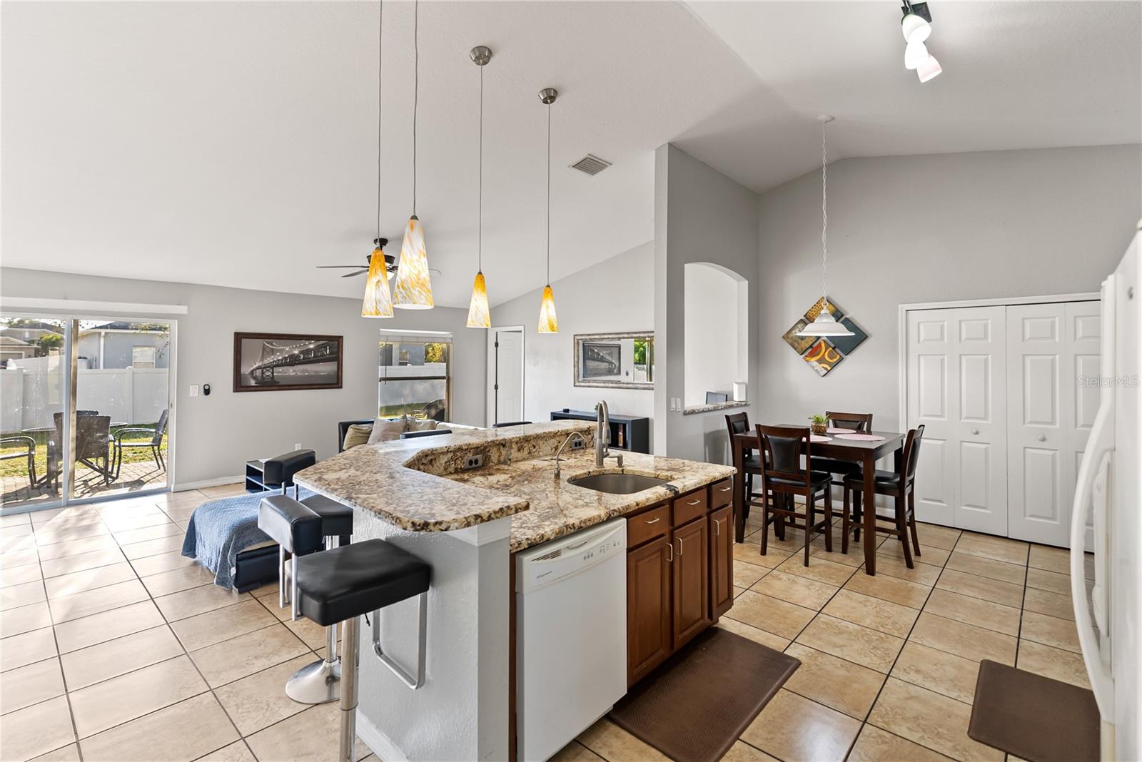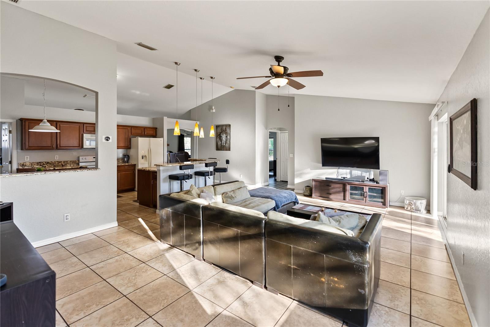 Welcome to your dream home! This meticulously maintained 3-bed, 2-bath haven is a true gem. It boasts an open floor plan that exudes warmth and charm. As you approach, be greeted by grand pillars that set the tone for the elegance that awaits within. Step into a world of possibilities through an attractive archway, leading you to versatile spaces that can be transformed into a den, office, or a bonus room, allowing you to tailor the space to your lifestyle. The dining room, or potentially a spacious bonus room, provides flexibility for your unique needs. The heart of this home is the great room adorned with soaring ceilings that create an air of grandeur. The updated kitchen is a chef's delight, featuring refined cabinets, granite countertops, and a generously sized island—perfect for those who love to entertain and cook with style. Additional conveniences include a double closet pantry and a charming breakfast nook. Plus, the solar panels are available for a small monthly payment. The split floor plan ensures privacy, with two guest rooms on one side and a large master bedroom on the other. The master suite is a sanctuary, complete with a walk-in closet, a rejuvenating garden tub, and a walk-in shower – a perfect retreat after a long day. As you explore further, discover a vinyl-fenced backyard with a brick paver patio, offering a private oasis for outdoor enjoyment. This home is not just a dwelling; it's a lifestyle. The location is unbeatable, with easy access to the Interstate, grocery stores, CocoPlum shopping center, gas stations, parks, and more. Weekends will become a delight with a quick drive to the new Wellen Park and multiple beautiful beaches, providing endless leisure opportunities. Plus, enjoy the freedom of no HOA fees, giving you the flexibility to personalize and maintain your property without additional restrictions. Solar panels, 2 years old, seller paid $32,000 not included in the sale. Don't miss out on the chance to call this exquisite residence your own – a perfect blend of style, convenience, and comfort. Act now and make this dream home a reality!