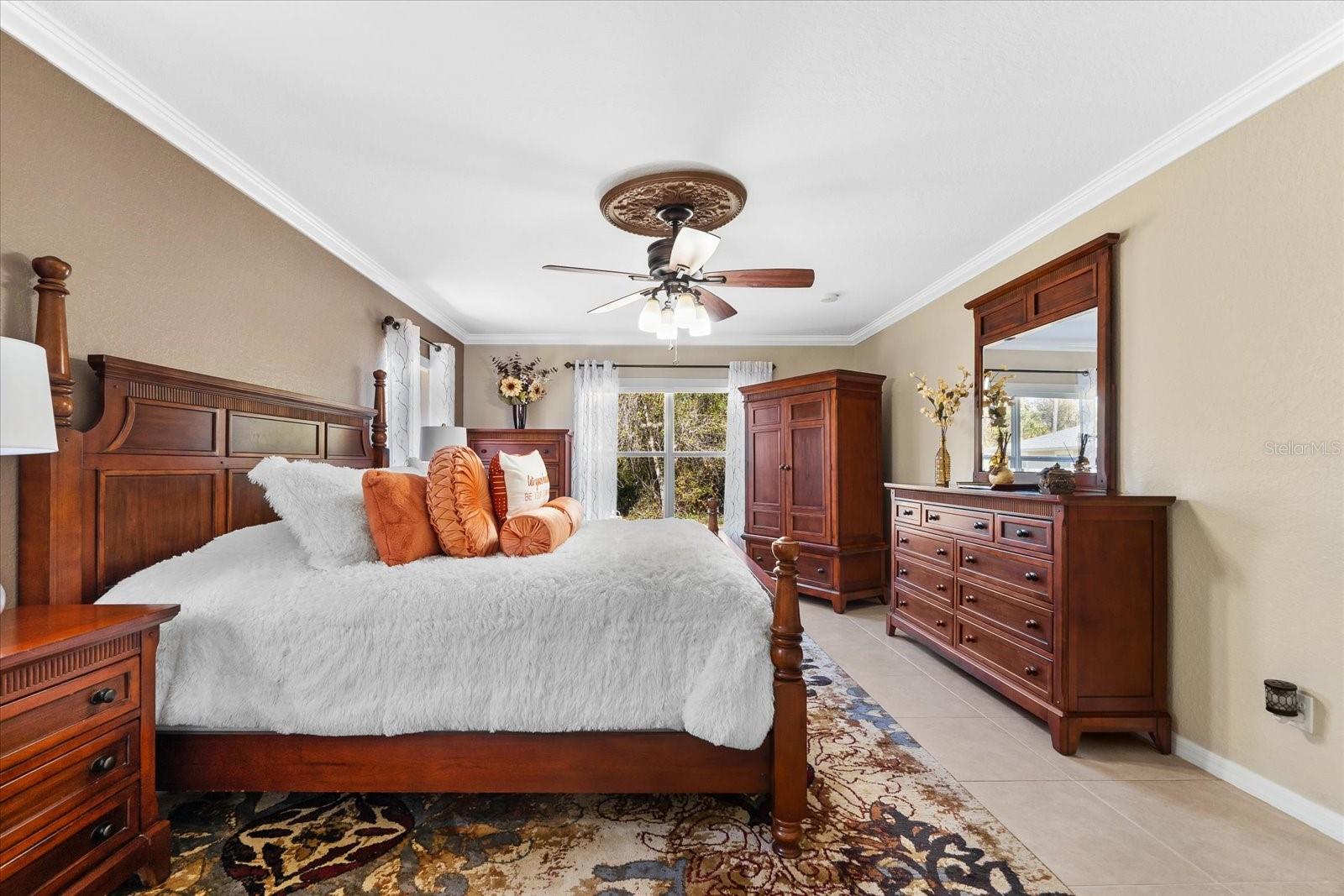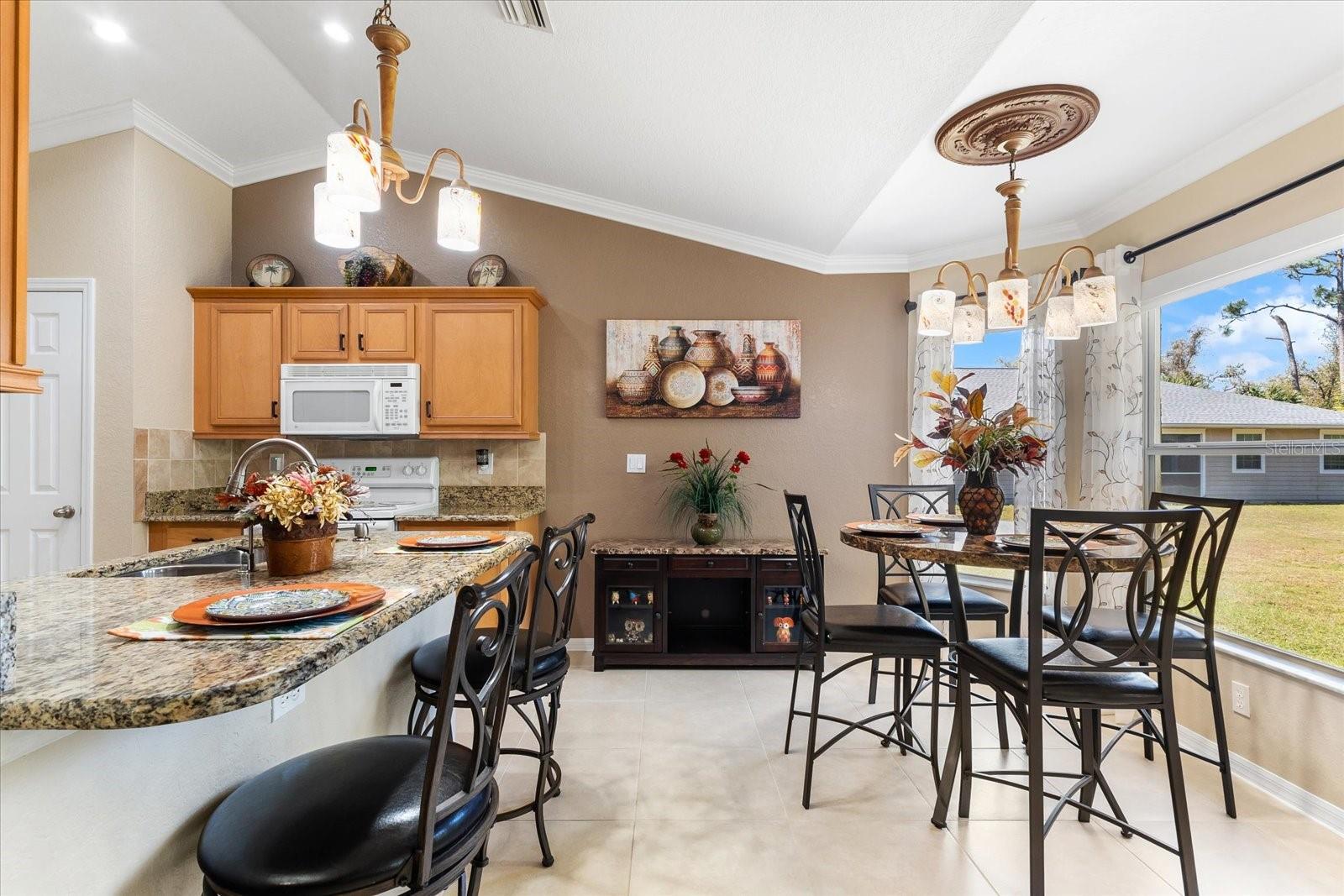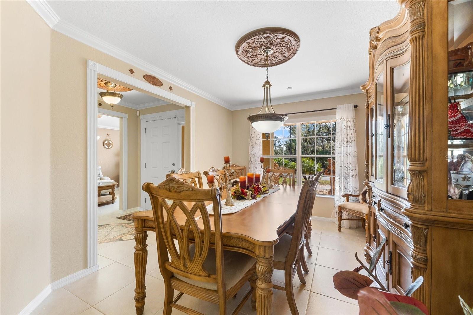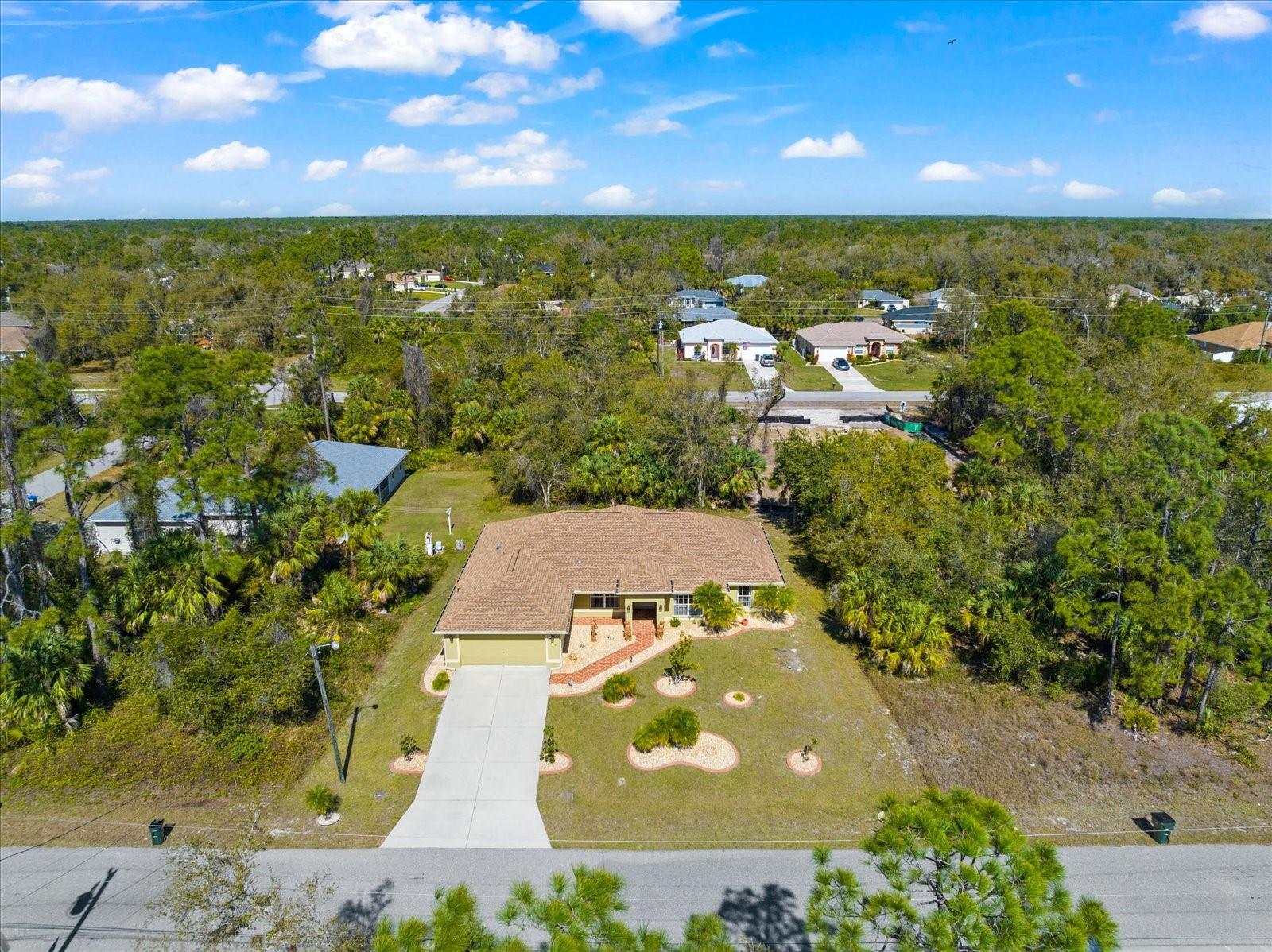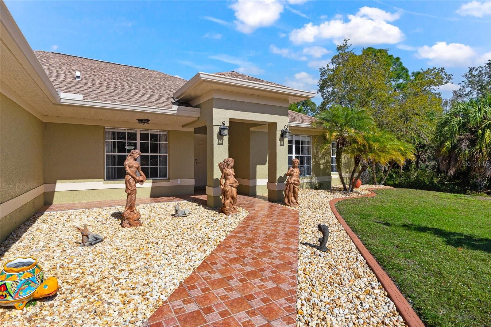 Wow! Wow! Wow! Price Improvement of $12000. Immaculate 4 bedroom/2bath home plus a formal living room/den. One of the bedrooms needs a closet door. This home will please your pickiest buyer! On a large .23 acre lot you will have plenty of room to roam. This home has been meticulously maintained and upgraded. Some of the upgrades include *2024 well pump and tank*, *Roof 2018*, *Whole house water softener 2018*, *A/C 2018*, *Refrigerator 2022*, garage epoxy flooring, custom tile inlayed in entryway and living room you will love, Security cameras will stay with the home. From the moment you pull up in the driveway you will be delighted with the curb appeal with the whole house curbing with river rock border completely around the exterior to make maintenance free trimming, beautiful tile walkway with statues. Once through the door you will be delighted with the custom inlayed tiles at the foyer and the living room, crown molding, and built ins with cathedral ceiling. Formal living room/office to your right could be a fourth bedroom. Kitchen has solid wood cabinets, stone countertops and a beautiful area to eat in the kitchen overlooking the back yard. Split bedroom plan with a large master bedroom with crown molding, and beautiful flooring. Master bathroom has double sinks with tub/shower combo. You can sit on your back screened lanai and sip on your tea while you watch the birds and wildlife. You will love the location of feeling like you are in the country but close to restaurants, shopping, medical, and world famous beaches. Call today for your private showing. You will not be disappointed. Quick closing possible.