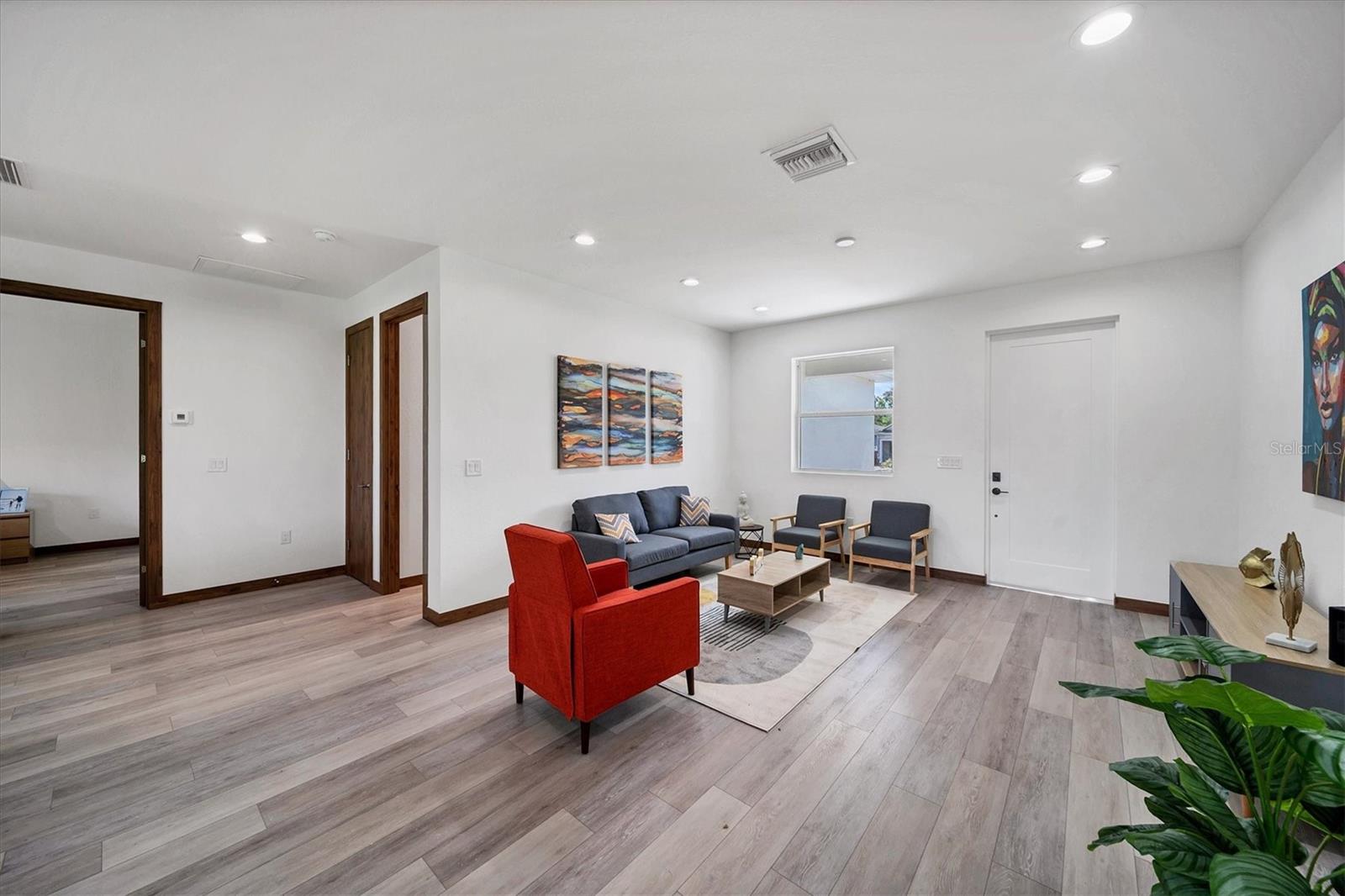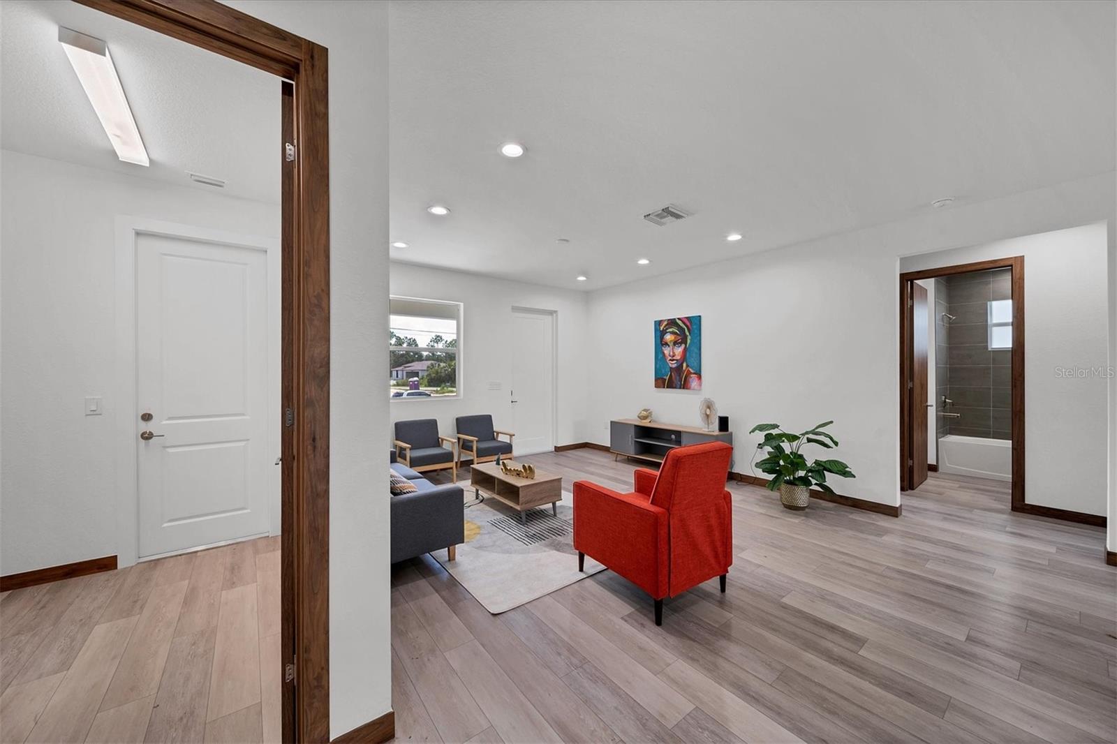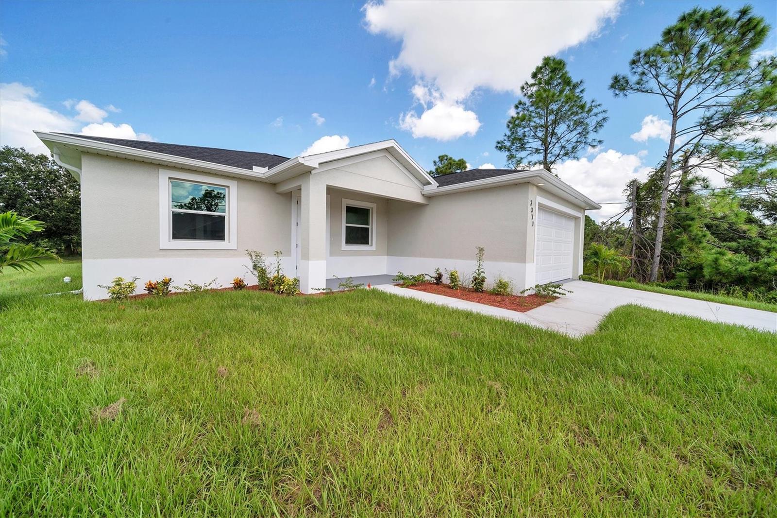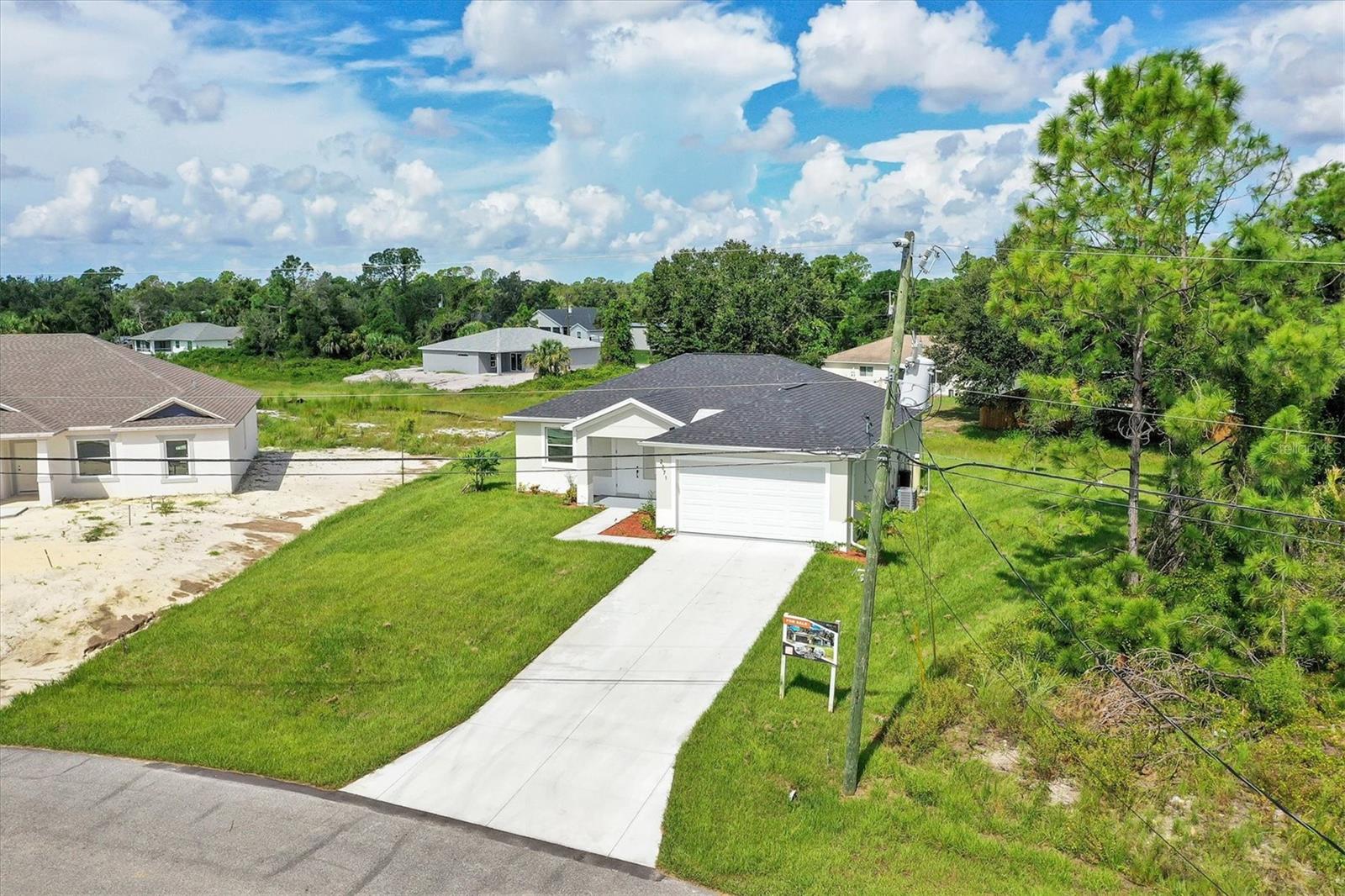 **Newly Listed: Exquisite Single Family Home in North Port, FL** Welcome to this stunning new construction home in North Port, FL! This spacious 3-bedroom, 2-bathroom house is an absolute gem that you don't want to miss. Let me walk you through the incredible features that make this property truly special. **Interior Grandeur:** As you step inside, you'll immediately notice the impressive 9.4-foot-high ceilings, creating a sense of openness and grandeur throughout the entire house. The luxury vinyl flooring adds a touch of elegance and durability, providing a sleek and modern aesthetic that complements any decor. **Open Concept Living:** The open concept design is perfect for entertaining and creating a warm and inviting atmosphere. The seamless flow between the living areas allows for easy interaction and comfortable living. The large lanai offers an outdoor retreat, ideal for relaxing and enjoying the beautiful Florida weather. **Safety and Comfort:** One standout feature of this house is the hurricane impact windows, providing peace of mind during stormy weather while also enhancing energy efficiency and reducing noise. Safety and comfort are paramount in this home. **Functional Spaces:** The laundry room adds convenience and functionality, making chores a breeze. No more trips to the laundromat or cluttered laundry spaces—everything is conveniently located within your own home. **Gourmet Kitchen:** Prepare to be amazed by the beautiful, modern kitchen featuring soft-closing cabinets. This sleek and stylish space is perfect for culinary enthusiasts, offering ample storage and countertop space to make cooking a joyous experience. Whether you're a professional chef or simply enjoy preparing meals for loved ones, this kitchen will surely impress. **Outdoor Splendor:** Situated on a generous 1/4 acre, this property provides ample space for outdoor activities, gardening, or even expanding in the future. The city of North Port, FL, offers a beautiful and vibrant community with a plethora of amenities, ensuring a high quality of life for its residents. **Conclusion:** In summary, this new construction home in North Port, FL, is an absolute must-see. From the soaring ceilings to the luxury vinyl floors, the open concept design to the hurricane impact windows, this house offers a blend of modern luxury and practicality. Don't miss the opportunity to own this beautiful property in a thriving city. Schedule your viewing today!