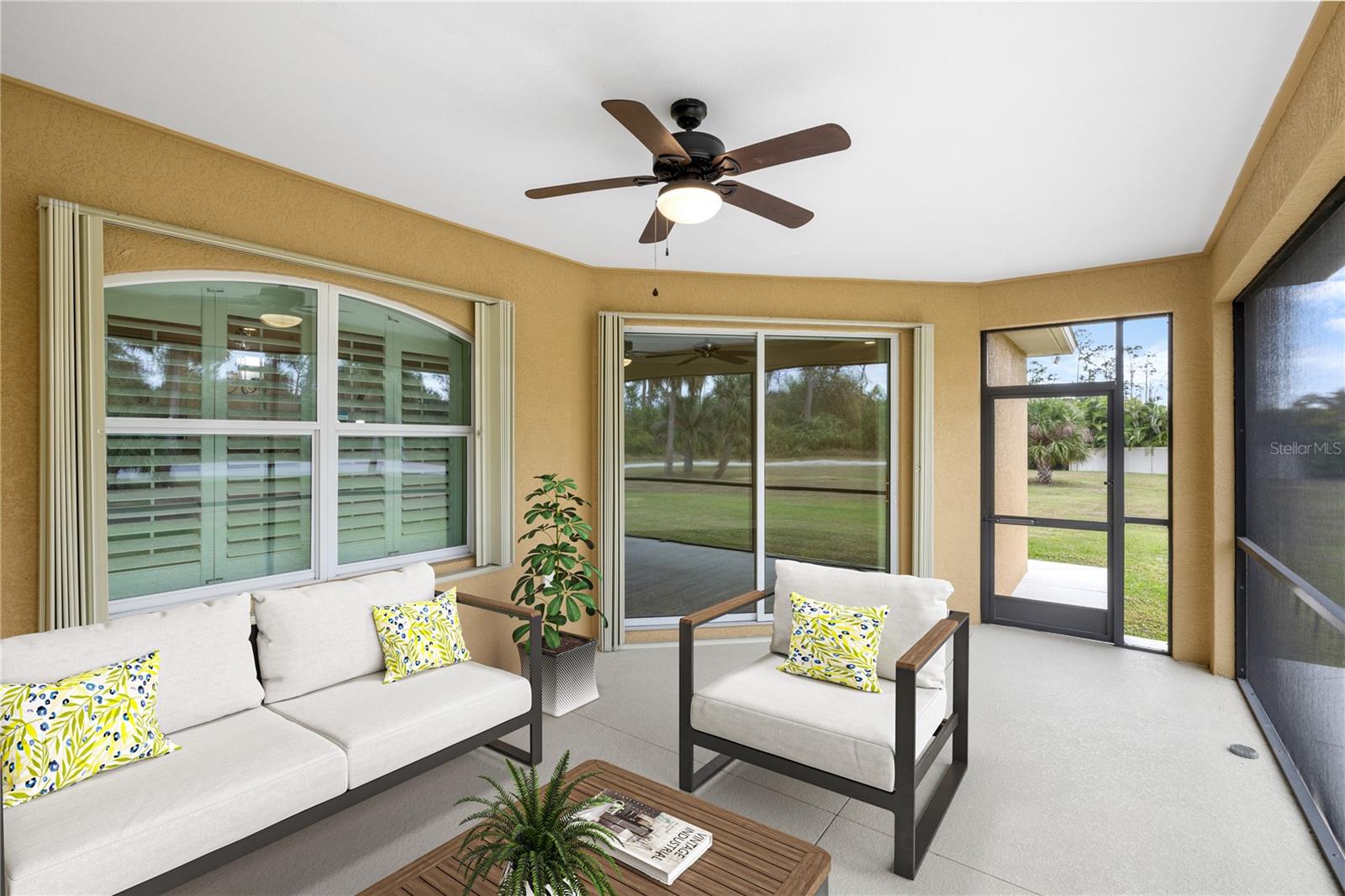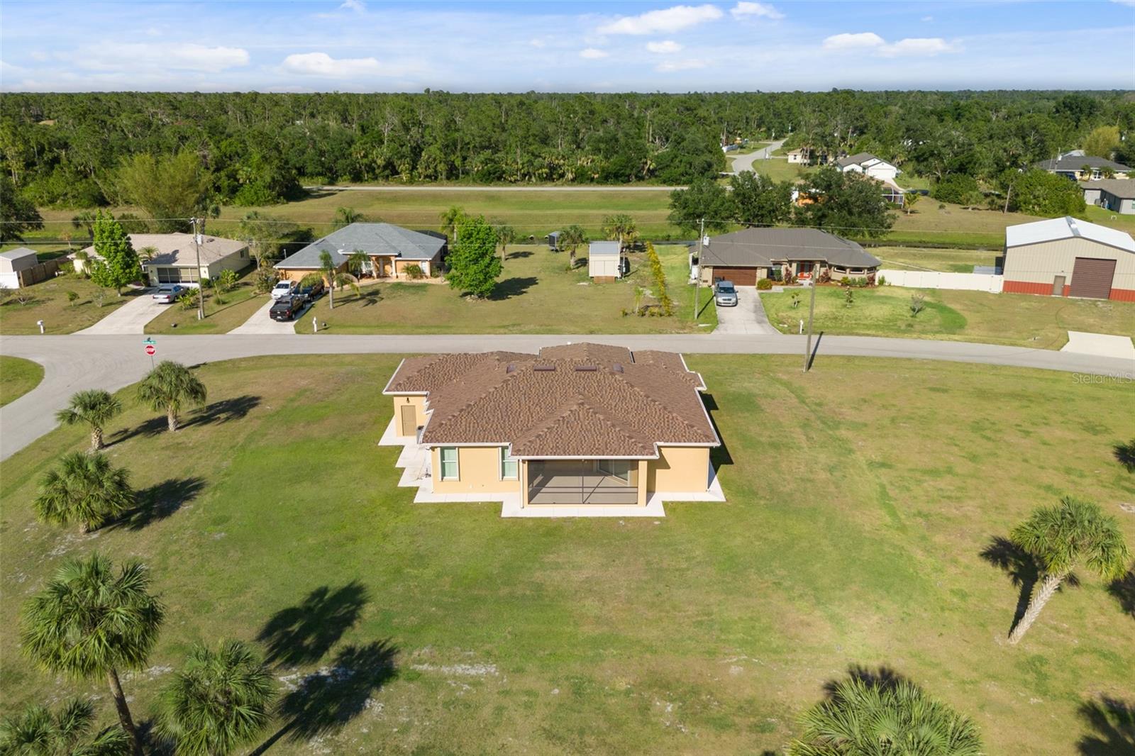 No damage from recent hurricanes! 1-Acre Property! Welcome to this spacious 2019-built home boasting 3 bedrooms plus a den, 2 bathrooms, complete with a rare 3-car garage for added convenience. Inside, tile flooring flows seamlessly throughout, offering both style and easy maintenance. The high ceilings enhance the sense of space, while the open kitchen, a chef's dream, features stainless steel appliances, quartz countertops, and a large island - perfect for entertaining friends and family. Situated on a sprawling 1-acre corner lot, this home offers ample outdoor space for activities and a sense of privacy rarely found in suburban settings, including a sidewalk around the property and a large under-roof lanai for outdoor entertaining. Safety is a priority with monitoring security cameras, a Ring Video Elite doorbell, and window + door sensors. Plus, enjoy the peace of mind provided by accordion hurricane shutters and whole-home termite protection. Additionally, the home comes with a 5-year home builder warranty still in place, ensuring continued coverage and reassurance for the new homeowner. Don't miss out on this wonderful opportunity! Conveniently located in North Port, this residence offers the perfect balance of tranquility and accessibility, with nearby amenities including shopping, dining, and recreational opportunities. Whether you're seeking a peaceful retreat or a place to call home, this property promises to meet all your needs.
