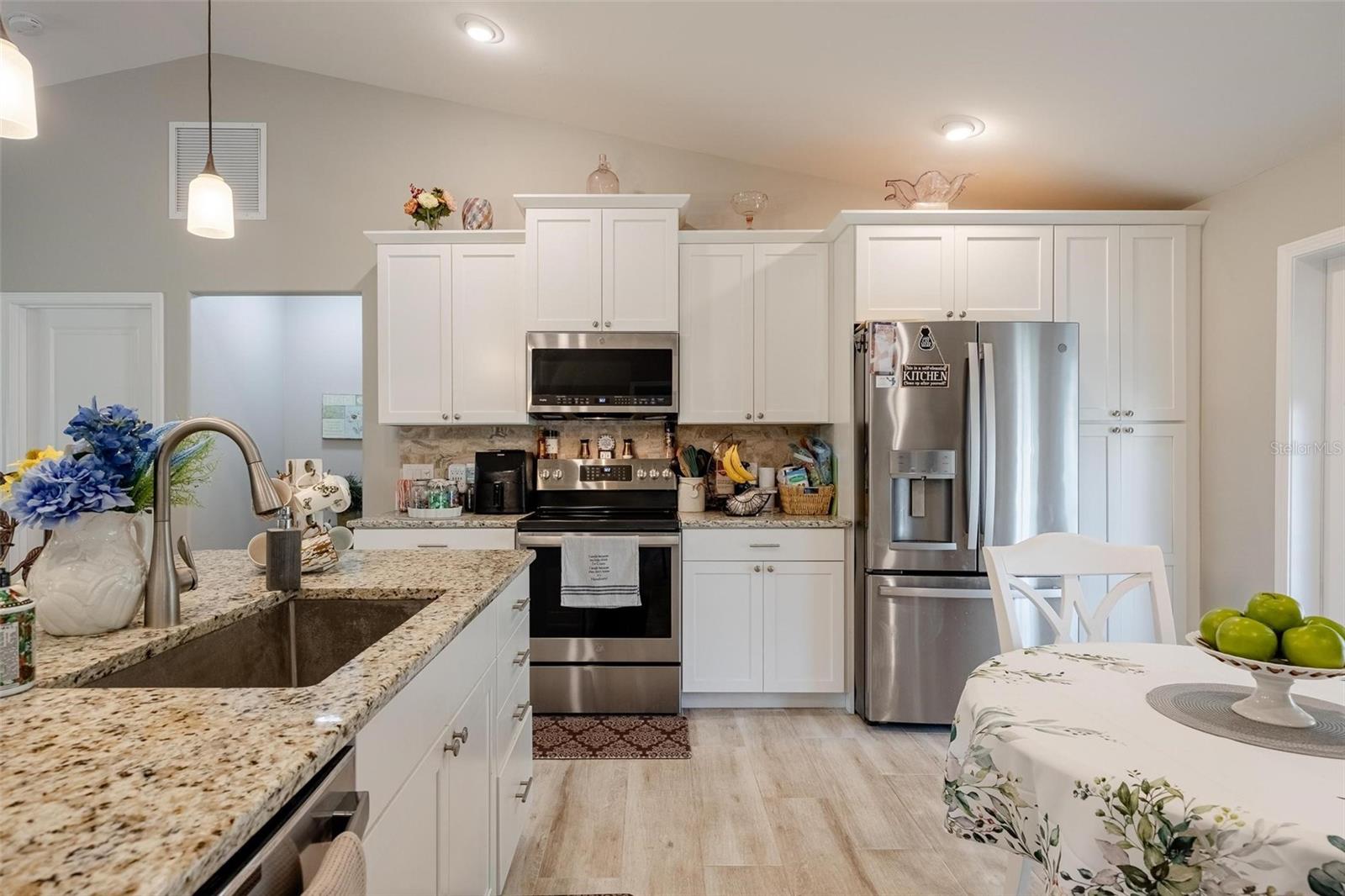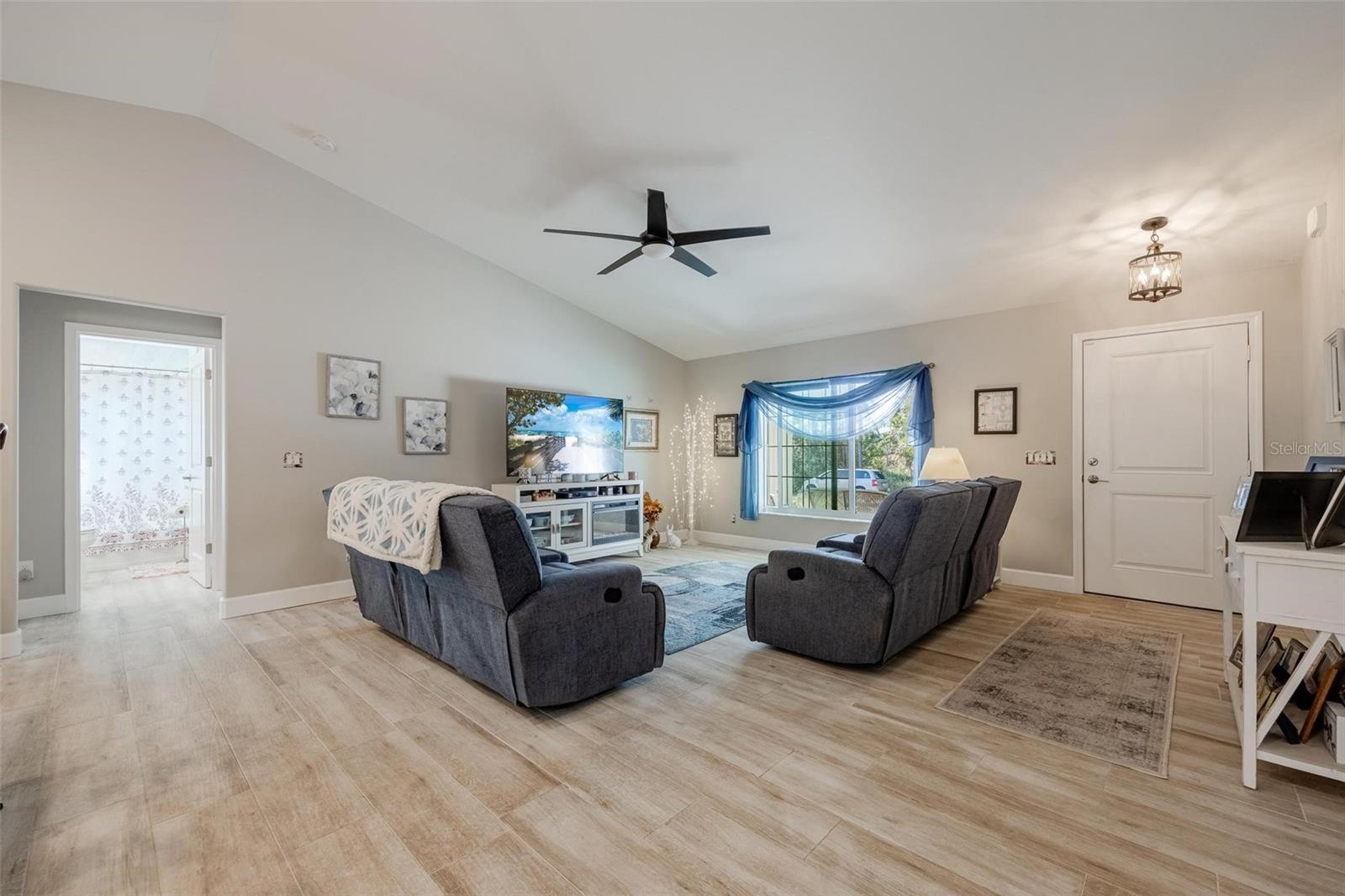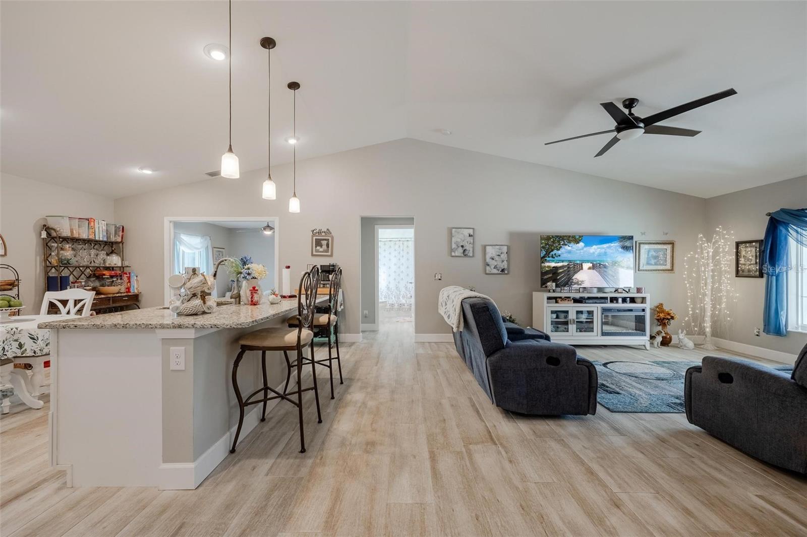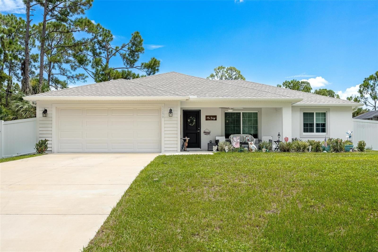 Why wait to have a home built when you can have this custom home built by one of the best builders in the area that is move in ready! Nestled along the tranquil banks of a freshwater canal, this stunning new construction home offers the perfect blend of modern luxury and serene waterfront living. The home was built with impact windows all around. As you step inside, you'll be greeted by a spacious and light-filled open floor plan, with custom finishes and thoughtful design touches throughout. The heart of the home is the spacious living area, seamlessly flowing into the kitchen with a large island for guests, complete with sleek stainless steel appliances, granite counter tops, and ample cabinet space, perfect for cooking and entertaining your guests. The guest bedroom adjacent to the kitchen has double pocket doors that can also be used as a dining room which will give you options through the years and makes the home very versatile! The master suite is a true retreat, boasting a generous layout, tiled throughout, and has an en-suite bathroom featuring dual vanities, and a custom shower. The garage has a higher ceiling than the average garage in SWFL for a larger truck or other vehicles. Outside you will have the luxury of waterfront living, with a private backyard oasis overlooking the serene freshwater canal. Imagine sipping your morning coffee on the covered patio, or hosting gatherings with loved ones amidst the picturesque backdrop of Florida's natural beauty. Located in one of the fastest growing cities in America! Residents will enjoy easy access to nearby amenities, including shopping, dining, parks, and top-rated schools. Whether you're seeking a peaceful retreat or a place to create lasting memories with family and friends, this exceptional home offers the ideal blend of luxury, comfort, and waterfront living. Schedule your showing today and experience the Florida lifestyle!