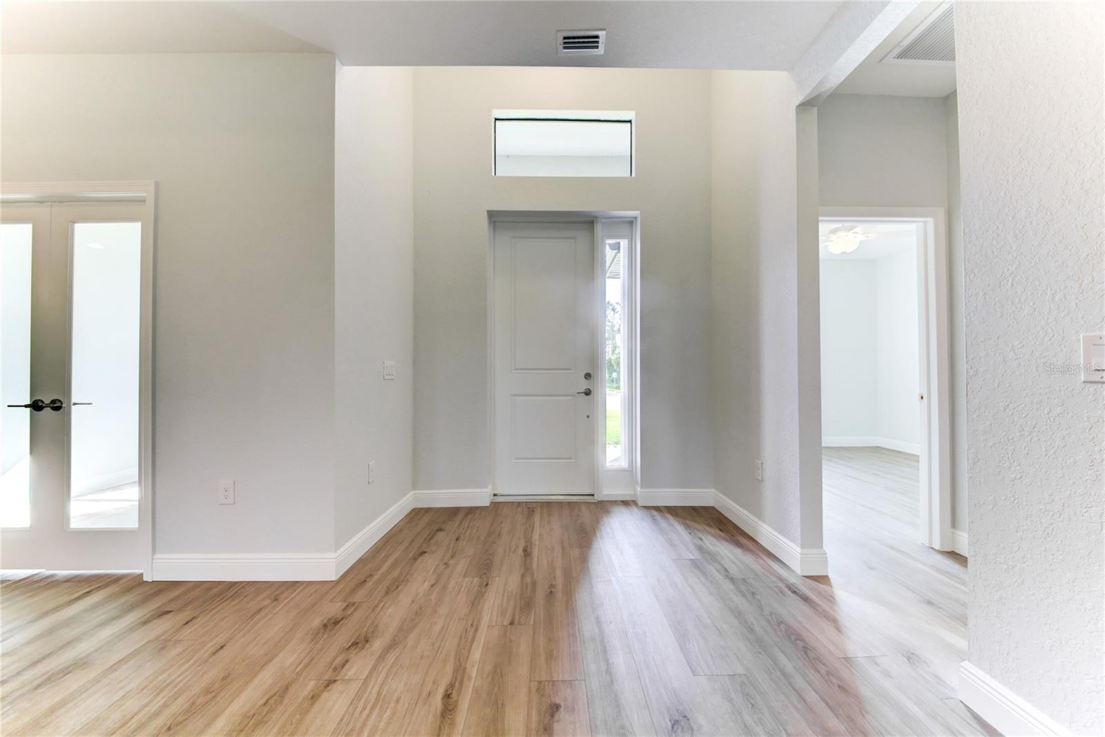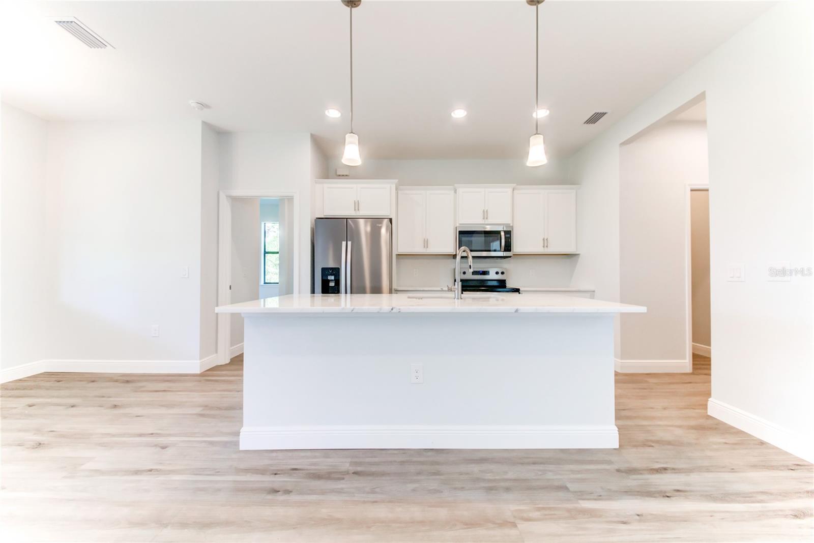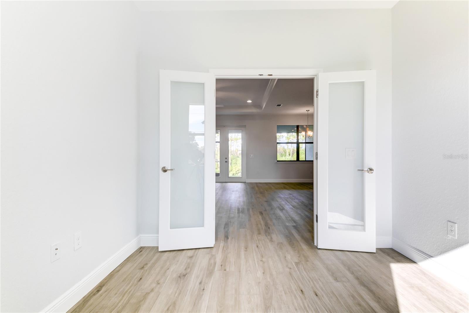 One or more photo(s) has been virtually staged. BRAND NEW and READY! This 3-bedroom, 2-bath home with a bonus den is located outside a flood zone and offers the perfect blend of comfort and style. The home features 9'4" ceilings throughout, with tray ceilings reaching up to 10'4" in both the great room and master suite, creating an open and elegant feel. The kitchen is designed for entertaining, boasting marble countertops, stainless steel appliances, soft-close cabinets, and a large pantry. Enjoy a spacious master suite with dual vanities, a fully tiled shower, and a huge walk-in closet. Step outside to the large screened lanai, which overlooks a peaceful canal and wooded preserve for ultimate privacy. The home also includes a 2-car garage with a 9-foot door, perfect for larger vehicles. For added peace of mind, this home comes with a 1-year full warranty and a 10-year structural warranty. Conveniently located near shopping, dining, schools, and just a short drive from golf courses and beaches.