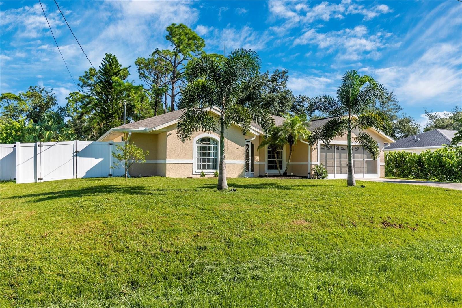Bright and Charming 3-Bedroom Home with Spacious Backyard Welcome to this delightful 1366 sq.ft. home situated on a generous 0.23-acre lot on the aptly named Sunburst Avenue. This property offers a perfect blend of comfort, style, and Florida charm, making it an ideal choice for families and individuals alike. Key Features: Spacious Backyard: Enjoy a level backyard adorned with a beautiful oak tree, new fencing, and a wooden back fence, providing both privacy and a serene outdoor space. Enjoy your morning cup of coffee while hearing the birds chirping. Florida Room: Relax in the lovely Florida room featuring new Spanish-style tiles, perfect for enjoying the Florida sunshine. Enjoy wonderful meals outside with loved ones and friends! Perfect for BBQs. Premium Flooring: The living room, dining room, entryway, guest bathroom, and two guest bedrooms boast brand new water-resistant flooring, adding both elegance and durability. Updated Guest Bathroom: The guest bathroom has been updated with premium flooring, a modern vanity, and a new toilet. State-of-the-Art Water System: This home is equipped with a whole house reverse osmosis system, ensuring the freshest and safest water for your family while protecting your appliances and showers from corrosion. Propane Gas Stove: The kitchen includes a propane gas stove, with a large, outside propane tank capable of adding lines for a gas grill and outdoor fire pit. The electric stove plug is still available in the kitchen for homeowners who prefer electric. Freshly Painted: The home has been freshly painted by the previous owners, giving it a clean and inviting look. Beautiful Landscaping: The front yard features beautiful fox tail palms and pitch apple bushes, creating a resort-like Florida feel. Interior Highlights: Bedrooms: 3 spacious bedrooms, perfect for family living or guest accommodations. Bathrooms: 2 bathrooms, including an updated guest bathroom with new flooring, vanity, and toilet. Living Spaces: A welcoming living room with premium flooring and French doors opening to the Florida room. Exterior Highlights: Yard: A large, level backyard with a stunning oak tree and new fencing. Perfect outdoor space for BBQs, gardening, and children to play! Parking & Two-Car Garage: The spacious driveway and two-car garage ensure that there is plenty of parking for family and friends. The garage also offers ample space for storage and tools. High-Quality Gutters: New gutters have been installed around the whole home which efficiently wash away water from the home during heavy rain, protecting the foundation and landscaping. Schools: Located near schools Amenities: Very close to Publix, Walmart, Circle K, Waffle House, Pink Tequila, and easy access to I-75 for commuting. Don't miss the opportunity to make this bright and charming home on Sunburst Avenue yours! Schedule a viewing today or contact us for more information.