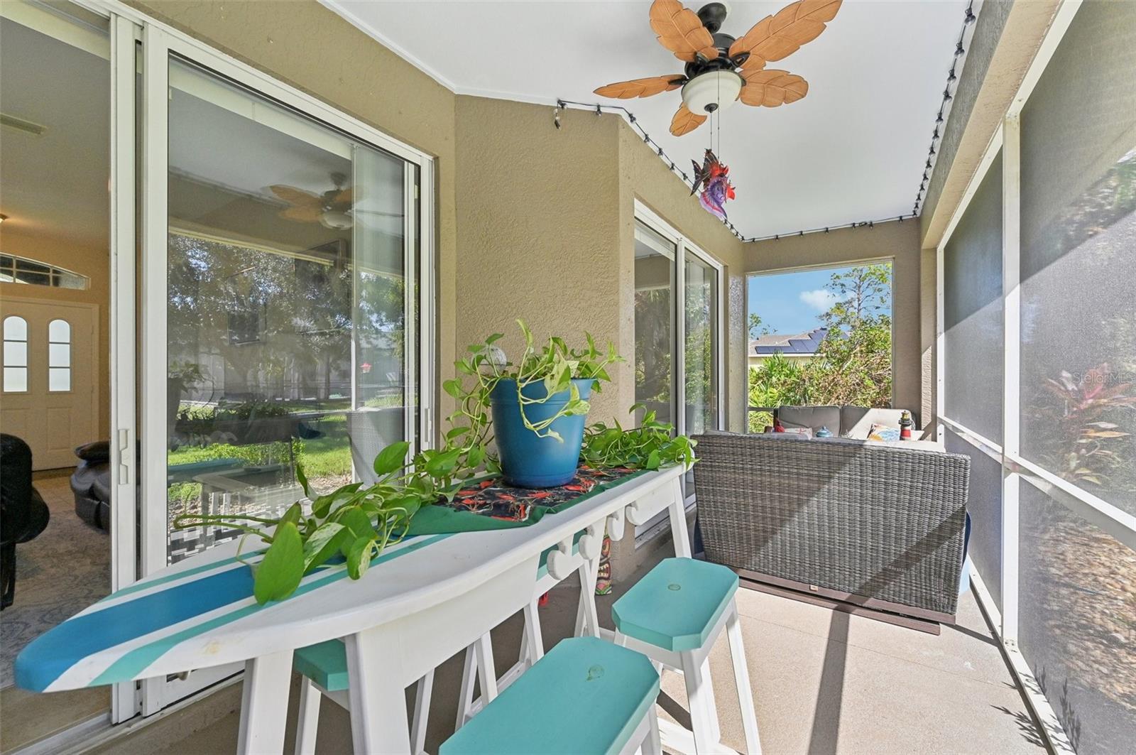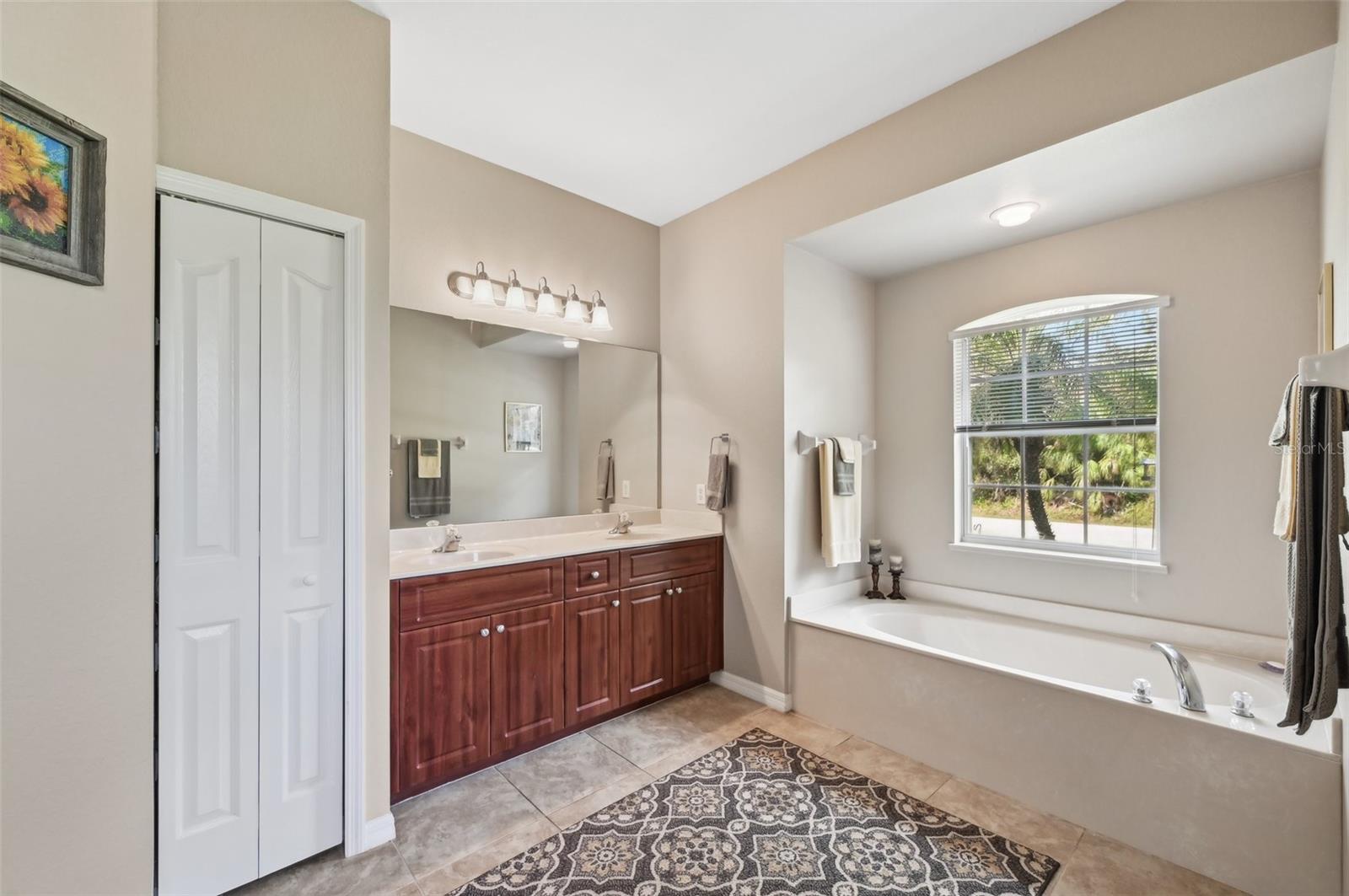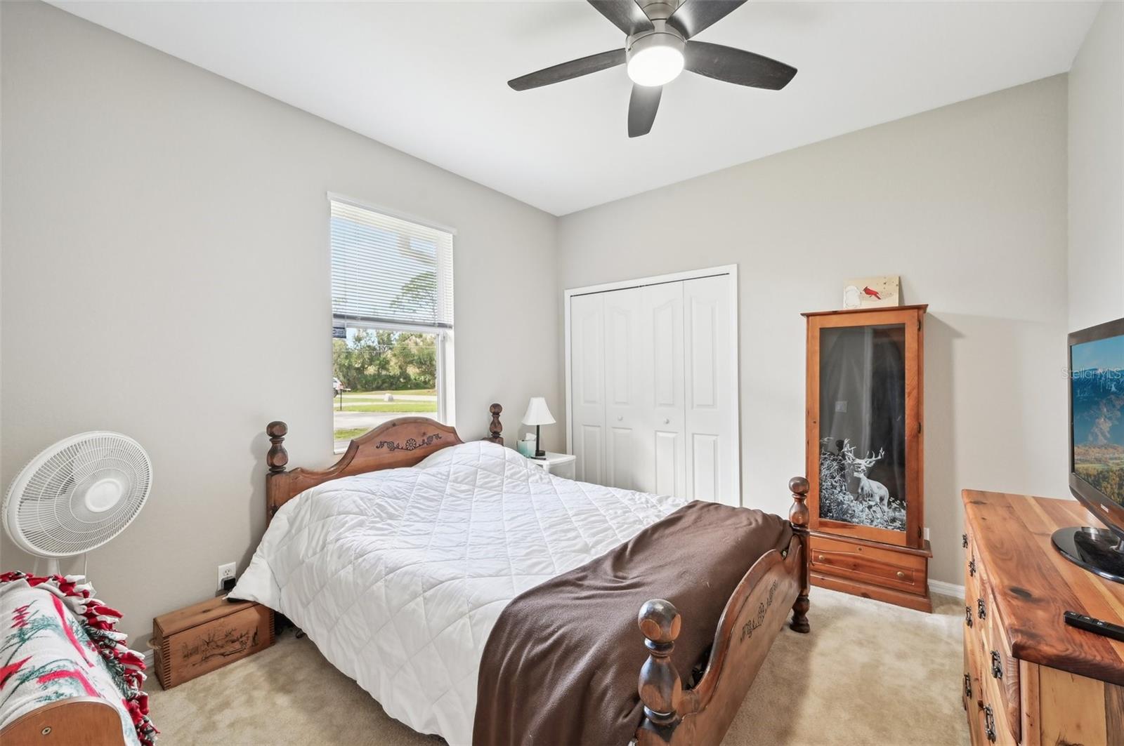 This charming 3-bedroom, 2-bath home, built in 2006, offers over 1,800 sq. ft. of comfortable living space with a 2-car garage. The interior boasts ceramic tile flooring throughout the main areas, with plush carpet in the bedrooms. At the front of the house, you'll find a formal living room and dining room, perfect for hosting guests. The spacious kitchen features white cabinetry, stainless steel appliances, a stainless sink, and a large breakfast bar. The home has a split bedroom floorplan for added privacy. The large primary bedroom includes two walk-in closets with built-in shelving, and sliding doors leading to the patio, offering a beautiful view of the private backyard. The primary bath is a luxurious retreat with a garden tub, walk-in shower, and dual sink vanity, along with decorative tile in the shower. The two guest bedrooms are spacious, each with large closets and ceiling fans. The guest bathroom offers a tub/shower combination. Recent upgrades include a new roof and gutters in 2024, new appliances in 2024, and a new water heater installed in 2023. The home also features an inside utility room with built-in cabinetry, a water chlorinator system, and professional landscaping with a sprinkler system. Conveniently located just minutes from I-75, this home offers easy access for commuters, with shopping, schools, and dining just a short drive away. Plus, the sandy white beaches are only 20 minutes from this ideal location!