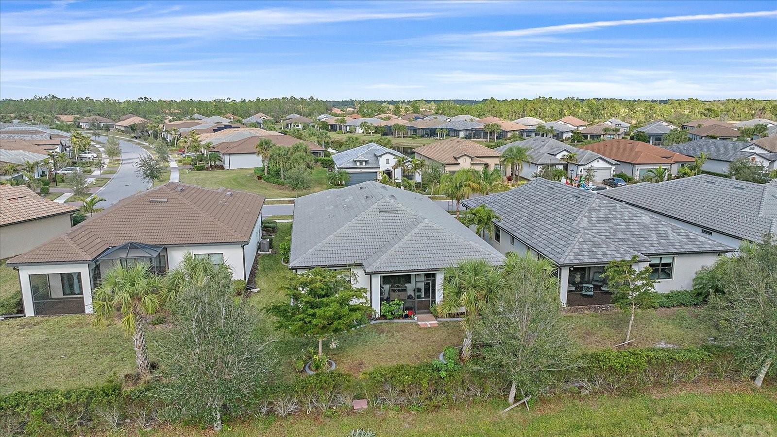 This home has an assumable VA loan at 2.875%. The buyer does NOT have to be a veteran to assume the loan. Welcome to 1724 Hyssop Loop, a like-new, single-family home in the desirable Cypress Falls community. Built in 2021, this Summerwood floorplan offers 1,947 square feet of beautifully designed living space, featuring 2 bedrooms, a versatile den, 2 full bathrooms and a 2 car garage. The modern kitchen features light cabinetry with modern gold hardware and quartz countertops with a spacious island that provides extra seating. You’ll have plenty of space for stock and staple items in the generously sized kitchen pantry. The primary suite features an ensuite bath with dual sinks, glass shower enclosure, granite countertops and an oversized closet. In the living room you’ll find transom windows that provide natural light while preserving your privacy. A triple sliding glass door leads to the oversized, screened lanai with water views, perfect for outdoor entertaining or relaxing in the Florida sunshine. At the end of the day, enjoy the convenience of remote shades that lower at the touch of a button. Modern ceramic tile throughout the house makes upkeep a breeze. The durable tile roof adds to the home's aesthetic appeal and longevity, while the irrigation system ensures a lush, well-maintained landscape year-round. The home has welcoming curb appeal, has never flooded, and sustained no damage from recent hurricanes, a testament to the home’s strength and elevation. A few extra features include Sonos speakers in the living room, extra shelving in the garage, and a garage door screen. Cypress Falls is an exclusive 55+ active adult, gated community that offers a resort-style living experience. As a resident, you'll enjoy access to a wide array of amenities including a resort-style pool and resistance pool, hot tub, pickleball and tennis courts, bocce ball, horseshoe pits, a state-of-the-art fitness center, billiards room, and a library all included in your HOA fees. The community also boasts an active social calendar filled with numerous events and activities for making new friends. The Gulf Coast beaches are within reach, providing opportunities for sun, sand, and water activities.