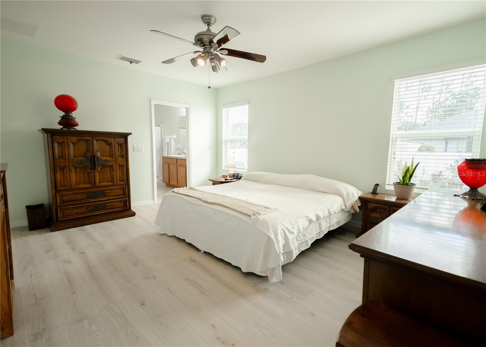 Move-In Ready Home with Upgrades & Spacious Living! This beautifully maintained 3-bedroom, 2-bath home boasts a brand-new roof, fresh interior and exterior paint, and expanded parking—perfectly designed to accommodate a camper, RV, or large boat! Step inside to discover a spacious, open-concept floor plan featuring thoughtful storage solutions throughout. The bright and airy living area is enhanced by a charming built-in entertainment center and offers flexible layout options—whether you prefer a combined living and dining space or a large, open living room, ideal for entertaining. The well-appointed kitchen includes a pantry with ample shelving, generous cabinet space, and a sunlit eat-in area large enough for a full-size table, complete with a custom bench seat nestled in the bay window. The split floor plan ensures privacy for the primary suite, which serves as a relaxing retreat with dual sinks, a spacious shower, a private toilet closet, and a linen closet. Recent updates include new vinyl flooring in the primary bedroom. Although this home was built in 2018, the sellers upgraded to a new roof just a year ago! The large, fenced-in backyard offers a private oasis with papaya, banana, and loquat trees, bringing a tropical touch to your outdoor space. Enjoy grilling and unwinding on the covered patio with plenty of room to relax. Located in a quiet, friendly neighborhood, this energy-efficient home is a fantastic opportunity you won’t want to miss! Schedule your showing today!