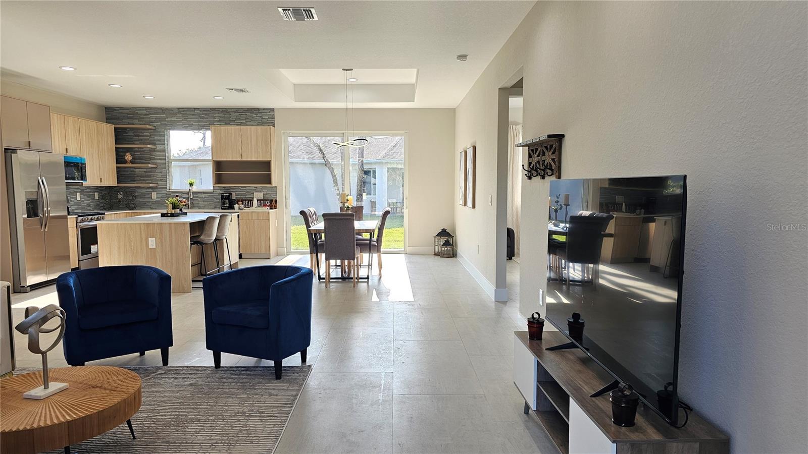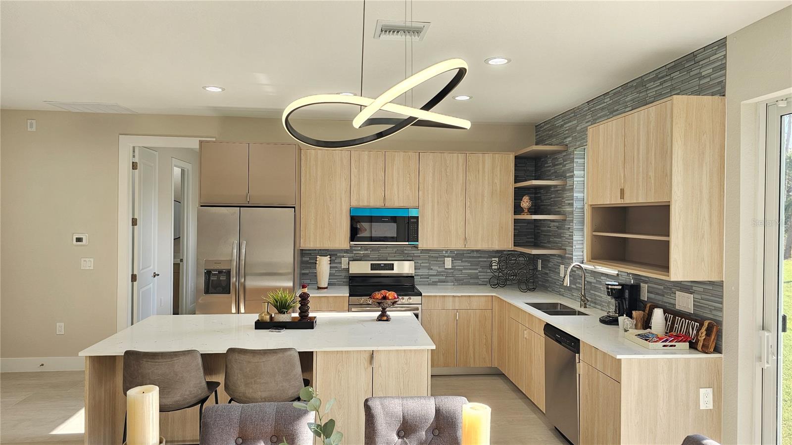 Welcome to your dream home! This exquisite, newly built single-family residence offers 3 generously sized bedrooms and 2 beautifully designed bathrooms, perfectly combining modern comfort with timeless style. Upon entering, you’ll be welcomed by an abundance of natural light pouring in through hurricane-impact windows, which also provide exceptional protection. The main living areas feature elegant luxury tile flooring, creating a warm and inviting atmosphere. At the heart of the home, you’ll find a contemporary kitchen equipped with sleek stainless steel appliances and a spacious island, ideal for hosting and entertaining guests. The master suite serves as a private retreat, complete with an ensuite bathroom and a walk-in closet. The additional two bedrooms are equally inviting, each offering ample closet space. The second bathroom is thoughtfully designed with a single vanity and a convenient shower/tub combination. Outside, you can unwind in the expansive backyard or enjoy the serenity of a covered walkout lanai—perfect for hosting gatherings or enjoying peaceful evenings under the stars. Don’t miss the chance to see this incredible home in person—schedule your showing today!