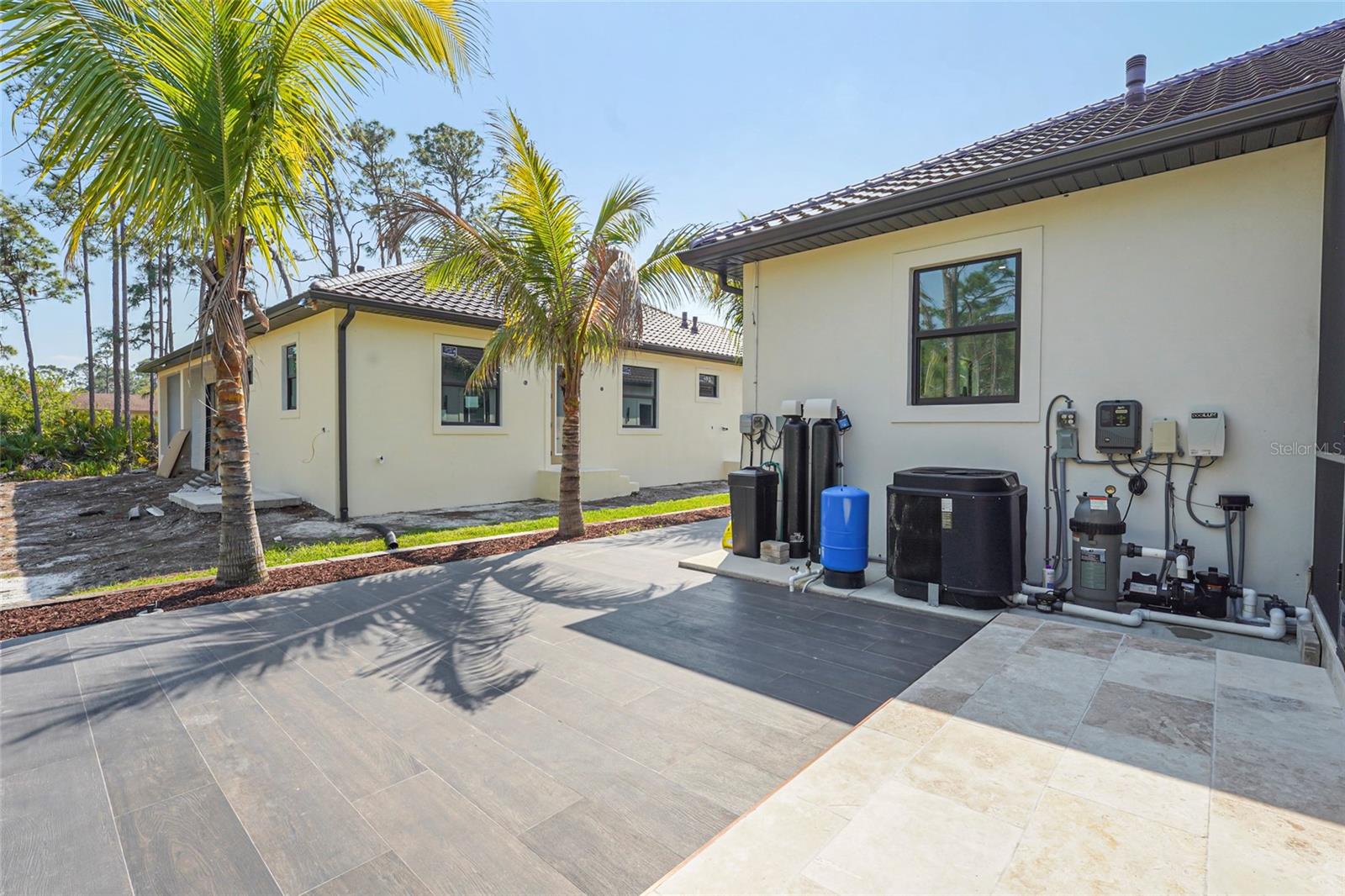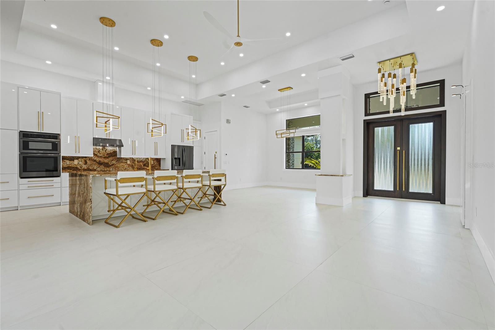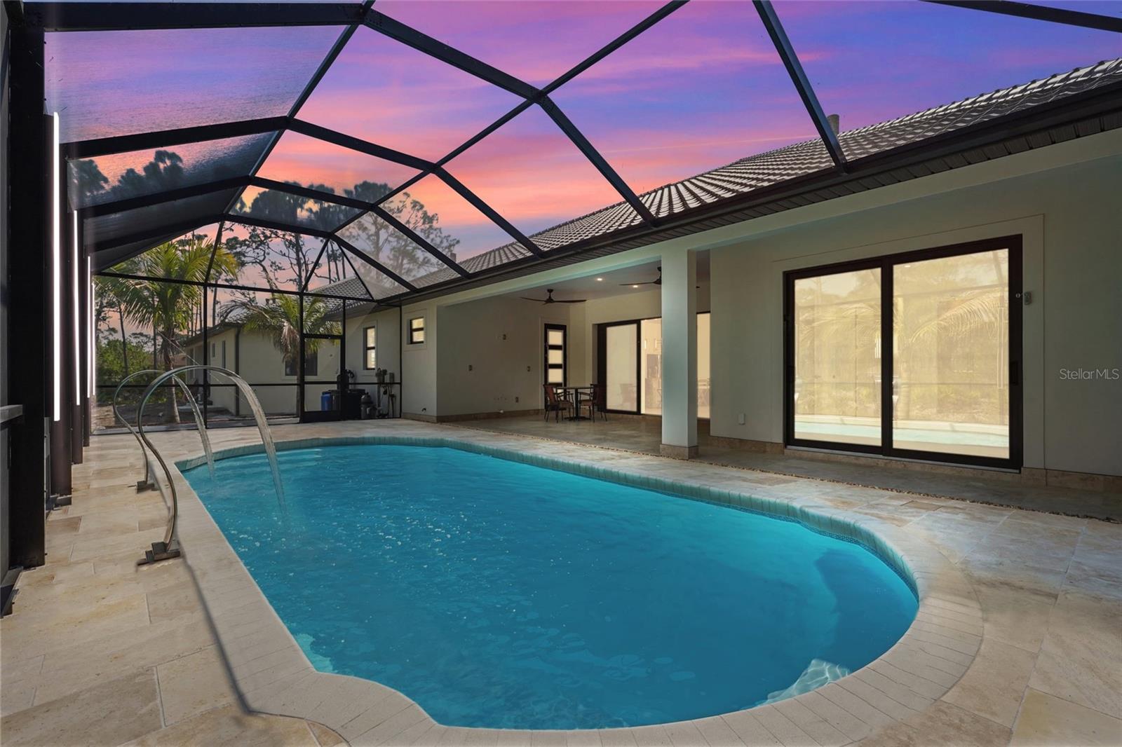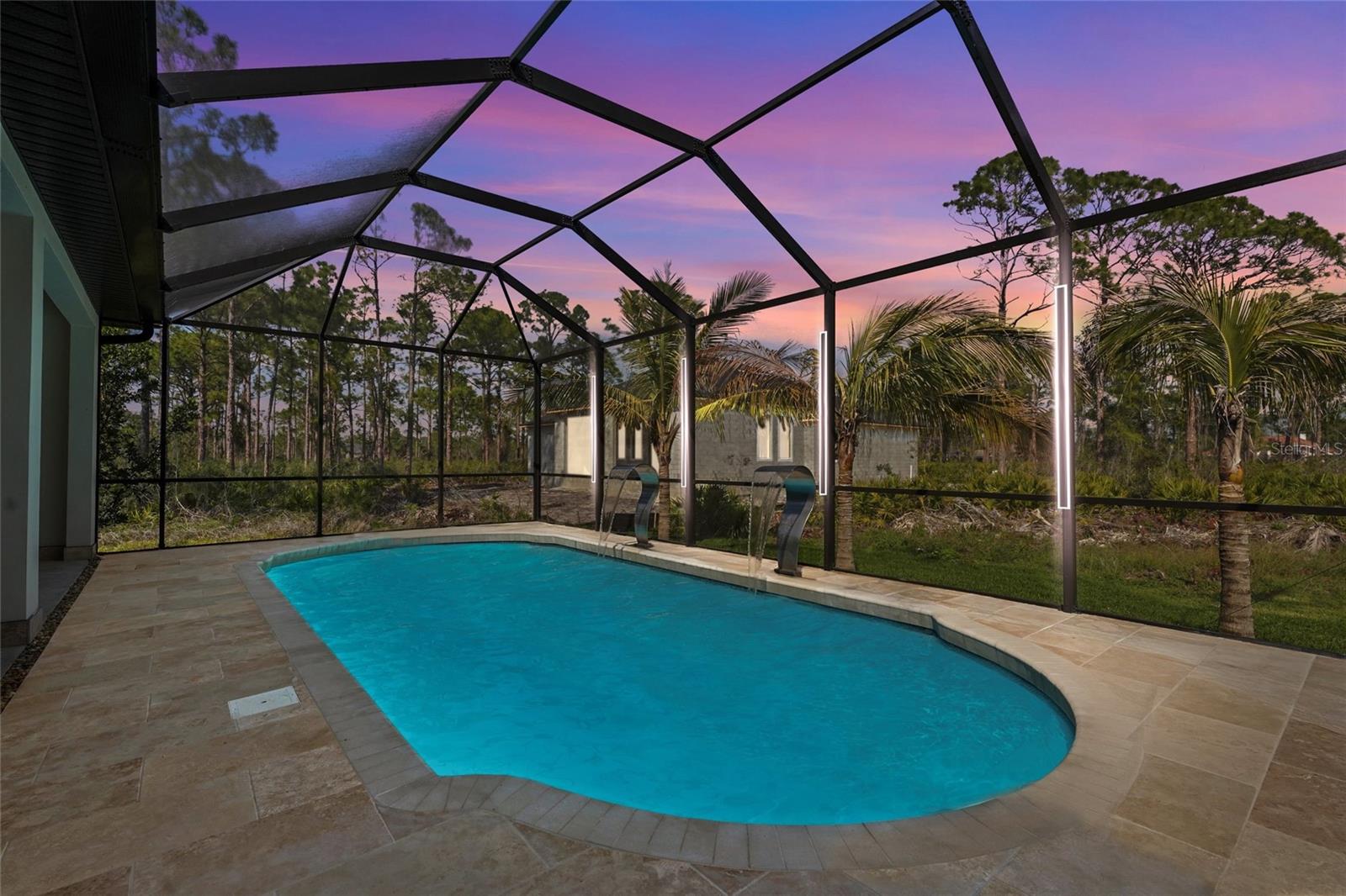 Under contract-accepting backup offers. Welcome to 115 Solana, a brand-new CUSTOM-BUILT home that seamlessly blends contemporary elegance with high-end craftsmanship. This stunning residence is just 3.5 miles from Wellen Park and the Atlanta Braves Training Stadium, offering an unparalleled lifestyle in a prime location. From the moment you arrive, the striking curb appeal captivates with a concrete driveway accented with paver bricks, lush landscaping, and a welcoming open front porch leading to the grand double-door entrance. Inside, soaring ceilings, 48-inch floor tiles, and an abundance of natural light set the stage for a elegant yet comfortable living experience. The kitchen is a true masterpiece, featuring Brazilian natural stone countertops and backsplash, sleek 61-inch high-gloss cabinetry with soft-close functionality, and an expansive island with additional cabinetry on both sides. A stunning accent wall houses a flat-screen TV, a BOSE sound bar, and an electric fireplace, creating a warm and inviting atmosphere. The high-end appliance package includes a cooktop, a separate oven, and a convection oven/microwave combo, perfect for culinary enthusiasts. The primary suite is a luxurious retreat with sliding doors leading to the pool, a custom closet with built-in organizers, and a spa-like en-suite bathroom wrapped in polished porcelain tile from floor to ceiling. Throughout the home, gold accents elevate the design, from cabinet handles and lighting fixtures to contemporary, soft-close, water-saving toilets. Each of the four bathrooms is meticulously designed, including a guest bathroom enhanced with stunning 3D porcelain tile. A rare highlight of this home is the private in-law suite, complete with a separate entrance, full kitchen (minus stove), bedroom, and a custom closet with built-in organizers. The suite’s private bathroom is fully tiled from floor to ceiling, and the laundry closet is prepped for a stackable washer and dryer. Just outside, an additional open patio provides a peaceful outdoor retreat. Step outside to your private oasis featuring a heated saltwater pool with dual fountains, all set beneath a beautifully illuminated screened enclosure that enhances the ambiance in the evening. The home is equipped with a whole-house water filtration system and reverse osmosis at every sink, ensuring the highest quality water. Energy efficiency is prioritized with foam insulation in the attic and garage, while the Miami-Dade rated Metal Barrel Tile Roof offers durability with a 50-year lifespan. This meticulously designed home offers a rare combination of elegance, functionality, and modern convenience. Plus, NO HOA and NO CDD. Schedule your private tour today and experience luxury living at its finest. **The builder is in the process of adding an OUTDOOR KITCHEN. ** Click the link for a 3D Matterport Tour of the home.