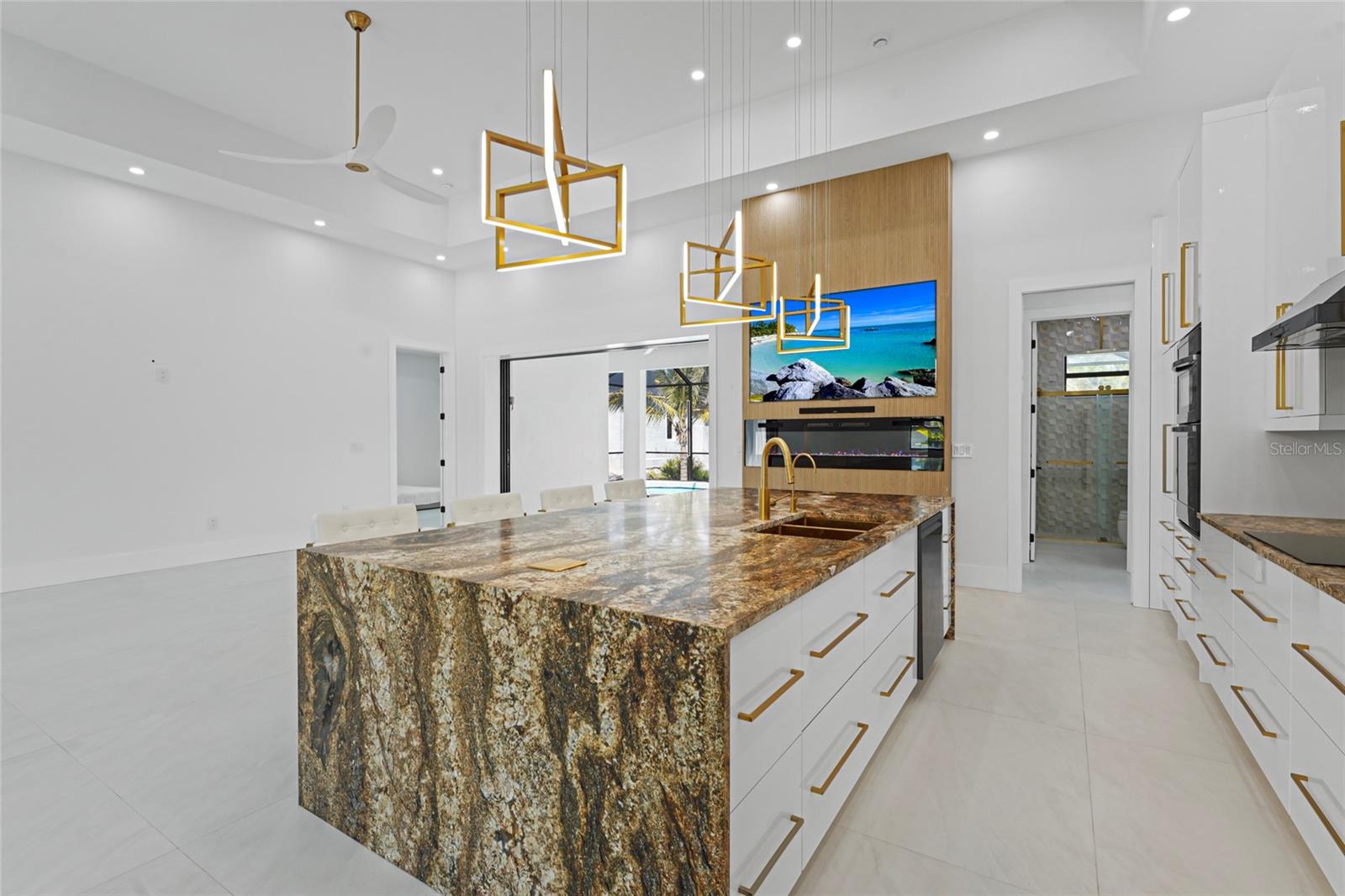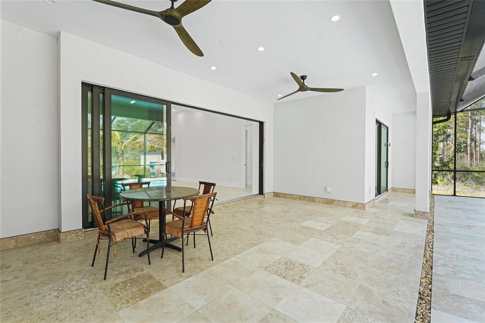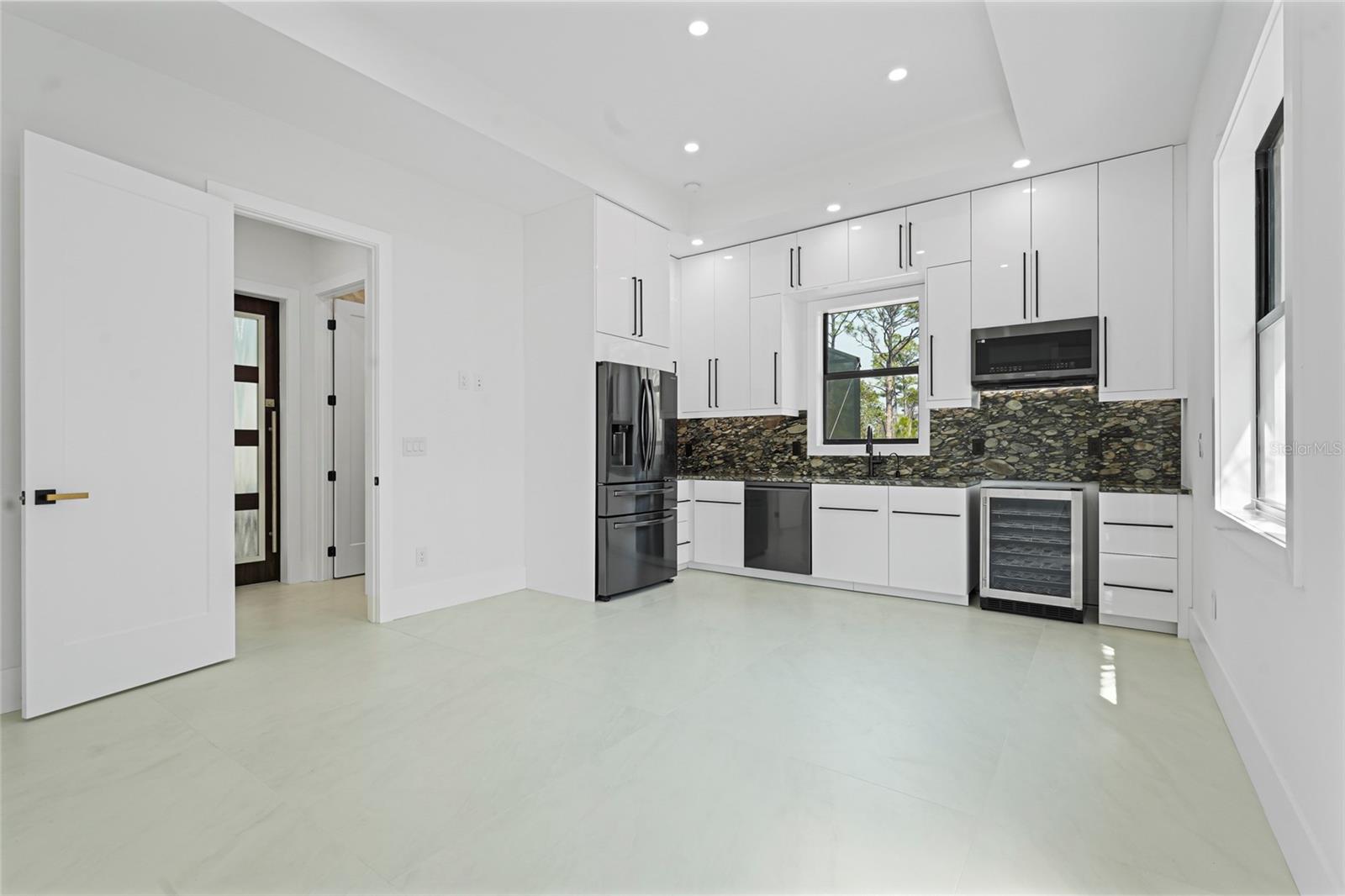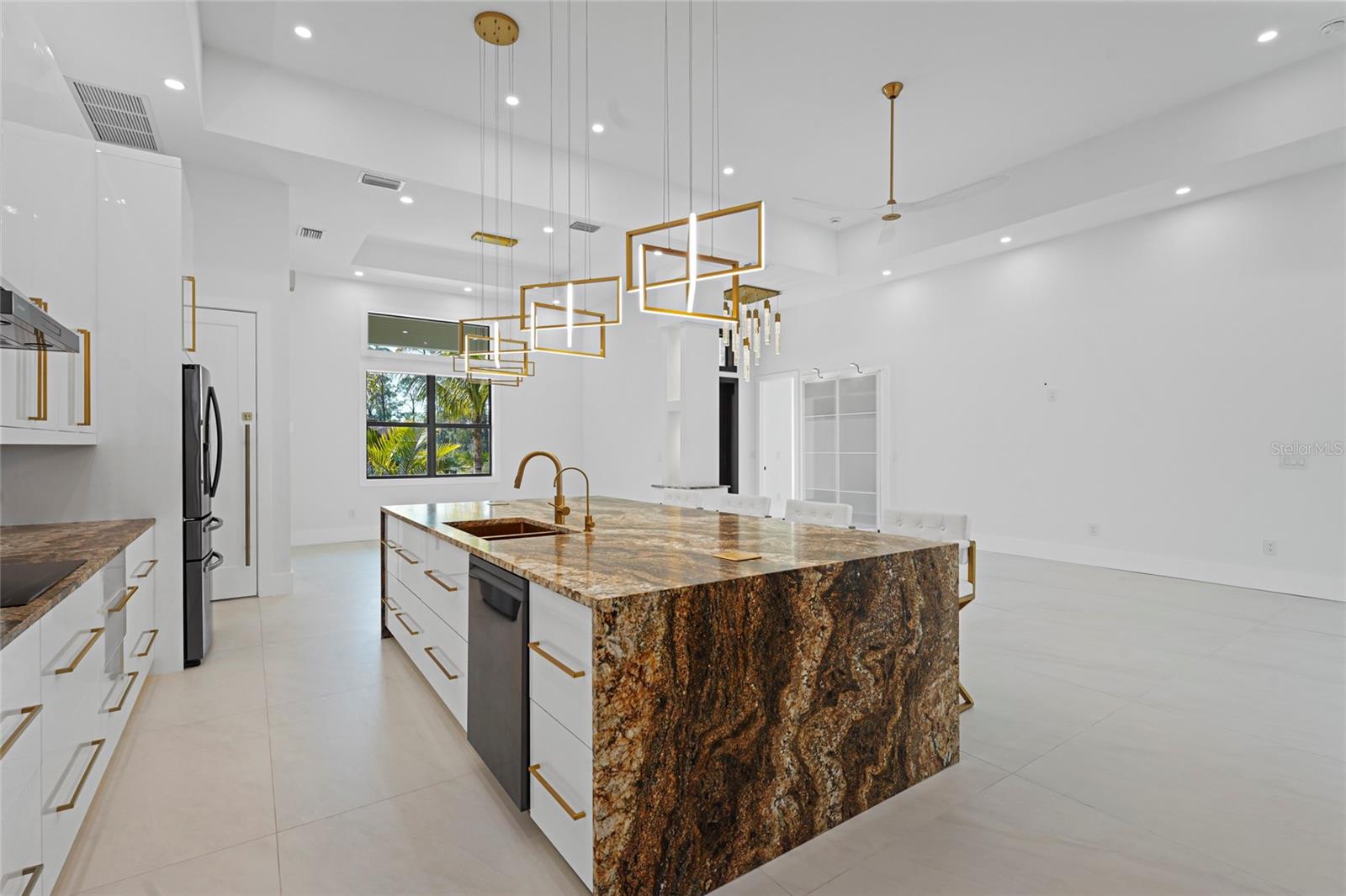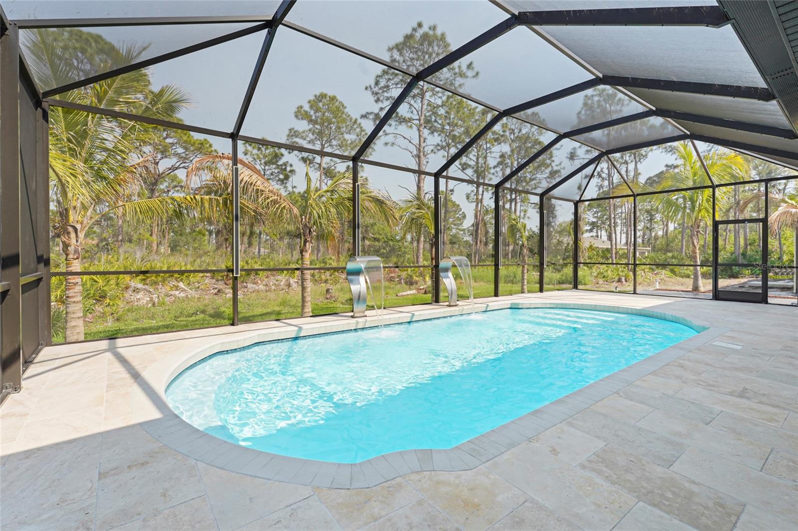 Under contract-accepting backup offers. Welcome to 115 Solana, a brand-new CUSTOM-BUILT home that seamlessly blends contemporary elegance with high-end craftsmanship. This stunning residence is just 3.5 miles from Wellen Park and the Atlanta Braves Training Stadium, offering an unparalleled lifestyle in a prime location. From the moment you arrive, the striking curb appeal captivates with a concrete driveway accented with paver bricks, lush landscaping, and a welcoming open front porch leading to the grand double-door entrance. Inside, soaring ceilings, 48-inch floor tiles, and an abundance of natural light set the stage for a elegant yet comfortable living experience. The kitchen is a true masterpiece, featuring Brazilian natural stone countertops and backsplash, sleek 61-inch high-gloss cabinetry with soft-close functionality, and an expansive island with additional cabinetry on both sides. A stunning accent wall houses a flat-screen TV, a BOSE sound bar, and an electric fireplace, creating a warm and inviting atmosphere. The high-end appliance package includes a cooktop, a separate oven, and a convection oven/microwave combo, perfect for culinary enthusiasts. The primary suite is a luxurious retreat with sliding doors leading to the pool, a custom closet with built-in organizers, and a spa-like en-suite bathroom wrapped in polished porcelain tile from floor to ceiling. Throughout the home, gold accents elevate the design, from cabinet handles and lighting fixtures to contemporary, soft-close, water-saving toilets. Each of the four bathrooms is meticulously designed, including a guest bathroom enhanced with stunning 3D porcelain tile. A rare highlight of this home is the private in-law suite, complete with a separate entrance, full kitchen (minus stove), bedroom, and a custom closet with built-in organizers. The suite’s private bathroom is fully tiled from floor to ceiling, and the laundry closet is prepped for a stackable washer and dryer. Just outside, an additional open patio provides a peaceful outdoor retreat. Step outside to your private oasis featuring a heated saltwater pool with dual fountains, all set beneath a beautifully illuminated screened enclosure that enhances the ambiance in the evening. The home is equipped with a whole-house water filtration system and reverse osmosis at every sink, ensuring the highest quality water. Energy efficiency is prioritized with foam insulation in the attic and garage, while the Miami-Dade rated Metal Barrel Tile Roof offers durability with a 50-year lifespan. This meticulously designed home offers a rare combination of elegance, functionality, and modern convenience. Plus, NO HOA and NO CDD. Schedule your private tour today and experience luxury living at its finest. **The builder is in the process of adding an OUTDOOR KITCHEN. ** Click the link for a 3D Matterport Tour of the home.