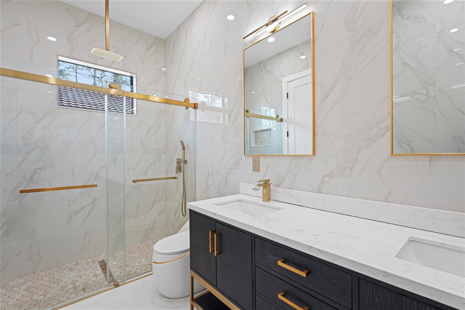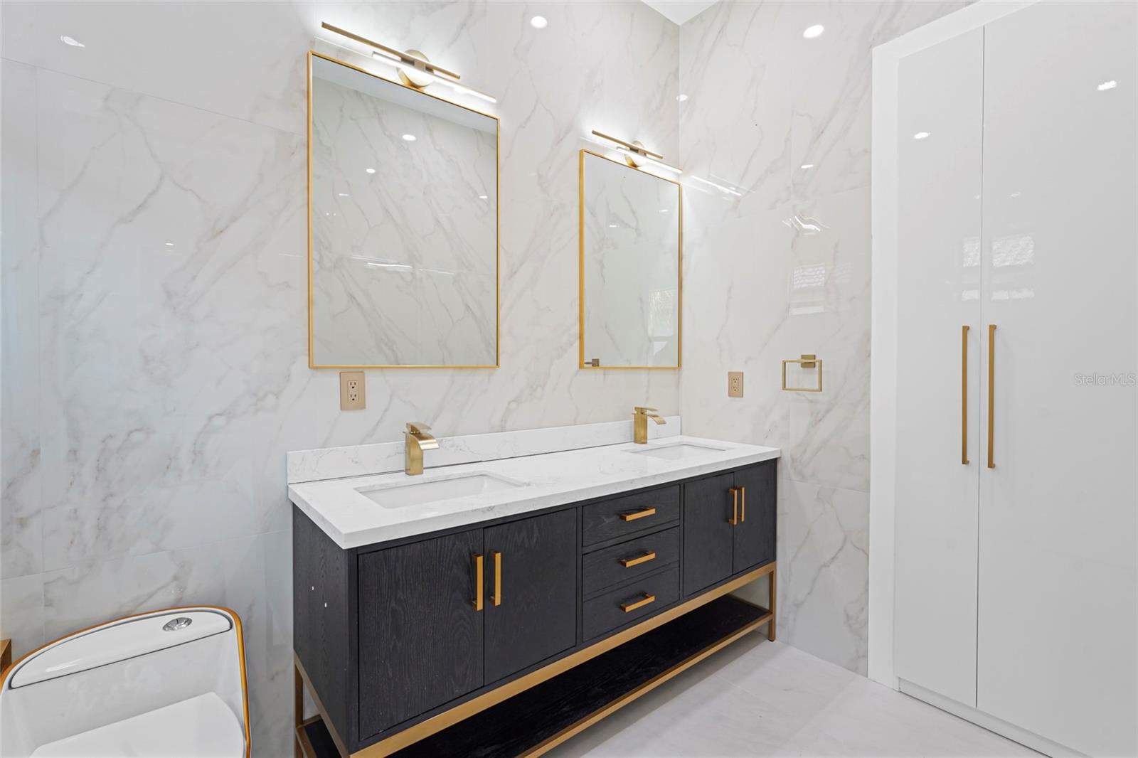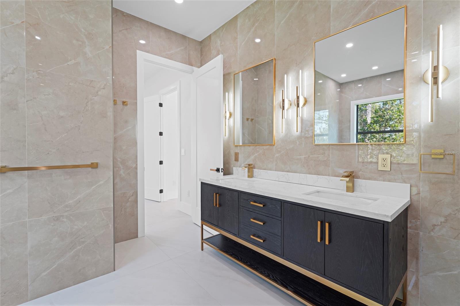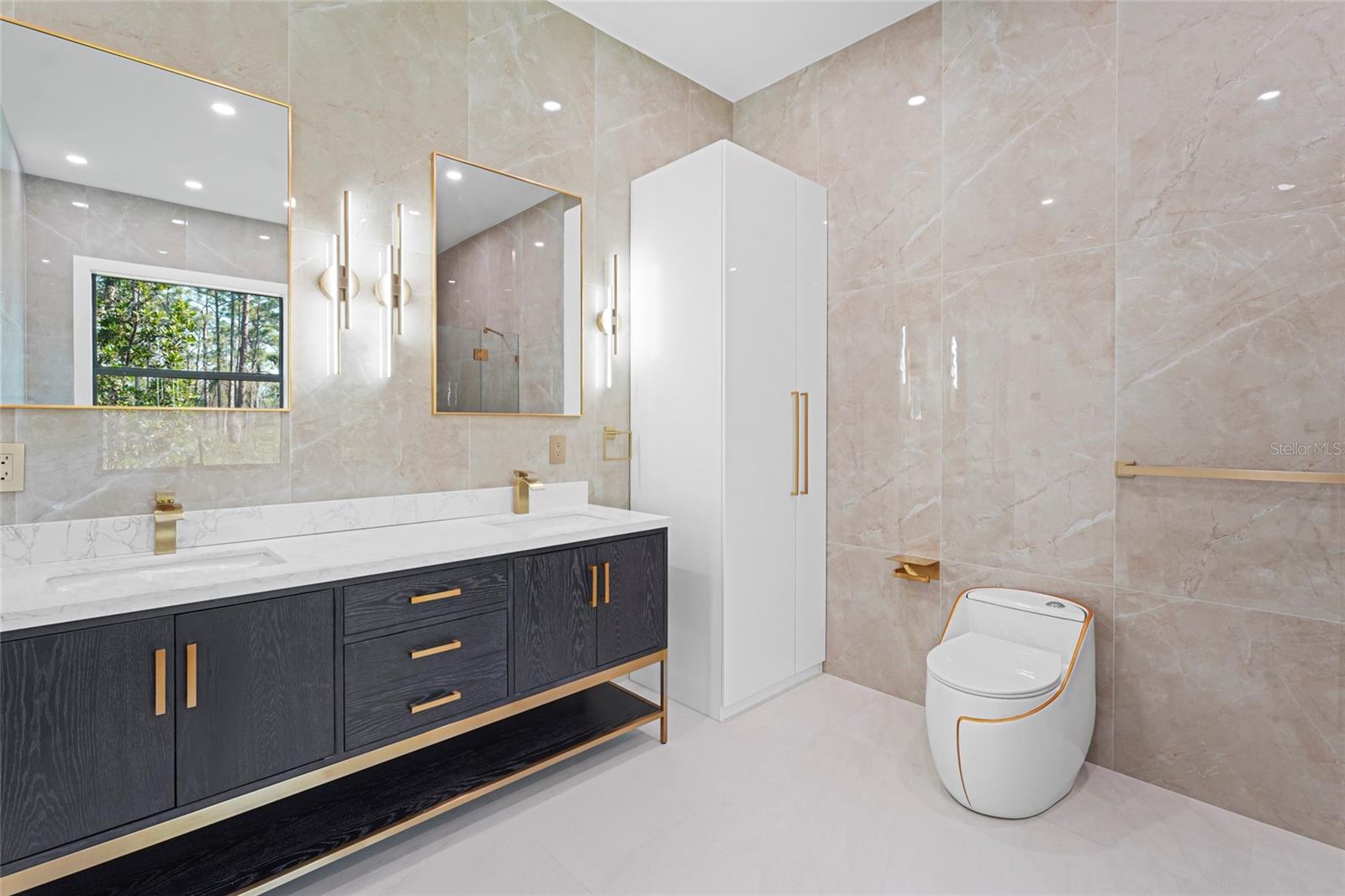 Under contract-accepting backup offers. Welcome to 115 Solana, a brand-new CUSTOM-BUILT home that seamlessly blends contemporary elegance with high-end craftsmanship. This stunning residence is just 3.5 miles from Wellen Park and the Atlanta Braves Training Stadium, offering an unparalleled lifestyle in a prime location. From the moment you arrive, the striking curb appeal captivates with a concrete driveway accented with paver bricks, lush landscaping, and a welcoming open front porch leading to the grand double-door entrance. Inside, soaring ceilings, 48-inch floor tiles, and an abundance of natural light set the stage for a elegant yet comfortable living experience. The kitchen is a true masterpiece, featuring Brazilian natural stone countertops and backsplash, sleek 61-inch high-gloss cabinetry with soft-close functionality, and an expansive island with additional cabinetry on both sides. A stunning accent wall houses a flat-screen TV, a BOSE sound bar, and an electric fireplace, creating a warm and inviting atmosphere. The high-end appliance package includes a cooktop, a separate oven, and a convection oven/microwave combo, perfect for culinary enthusiasts. The primary suite is a luxurious retreat with sliding doors leading to the pool, a custom closet with built-in organizers, and a spa-like en-suite bathroom wrapped in polished porcelain tile from floor to ceiling. Throughout the home, gold accents elevate the design, from cabinet handles and lighting fixtures to contemporary, soft-close, water-saving toilets. Each of the four bathrooms is meticulously designed, including a guest bathroom enhanced with stunning 3D porcelain tile. A rare highlight of this home is the private in-law suite, complete with a separate entrance, full kitchen (minus stove), bedroom, and a custom closet with built-in organizers. The suite’s private bathroom is fully tiled from floor to ceiling, and the laundry closet is prepped for a stackable washer and dryer. Just outside, an additional open patio provides a peaceful outdoor retreat. Step outside to your private oasis featuring a heated saltwater pool with dual fountains, all set beneath a beautifully illuminated screened enclosure that enhances the ambiance in the evening. The home is equipped with a whole-house water filtration system and reverse osmosis at every sink, ensuring the highest quality water. Energy efficiency is prioritized with foam insulation in the attic and garage, while the Miami-Dade rated Metal Barrel Tile Roof offers durability with a 50-year lifespan. This meticulously designed home offers a rare combination of elegance, functionality, and modern convenience. Plus, NO HOA and NO CDD. Schedule your private tour today and experience luxury living at its finest. **The builder is in the process of adding an OUTDOOR KITCHEN. ** Click the link for a 3D Matterport Tour of the home.