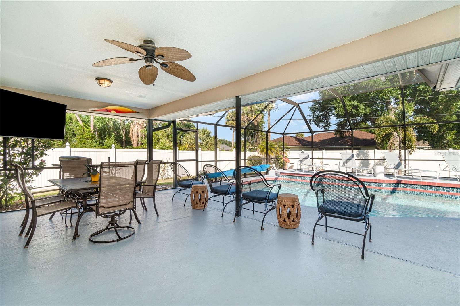 Under contract-accepting backup offers. Welcome to this lovely home that has been well maintained with three spacious bedrooms and two well-appointed bathrooms, making it an ideal family home. The vaulted ceiling creates a sense of spaciousness and the open updated kitchen showcasing modern appliances, sleek countertops, and ample cabinetry—perfect for culinary enthusiasts. The floors have been upgraded to a stylish finish that complement the overall aesthetic of the home. This beautifully furnished home also has the option of being Turnkey furnished which makes it really move in ready. The large screened in lanai would be a great spot to host family and friends, enjoy outdoor dining, BBQ's, watching your favorite sports, sunbathing and your private heated pool is waiting! The backyard is fenced - great for your family and furry friends! No deed restrictions, HOA fees and not in a flood zone. The great location of this home allows access to the Coco Plum Shopping center, golfing, and restaurants. Close proximity to the beautiful Gulf Beaches including Boca Grande & Englewood. Also nearby, Charlotte Harbor and the Gulf of Mexico where fishing is plentiful! Love Baseball? Charlotte Sports Park, home of the Tampa Bay Rays baseball spring training and the BRAND NEW Wellen Park area where you can watch an Atlanta Braves spring training baseball game, shop, dine out or enjoy a Sunday at the Farmers Market are just a short drive! US-41 and Interstate 75 allow you quick access to the North or South. Include this home on your "Must See List" and start packing!