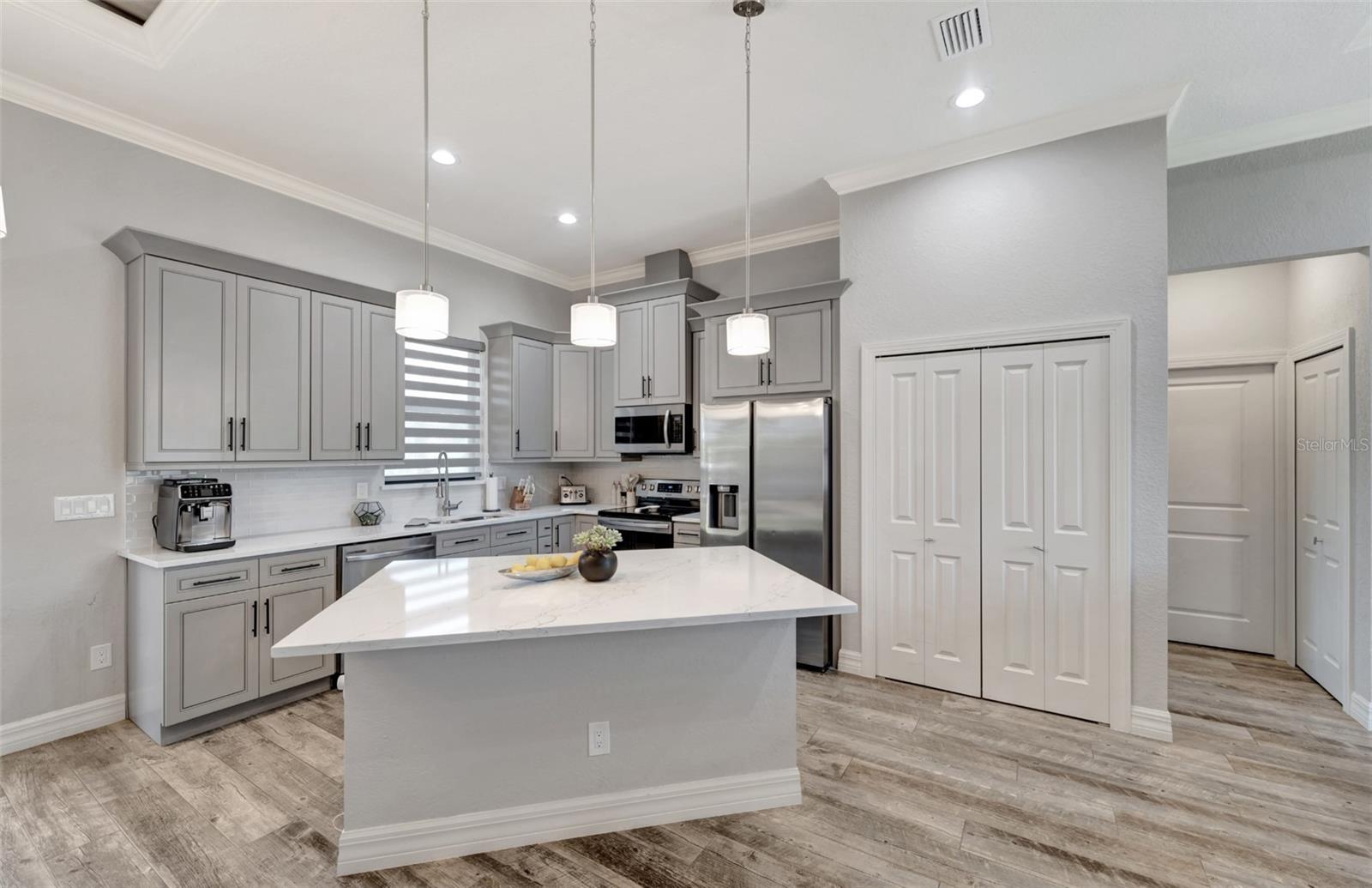Seller is offering assistance with closing costs! No HOA and no deed restrictions! Welcome to this nearly new custom-built home, thoughtfully crafted with high-end finishes and upgrades throughout. From elegant lighting fixtures to custom baseboards and crown molding, no detail was overlooked. Beautiful inside and out, with plenty of space to add a pool and create your own backyard oasis. Step inside to find durable porcelain tile flooring throughout, a spacious open-concept kitchen featuring solid wood cabinetry and stunning quartz countertops — perfect for entertaining. The home also includes an electric car charger for added convenience. Centrally located near top-rated elementary, middle, and high schools, and just minutes from Warm Mineral Springs, Walmart, Starbucks, Lowe’s, the YMCA, and the Waterpark. Whether you're starting a family or settling down, this home offers comfort, style, and endless possibilities. Welcome home!