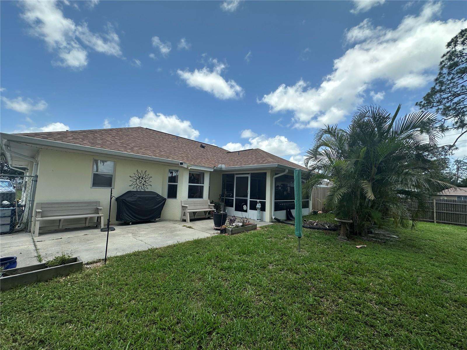 Welcome to this impeccable 2 bedrooms with 2 full bath home with TILE FLOORING throughout. Located in central North Port with convenience for shopping, and main roads. HUGE double wide driveway to fit your vehicle and recreation toys! Convenience of 2-ensuites. Vaulted ceilings. Enjoy your screened lanai and fenced in beautiful private yard while sipping your favorite beverage. LOCATION, LOCATION, LOCATION. Meticulously maintained with 2023 ROOF with a 1/2" thick membrane - 11yr warranty and NEWER HVAC system with 4yr transferable warranty. All PGT windows. This home is on public water and a septic system. Nice size kitchen with a window overlooking the backyard. LARGE laundry room off the kitchen are with extra storage cabinets. Spacious master bedroom with large walk in closet. Plus the 2nd bedroom with a large walk in closet. Neutral colors and finishes will please nearly every taste. Close to EVERYTHING in North Port! Large wide driveway plus side of house extra driveway storage for a boat/RV/recreation toys. Downtown Wellen Park for shopping, restaurants and local activities along with the Braves Practice Stadium nearby. Hospitals and medical facilities. Conveniences of Sarasota Bradenton International Airport, Punta Gorda Airport and Southwest International Airport up to an hour drive.