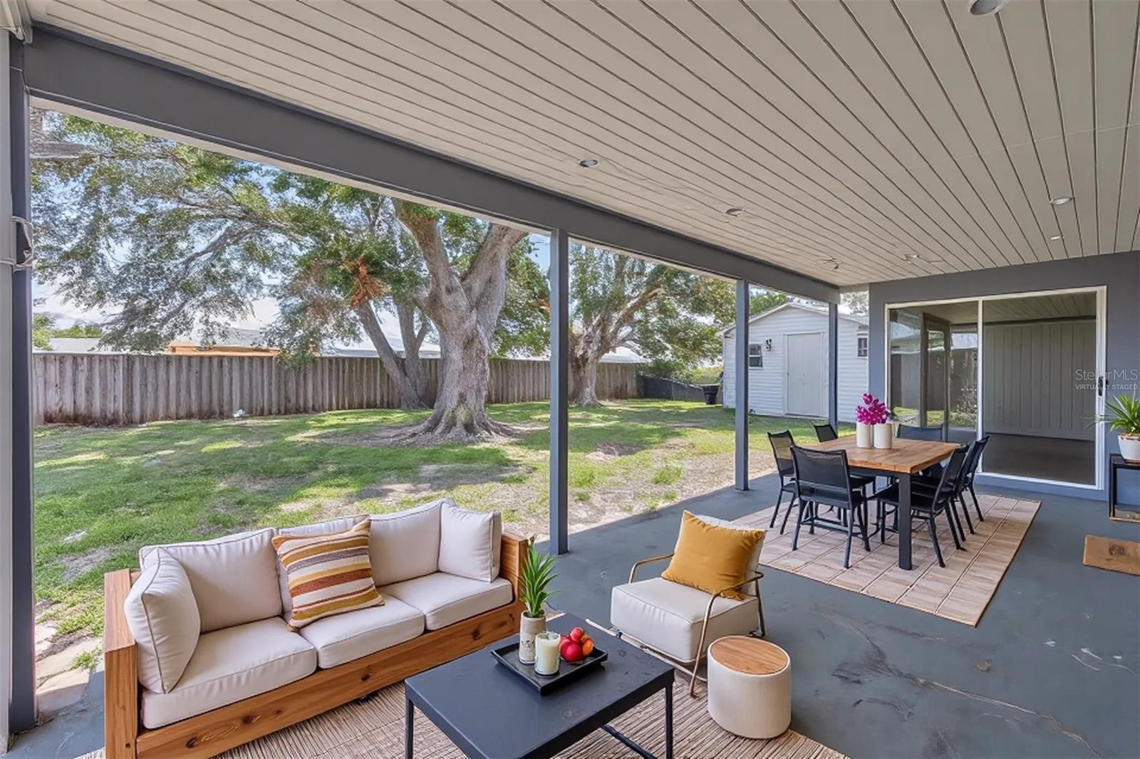 One or more photo(s) has been virtually staged. One or more photo(s) was virtually staged. How does a $30 a month electric bill sound? This home has whole house solar, installed 2022 at a cost of $39K, balance will be paid in full by seller at closing. DON’T LET THE SMALLER SQUARE FOOTAGE DISCOURAGE YOU; IT FEELS MUCH BIGGER WITH A GREAT FLOORPLAN. The home is on city water and sewer unlike a great deal of North Port. The roof, A/C, and electric are all in working order and updated in the past 10 years. The front door has been replaced as well as some of the windows. The interior has fresh paint and updated bathrooms. Plenty of closet space in the bedrooms with laminate wood flooring. There is a large open back porch that overlooks beautiful oak trees, a perfect spot to create a private oasis or space for the kids to play in the shade. A large shed is included and it is outfitted for power. Plenty of space in the side yard for a RV or boat. Bring your personal touch and enjoy many years as the seller has. NOT IN A FLOOD ZONE!!!