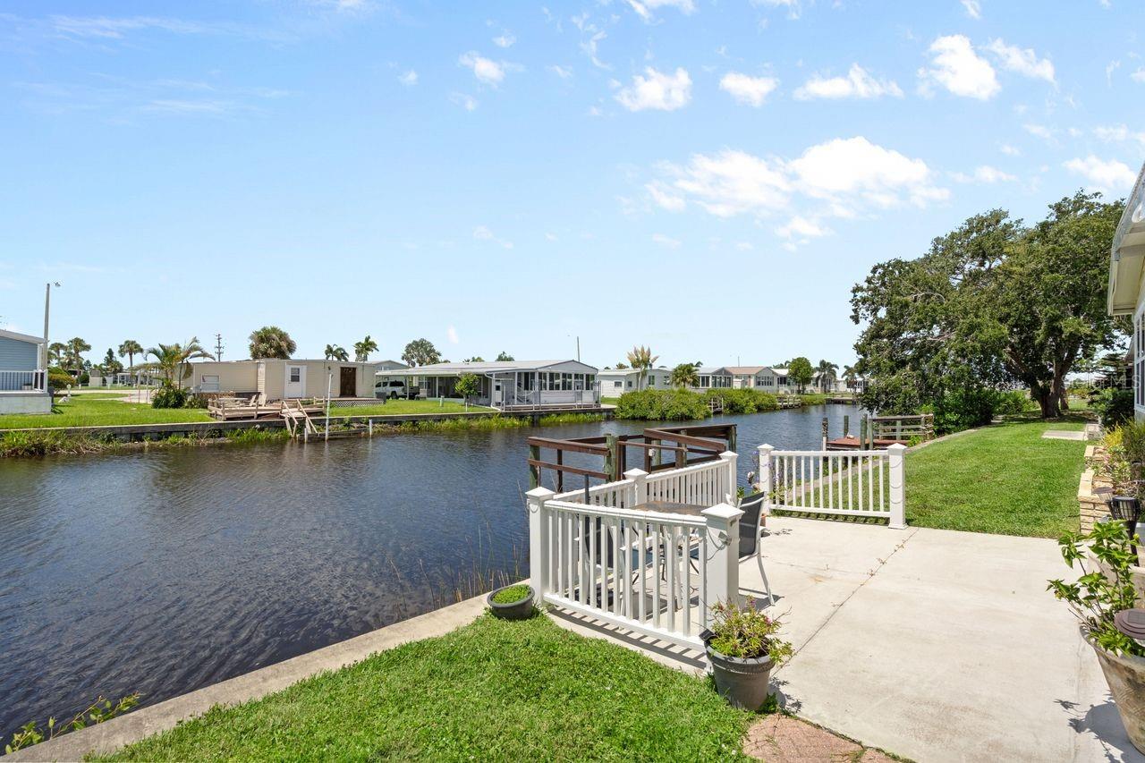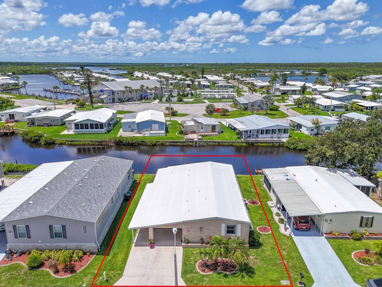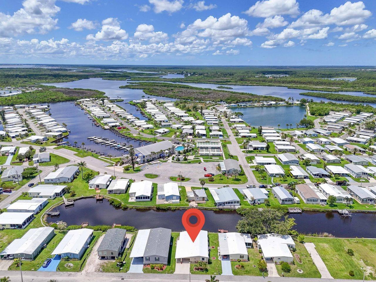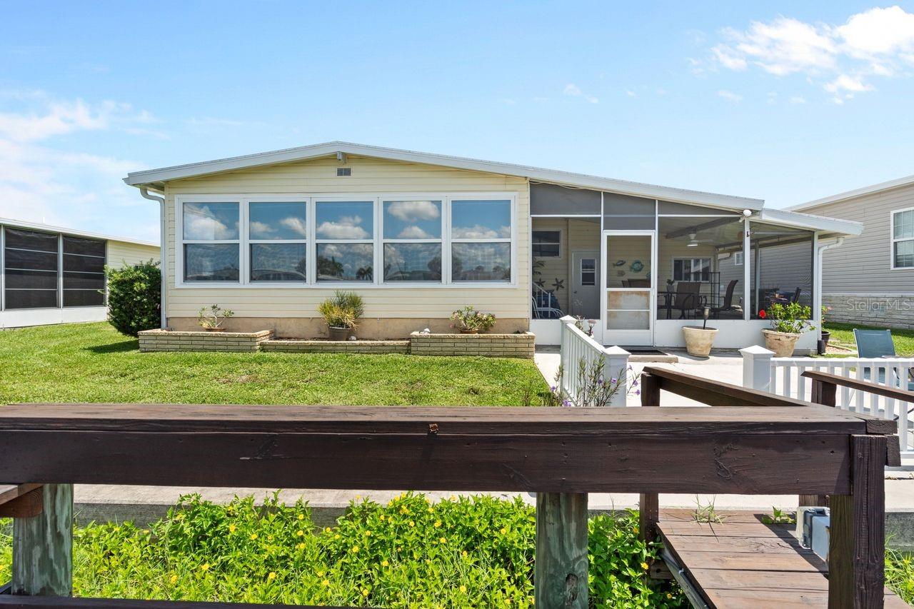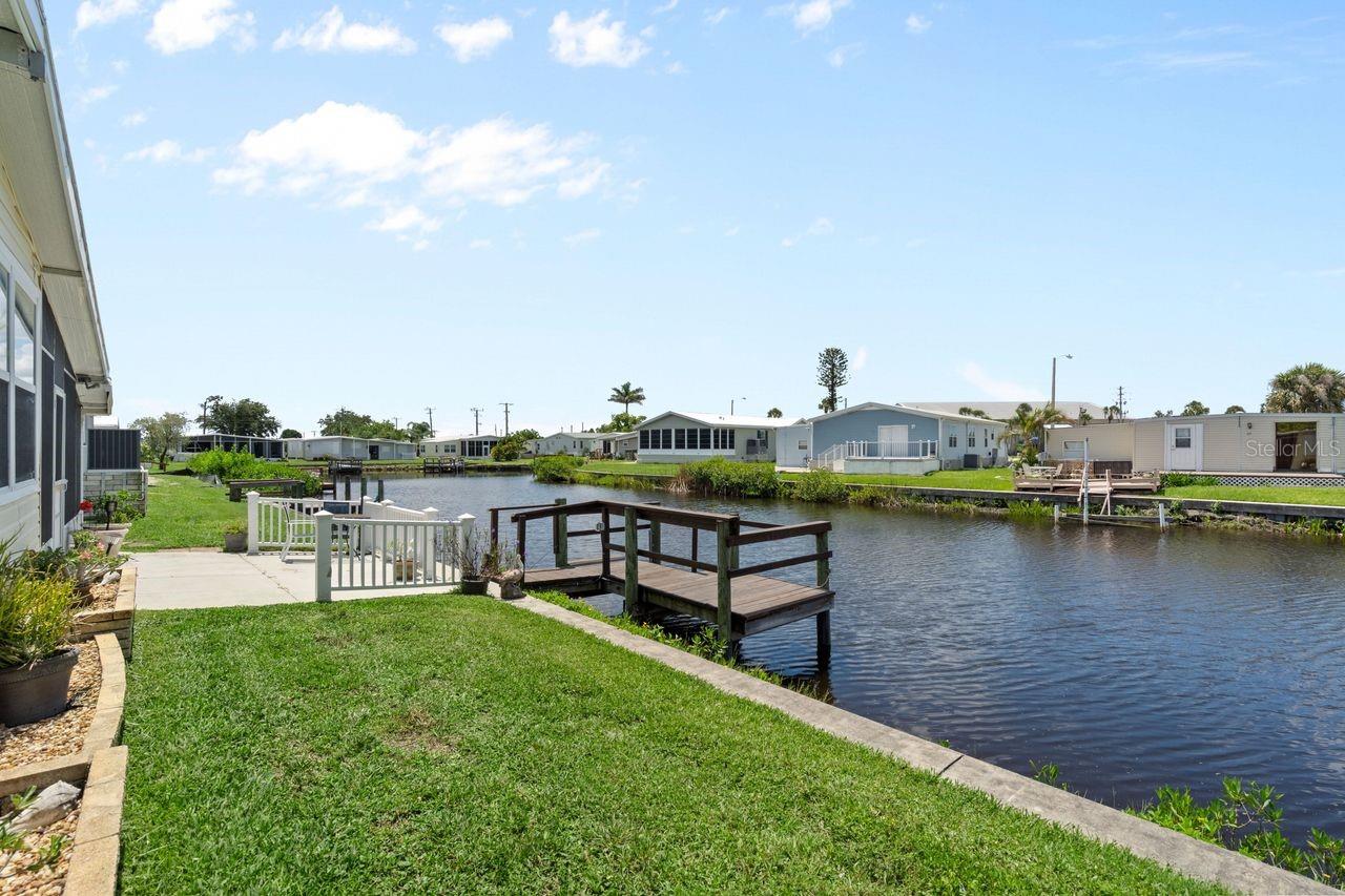 JUST REDUCED BY $10K! A very unique find within the 55+ GULF ACCESS community of Harbor Cove! This FURNISHED 2 bedroom, 2 bathroom, CANAL FRONT home with DOCK has approx. 1420 sq. ft., including an enclosed 220 sq. ft. Florida room with beautiful water views! Outside the brick front, extra large carport, plus attractive landscaping set the stage for what’s to follow. This well maintained residence in the PET SECTION is nicely updated and has a welcoming coastal vibe and décor. The kitchen has plenty of cabinetry and counter space, a breakfast bar, closet pantry, stainless steel appliances, an opening to the living room and a dining room with built in hutch nearby. Decide between dining and entertaining friends with stunning sunset views from the Florida room, the covered and screened lanai, or the waterfront patio. The large living room is nice and bright with plenty of windows and sliding doors direct to the Florida room. The impressive and spacious primary suite has a large walk-in closet and a remodeled ensuite bathroom with attractive cabinetry and tiled shower. The updated hall bathroom is handy for visitors staying in the well-appointed guest room with dual closets. You'll find lots of storage space in the attached shed with laundry area. Many recent UPDATES including new roof, vapor barrier, luxury vinyl flooring, and re-plumb (2025), hot water heater and washer and dryer (2024), A/C system and appliances (2022), plus impact windows and more. HOA fees of only $150 per month cover seawall maintenance, mowing and access to two swimming pools, hot tub, fitness center, sports courts and a 17,000 sq. ft. clubhouse overlooking the picturesque marina. Join the boat club and make friends at dances, holiday events, trivia, card games, golf cart parades and other organized events. Boating and fishing fans can just jump in their boat in the backyard and go explore the majestic Myakka River all the way to the Gulf. Nearby are restaurants, golf courses, spring training baseball stadiums, farmers markets, quality healthcare and several area beaches. Schedule a showing today to view this lovely property!