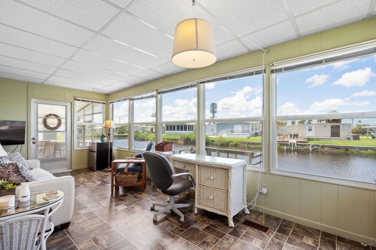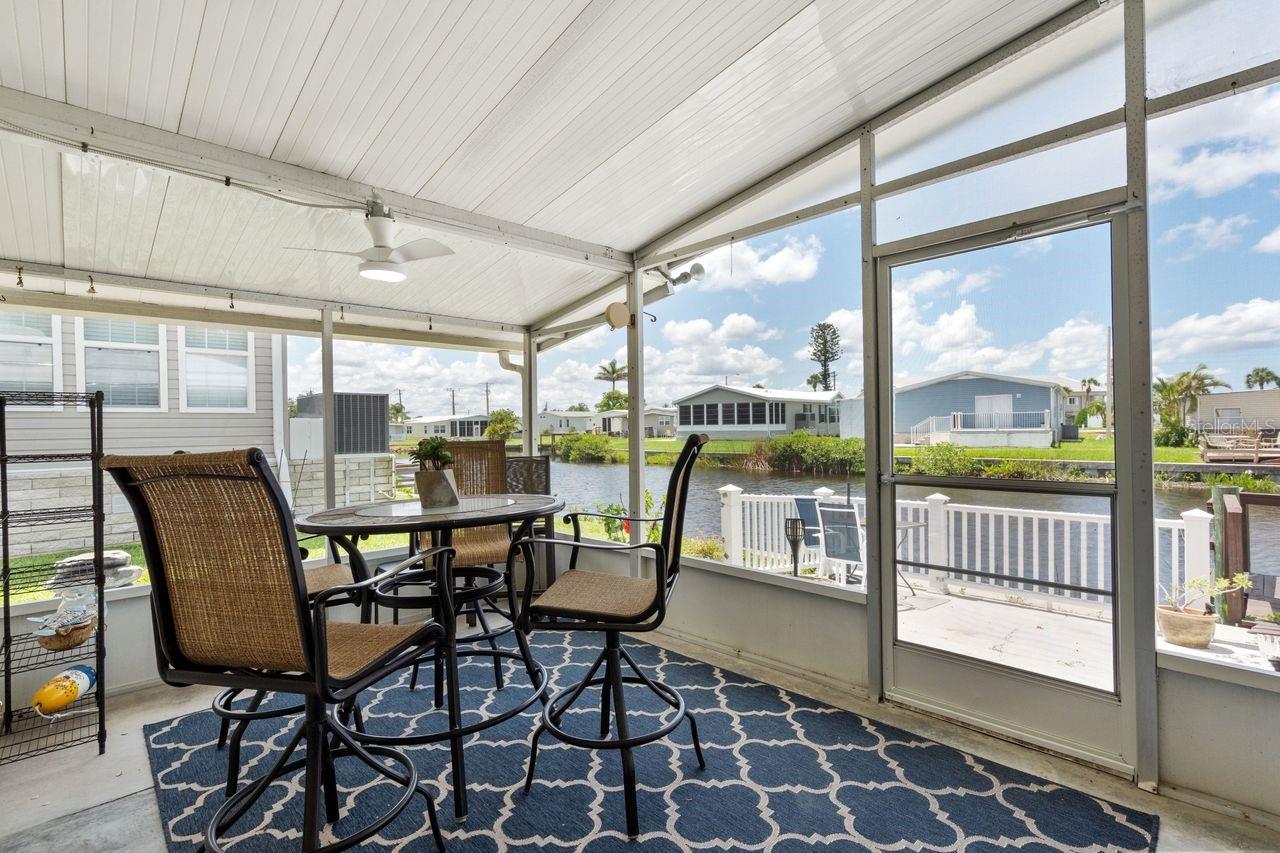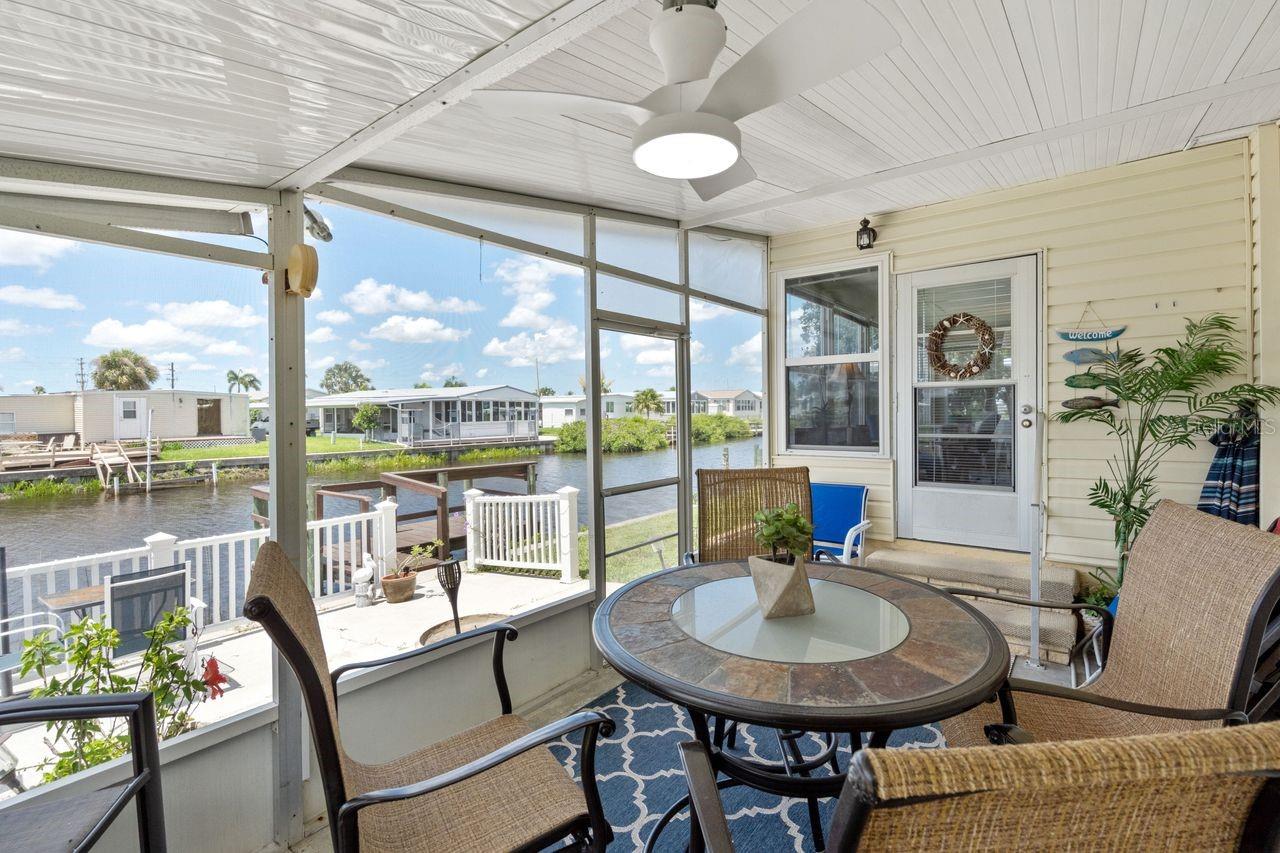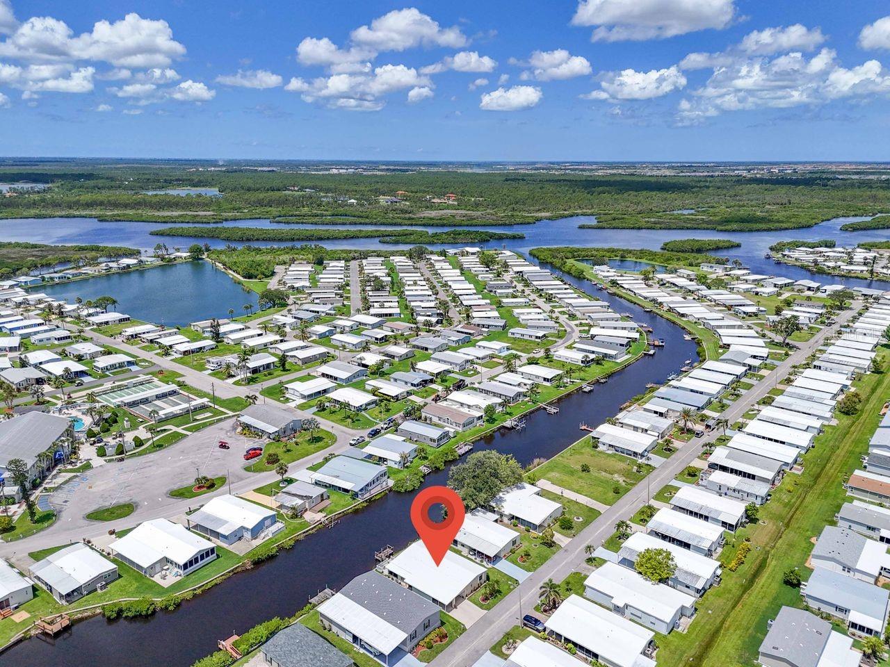 JUST REDUCED BY $10K! A very unique find within the 55+ GULF ACCESS community of Harbor Cove! This FURNISHED 2 bedroom, 2 bathroom, CANAL FRONT home with DOCK has approx. 1420 sq. ft., including an enclosed 220 sq. ft. Florida room with beautiful water views! Outside the brick front, extra large carport, plus attractive landscaping set the stage for what’s to follow. This well maintained residence in the PET SECTION is nicely updated and has a welcoming coastal vibe and décor. The kitchen has plenty of cabinetry and counter space, a breakfast bar, closet pantry, stainless steel appliances, an opening to the living room and a dining room with built in hutch nearby. Decide between dining and entertaining friends with stunning sunset views from the Florida room, the covered and screened lanai, or the waterfront patio. The large living room is nice and bright with plenty of windows and sliding doors direct to the Florida room. The impressive and spacious primary suite has a large walk-in closet and a remodeled ensuite bathroom with attractive cabinetry and tiled shower. The updated hall bathroom is handy for visitors staying in the well-appointed guest room with dual closets. You'll find lots of storage space in the attached shed with laundry area. Many recent UPDATES including new roof, vapor barrier, luxury vinyl flooring, and re-plumb (2025), hot water heater and washer and dryer (2024), A/C system and appliances (2022), plus impact windows and more. HOA fees of only $150 per month cover seawall maintenance, mowing and access to two swimming pools, hot tub, fitness center, sports courts and a 17,000 sq. ft. clubhouse overlooking the picturesque marina. Join the boat club and make friends at dances, holiday events, trivia, card games, golf cart parades and other organized events. Boating and fishing fans can just jump in their boat in the backyard and go explore the majestic Myakka River all the way to the Gulf. Nearby are restaurants, golf courses, spring training baseball stadiums, farmers markets, quality healthcare and several area beaches. Schedule a showing today to view this lovely property!