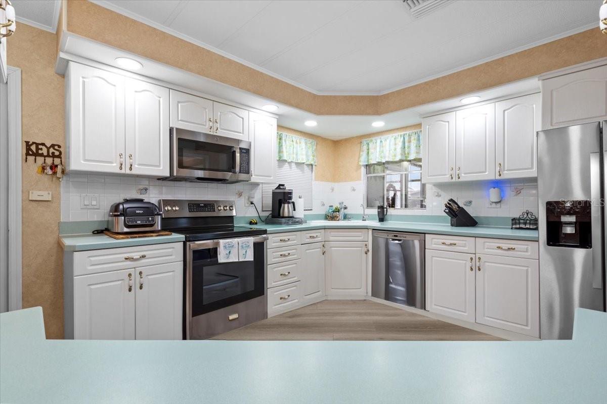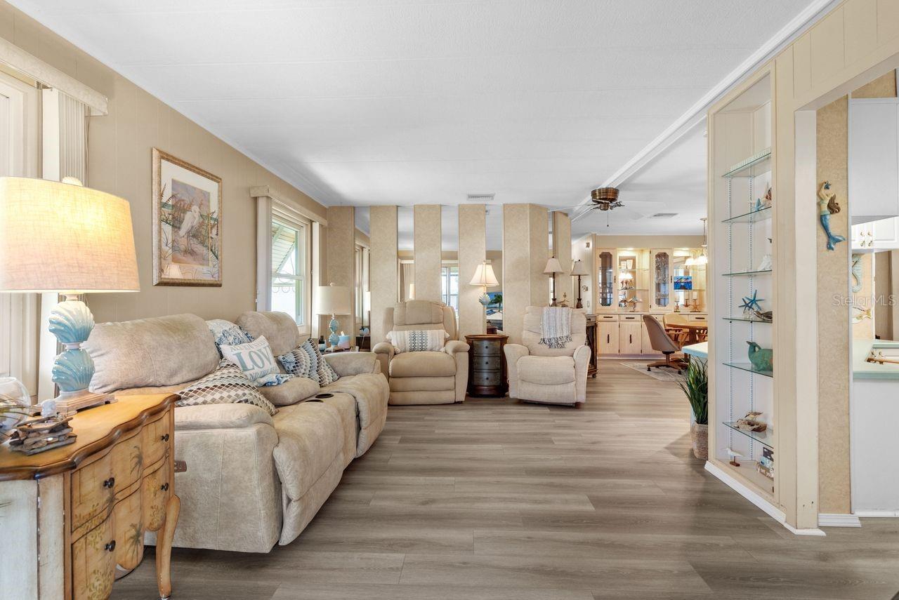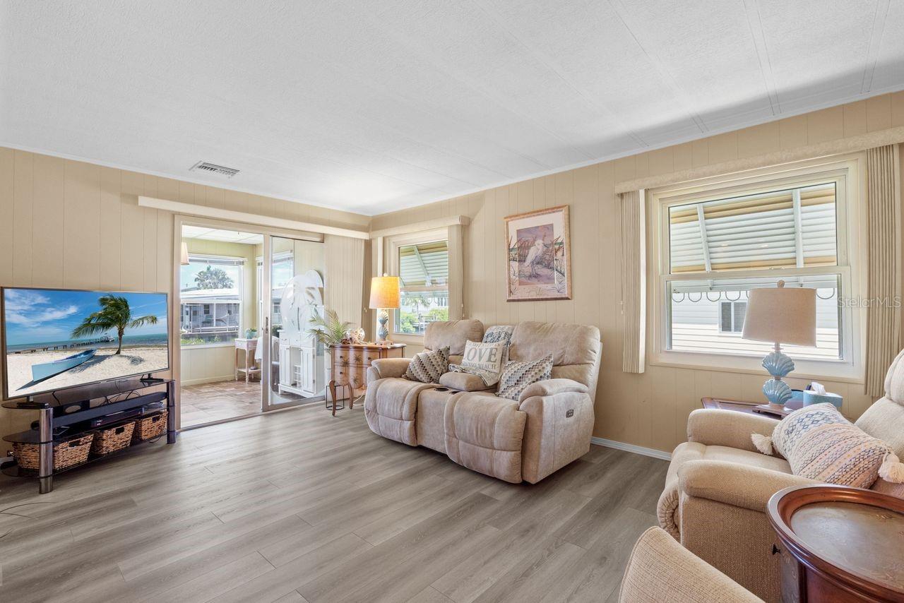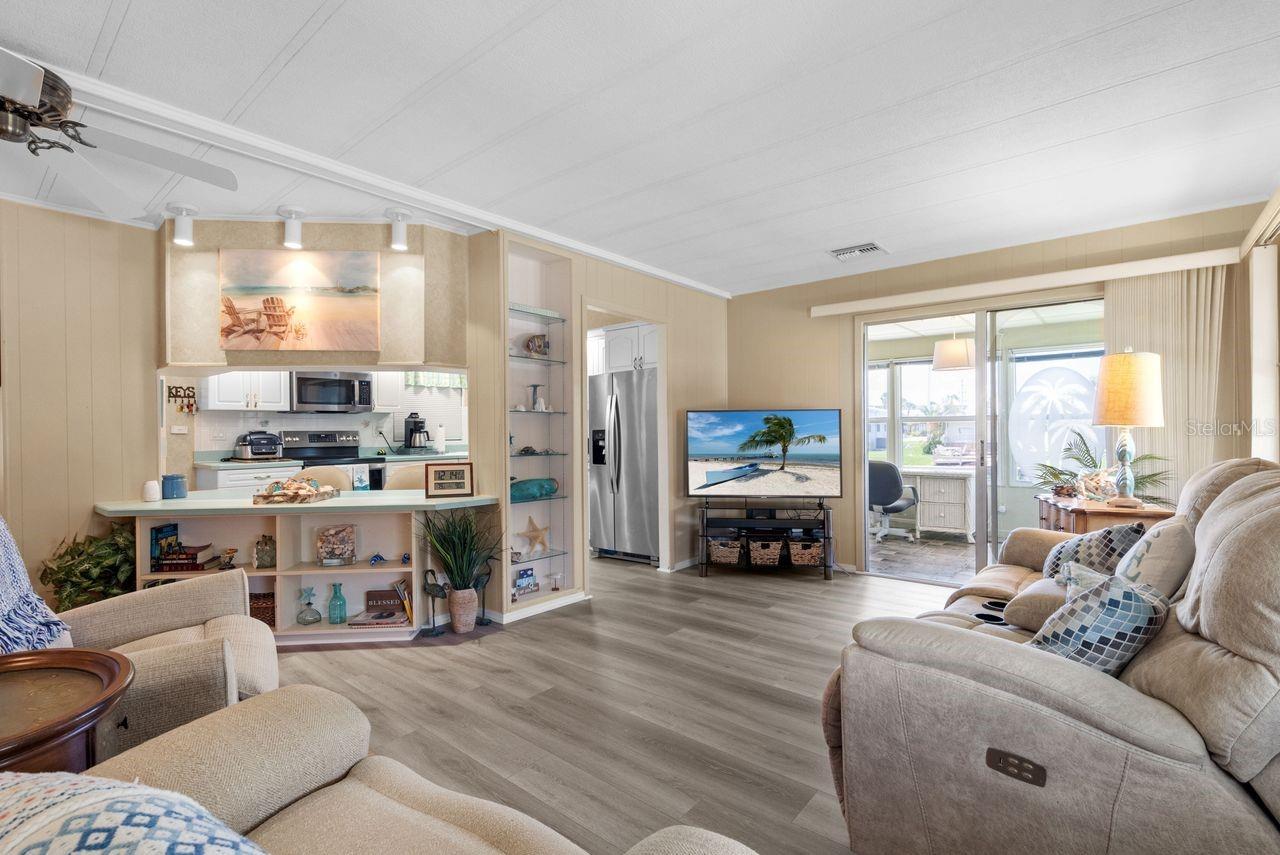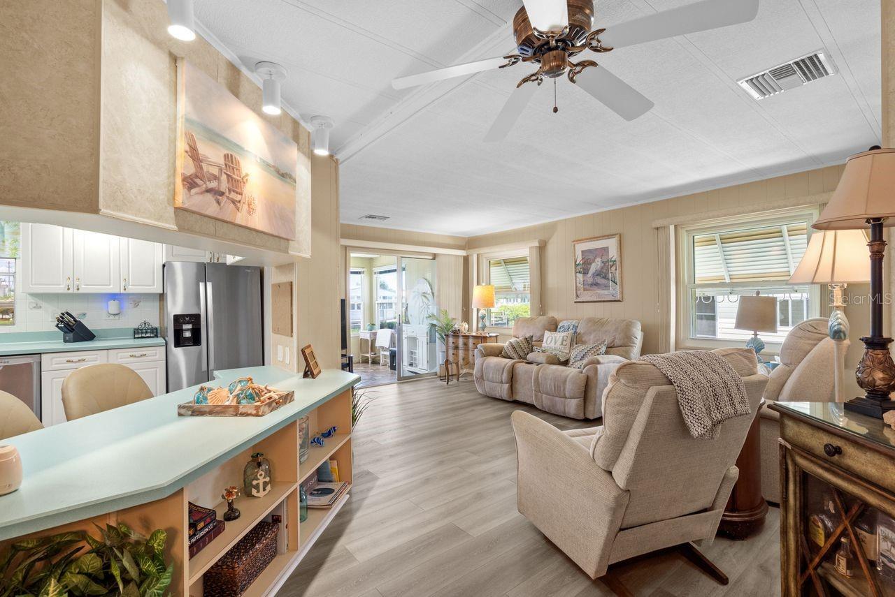 JUST REDUCED BY $10K! A very unique find within the 55+ GULF ACCESS community of Harbor Cove! This FURNISHED 2 bedroom, 2 bathroom, CANAL FRONT home with DOCK has approx. 1420 sq. ft., including an enclosed 220 sq. ft. Florida room with beautiful water views! Outside the brick front, extra large carport, plus attractive landscaping set the stage for what’s to follow. This well maintained residence in the PET SECTION is nicely updated and has a welcoming coastal vibe and décor. The kitchen has plenty of cabinetry and counter space, a breakfast bar, closet pantry, stainless steel appliances, an opening to the living room and a dining room with built in hutch nearby. Decide between dining and entertaining friends with stunning sunset views from the Florida room, the covered and screened lanai, or the waterfront patio. The large living room is nice and bright with plenty of windows and sliding doors direct to the Florida room. The impressive and spacious primary suite has a large walk-in closet and a remodeled ensuite bathroom with attractive cabinetry and tiled shower. The updated hall bathroom is handy for visitors staying in the well-appointed guest room with dual closets. You'll find lots of storage space in the attached shed with laundry area. Many recent UPDATES including new roof, vapor barrier, luxury vinyl flooring, and re-plumb (2025), hot water heater and washer and dryer (2024), A/C system and appliances (2022), plus impact windows and more. HOA fees of only $150 per month cover seawall maintenance, mowing and access to two swimming pools, hot tub, fitness center, sports courts and a 17,000 sq. ft. clubhouse overlooking the picturesque marina. Join the boat club and make friends at dances, holiday events, trivia, card games, golf cart parades and other organized events. Boating and fishing fans can just jump in their boat in the backyard and go explore the majestic Myakka River all the way to the Gulf. Nearby are restaurants, golf courses, spring training baseball stadiums, farmers markets, quality healthcare and several area beaches. Schedule a showing today to view this lovely property!