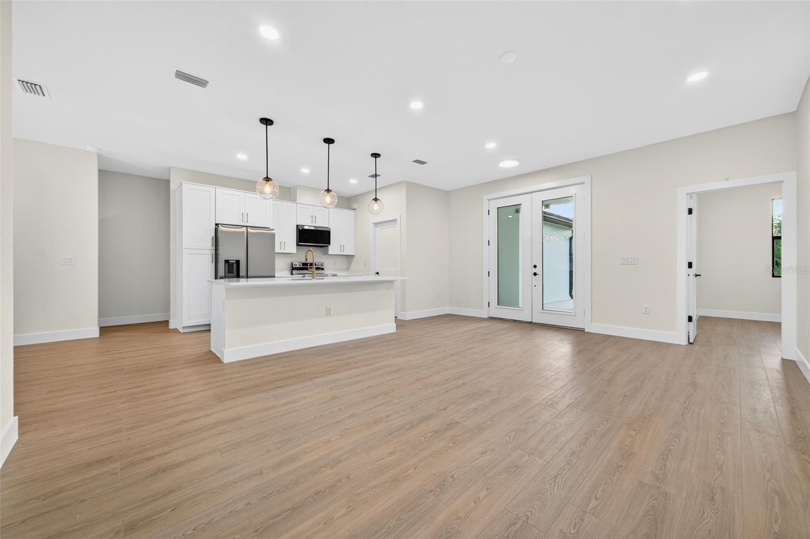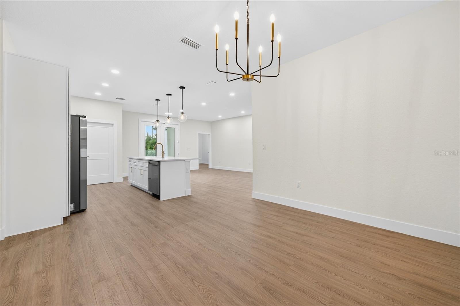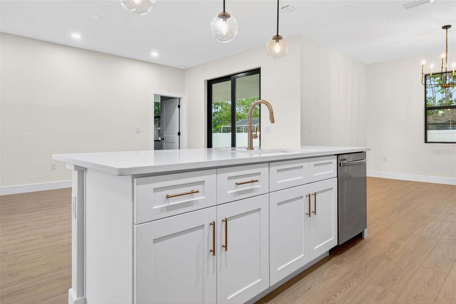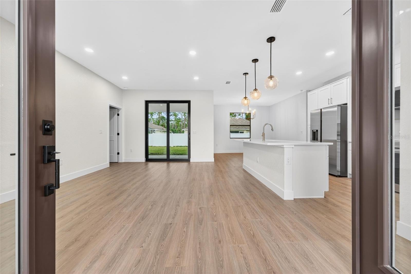 WOW!!! 1/2 an acre of land!!! Experience elevated Florida living in this beautifully crafted 3-bedroom, 2-bath home with an ADDITIONAL multi-use private room, thoughtfully designed by a private builder focused on quality and attention to detail. Set on a large open lot in one of North Port’s fastest-growing areas, this custom home stands out with high-end finishes, a smart layout, and exceptional convenience. Step inside and be welcomed by tall ceilings, an open and airy floor plan, and waterproof laminate flooring throughout—both stylish and built to last. The home is filled with natural light, thanks to numerous windows thoughtfully placed throughout, creating a warm and inviting atmosphere in every room. The stunning kitchen is the heart of the home, featuring a large island, modern fixtures, and premium appliances, ideal for everyday living and entertaining. A private office provides a quiet and functional space for work or creativity, while both bathrooms feature gorgeous designer tile for a spa-inspired touch. One or more photos have been virtually staged. Step outside to a spacious covered patio perfect for relaxing or hosting friends and family. The backyard includes a vinyl privacy fence along the back, offering just the right balance of openness and seclusion. The oversized driveway offers plenty of space for vehicles, toys, or guests, making everyday living and entertaining effortless. Additional highlights include hurricane-impact windows and doors, underground utilities, and a location that’s not in a flood zone—giving you comfort and peace of mind. Located just minutes from the brand-new Costco, shopping, dining, Wellen Park entertainment, and a short drive to some of Florida’s most beautiful Gulf Coast beaches, this home delivers the lifestyle you’ve been waiting for. Custom-built homes like this don’t come around often—and they don’t stay on the market long. Schedule your private tour today and make it yours! One or more photos have been virtually staged.