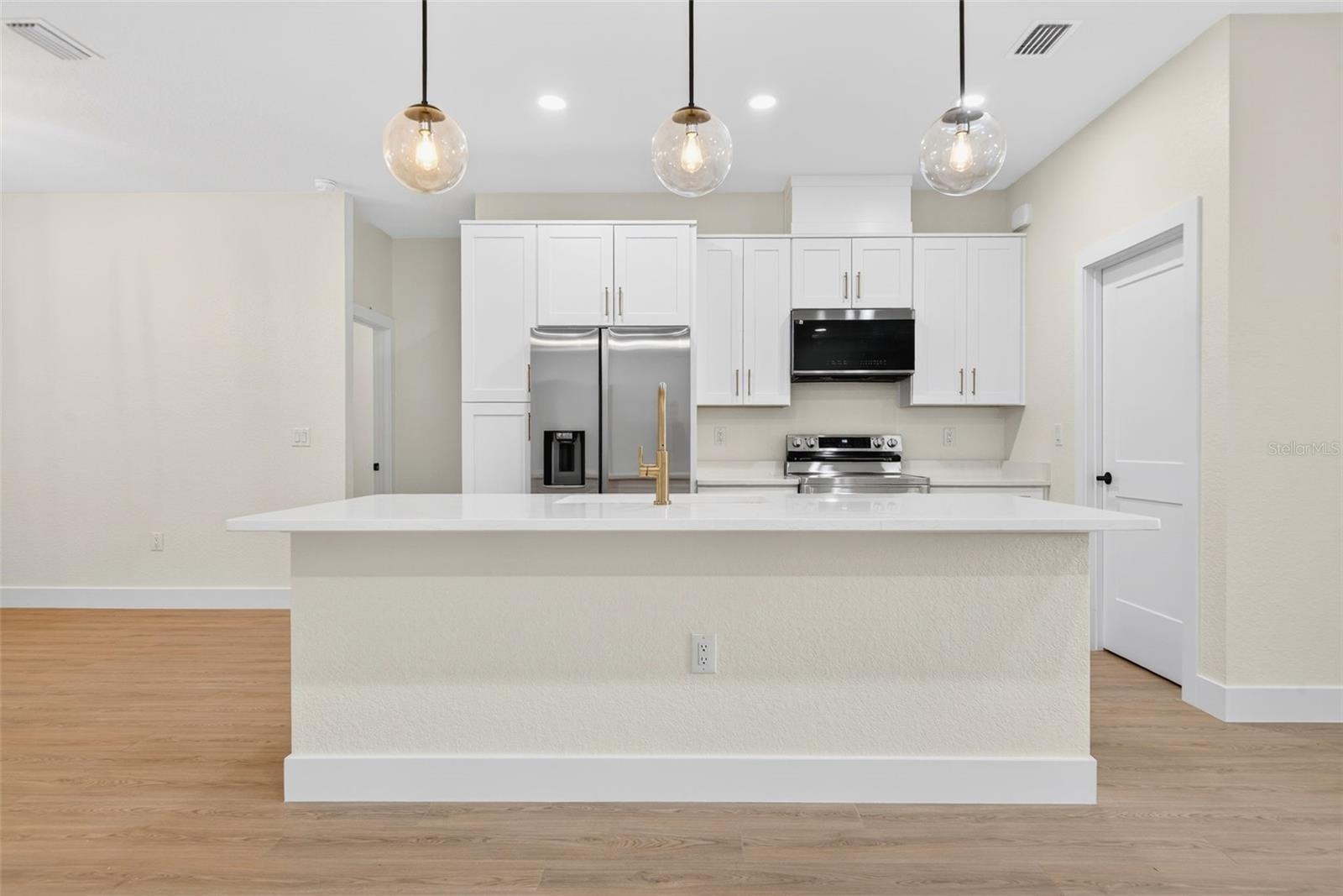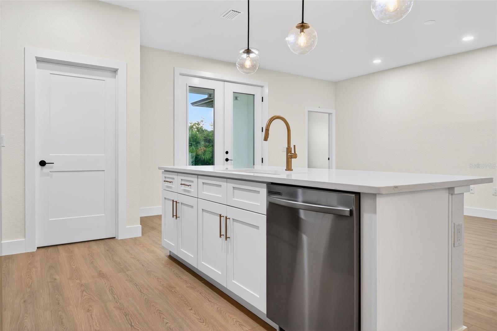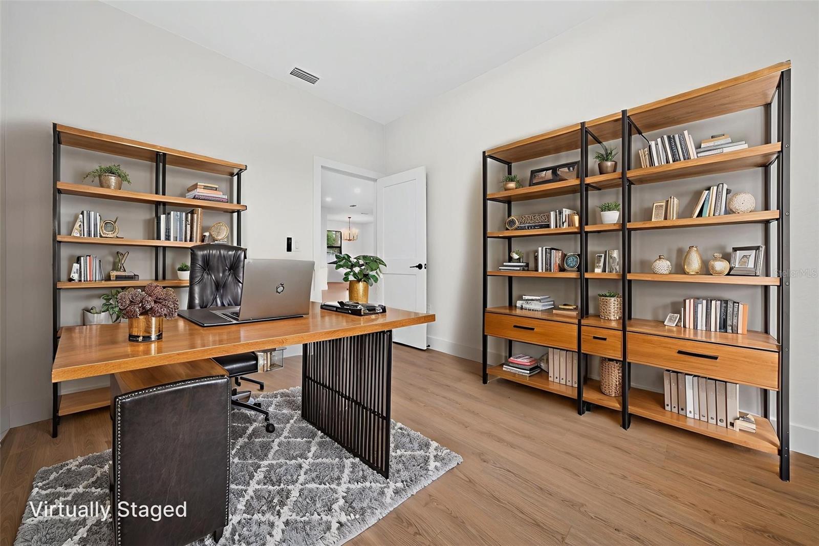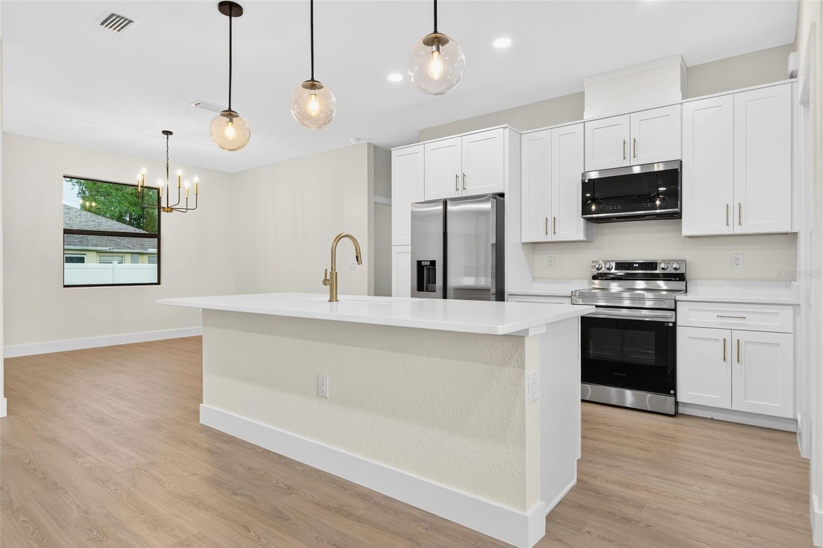 WOW!!! 1/2 an acre of land!!! Experience elevated Florida living in this beautifully crafted 3-bedroom, 2-bath home with an ADDITIONAL multi-use private room, thoughtfully designed by a private builder focused on quality and attention to detail. Set on a large open lot in one of North Port’s fastest-growing areas, this custom home stands out with high-end finishes, a smart layout, and exceptional convenience. Step inside and be welcomed by tall ceilings, an open and airy floor plan, and waterproof laminate flooring throughout—both stylish and built to last. The home is filled with natural light, thanks to numerous windows thoughtfully placed throughout, creating a warm and inviting atmosphere in every room. The stunning kitchen is the heart of the home, featuring a large island, modern fixtures, and premium appliances, ideal for everyday living and entertaining. A private office provides a quiet and functional space for work or creativity, while both bathrooms feature gorgeous designer tile for a spa-inspired touch. One or more photos have been virtually staged. Step outside to a spacious covered patio perfect for relaxing or hosting friends and family. The backyard includes a vinyl privacy fence along the back, offering just the right balance of openness and seclusion. The oversized driveway offers plenty of space for vehicles, toys, or guests, making everyday living and entertaining effortless. Additional highlights include hurricane-impact windows and doors, underground utilities, and a location that’s not in a flood zone—giving you comfort and peace of mind. Located just minutes from the brand-new Costco, shopping, dining, Wellen Park entertainment, and a short drive to some of Florida’s most beautiful Gulf Coast beaches, this home delivers the lifestyle you’ve been waiting for. Custom-built homes like this don’t come around often—and they don’t stay on the market long. Schedule your private tour today and make it yours! One or more photos have been virtually staged.