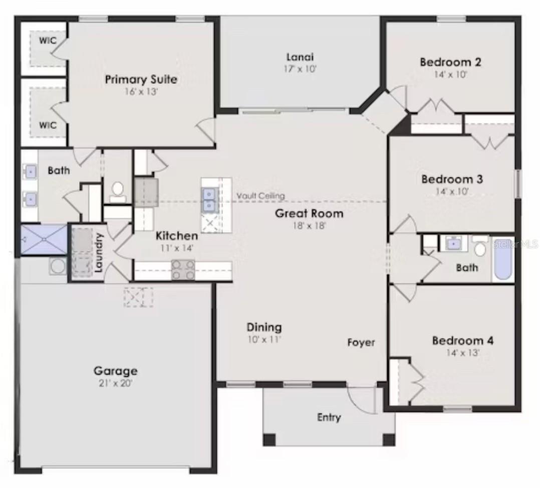 Welcome to your slice of paradise in North Port, Florida. This well-maintained home boasts an open floor plan with a neutral color palette waiting for your personal touch to claim it as your own. Vaulted ceilings and the open floor plan make this space ideal for entertaining. This two year old home features 4 bedrooms, 2 full bathrooms, a formal dining room, a living room, open kitchen concept, designated laundry room, covered and enclosed lanai, 2 car attached garage as well as closets galore for all your storage needs. Notable features include a 10 year transferable structural warranty (approximately 8 years remaining), PGT IMPACT Low E Insulated windows, high efficiency AC system, stainless steel kitchen appliances, tile throughout, 36” upper kitchen cabinets with soft close doors, granite countertops in kitchen and bathrooms, colonial style raised panel doors, stone accents on the front elevation of the home, irrigation system, epoxy garage floor and a beautiful paver driveway to accentuate outside features. The primary bedroom features an ensuite with walk-in shower and double sink vanities along with dual walk-in closets. The split floor plan includes three additional bedrooms on the opposite side of the home along with a full bath. Ample space for guests and family members or to create a home office. Sliding glass doors transport you from the family room to an outdoor covered and enclosed lanai with a ceiling fan to keep everyone cool while enjoying the scenery of a spacious and lush backyard. Conveniently located near local amenities with easy access to commuter routes as well. This home checks all the boxes so schedule a showing today!