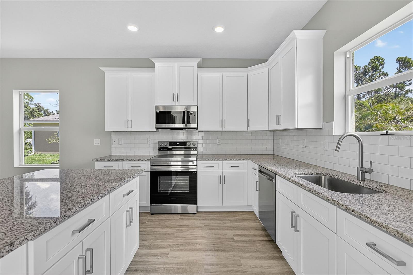 One or more photo(s) has been virtually staged. **THIS PROPERTY QUALIFIES FOR A 1% LENDER INCENTIVE IF USING PREFERRED LENDER. INQUIRE FOR MORE DETAILS.** Ask about Builder Incentives! Discover the perfect blend of modern design and thoughtful craftsmanship in this stunning new construction 4-bedroom, 3-bathroom home, ideally located in the heart of North Port. From the moment you step inside, you’ll be captivated by the soaring 9’4” ceilings that create a bright and airy ambiance throughout. The open-concept living area is designed for effortless entertaining, anchored by an impressive 8’ triple-panel sliding glass door that invites natural light and seamlessly connects to the covered lanai—ideal for enjoying Florida’s indoor-outdoor lifestyle. The chef’s kitchen is a showstopper, complete with gleaming Quartz countertops, Samsung stainless steel appliances, elegant 42” upper cabinets, and an oversized island that serves as the heart of the home—perfect for prepping, dining, or gathering with loved ones. The Owner’s Suite is a true retreat, featuring a sophisticated tray ceiling and a spa-like ensuite. Enjoy a dual-sink vanity, a sleek glass-enclosed shower, and his-and-hers walk-in closets that offer abundant storage. The additional bedrooms are generously sized, with ample closet space, while the guest bathrooms elevate the home’s appeal with floor-to-ceiling tiled tub/shower combos for a modern touch. Functionality meets style in the thoughtfully designed laundry room, complete with extra linen storage and a washer and dryer included—ready to simplify your daily routine.