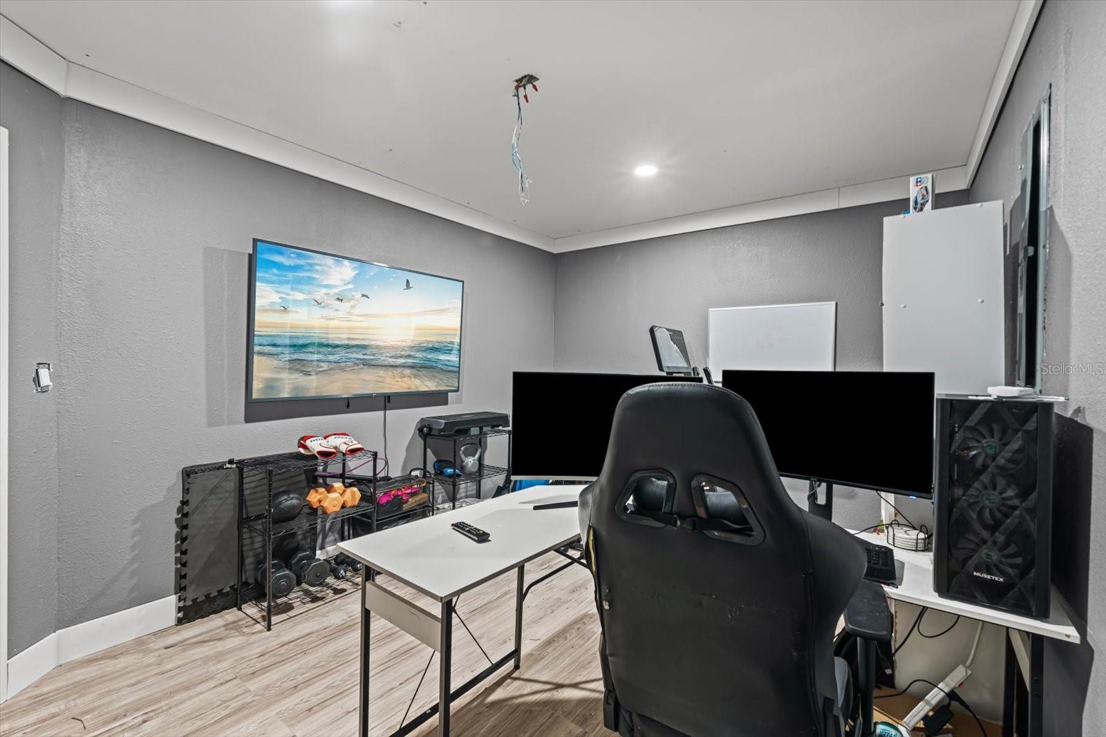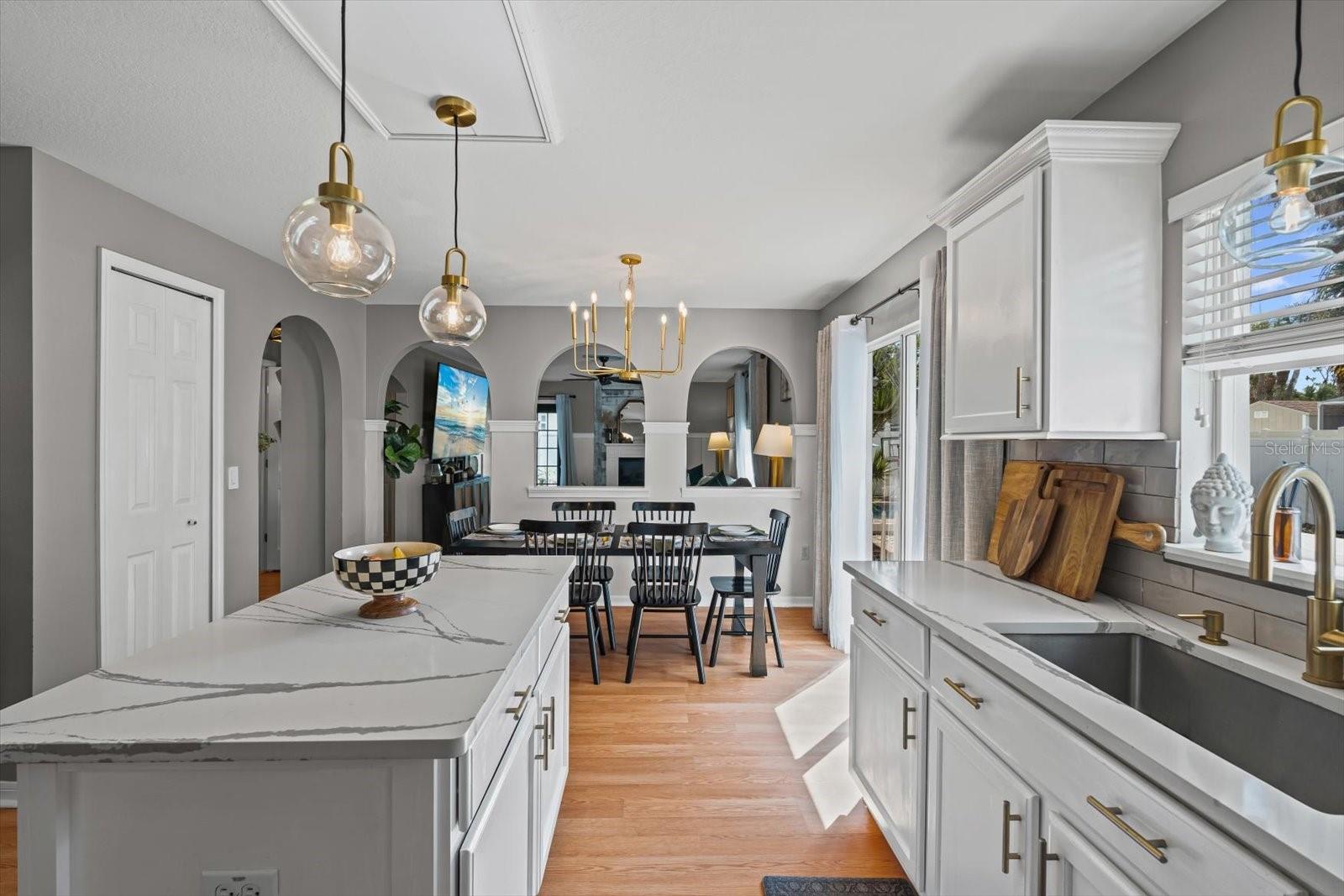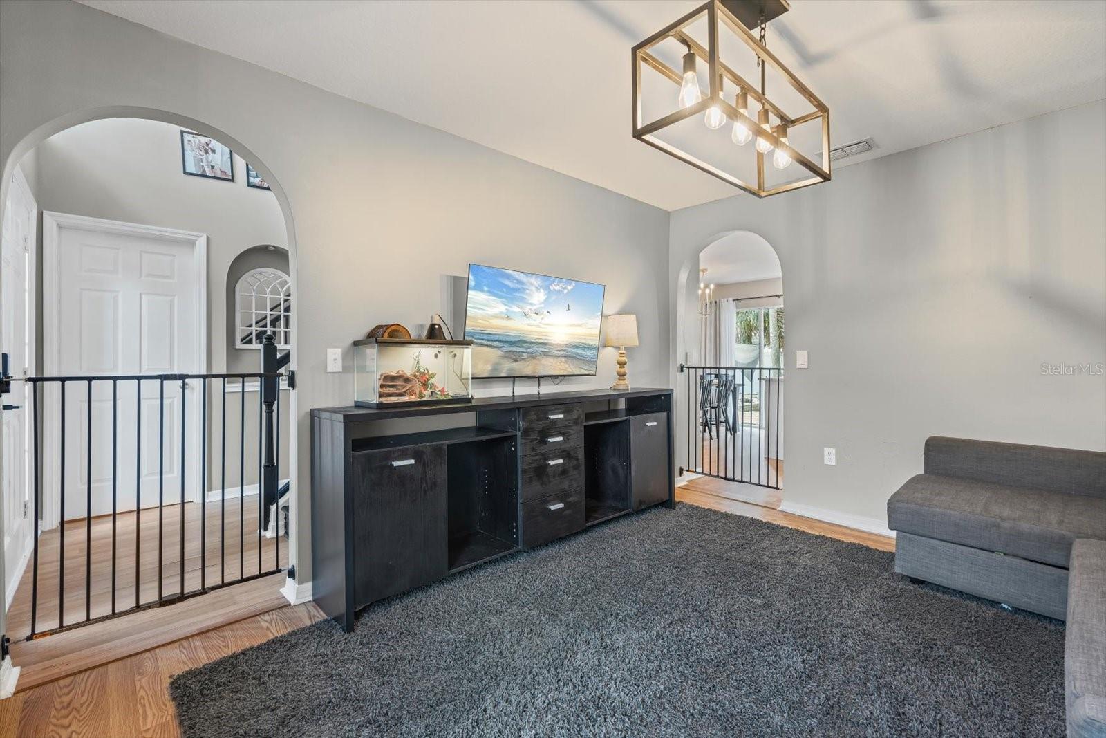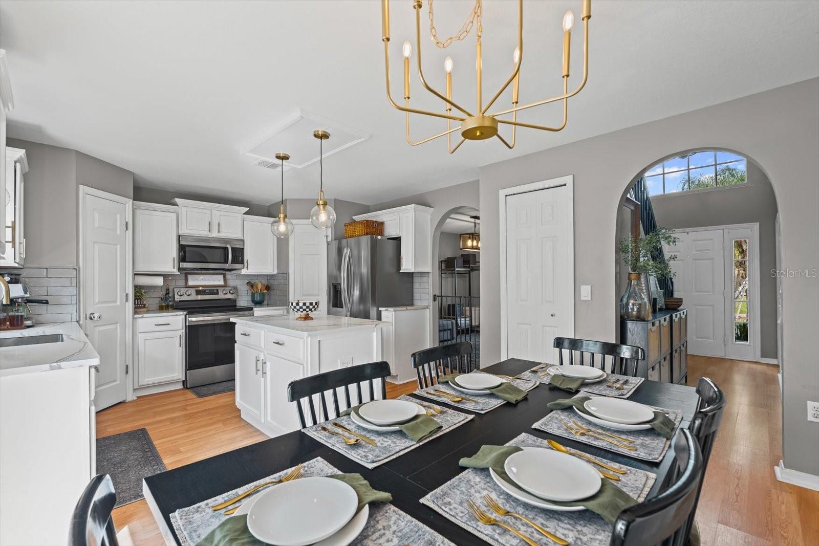 Discover an exceptional blend of style, function, and comfort in this move-in-ready 5-bedroom, 2.5-bathroom home. Spanning 2,248 square feet, this coveted corner lot property has been thoughtfully upgraded with major systems and finishes, offering a truly turn-key experience. Throughout the home, you'll find elegant luxury vinyl plank flooring, with durable laminate in the bathrooms. The heart of the home is the updated kitchen, boasting sleek LG appliances, beautiful quartz countertops, an undermount sink, and a garbage disposal. A convenient pantry provides ample storage. The kitchen opens up to a separate living room, perfect for casual gatherings, while the main family room offers a cozy space to relax by the warmth of an electric fireplace. The first floor also features a powder room, a bedroom, and a dedicated laundry room with new LG washer and dryer appliances. Upstairs, the spacious primary suite is a true retreat, featuring large his-and-hers walk-in closets and a private ensuite bathroom. Three more bedrooms with sizable closet space and an additional full bathroom complete the second floor. Previously a 3-car garage, one of the bays has been cleverly converted into a flexible office space, perfect for remote work or a home gym, still leaving a two-car garage with plenty of room for storage and organization. Step outside into your private backyard paradise, fully fenced for privacy and security. The in-ground pool (2015) includes a unique in-pool table and umbrella—the perfect spot for summer gatherings. For added peace of mind, the home is equipped with hurricane shutters. The property also features a well for irrigation and a water softening system (2019), enhancing daily convenience. Major system upgrades include a new roof and AC unit (both 2022). Situated in Flood Zone X, this property does not require flood insurance, making it an even more attractive investment. Located in a welcoming, no-HOA neighborhood, this home offers the freedom to live without restrictions. Cranberry Elementary, an A+ rated school, is just a short stroll away. Don’t miss the opportunity to make this beautiful property your new home. Schedule your private showing today!