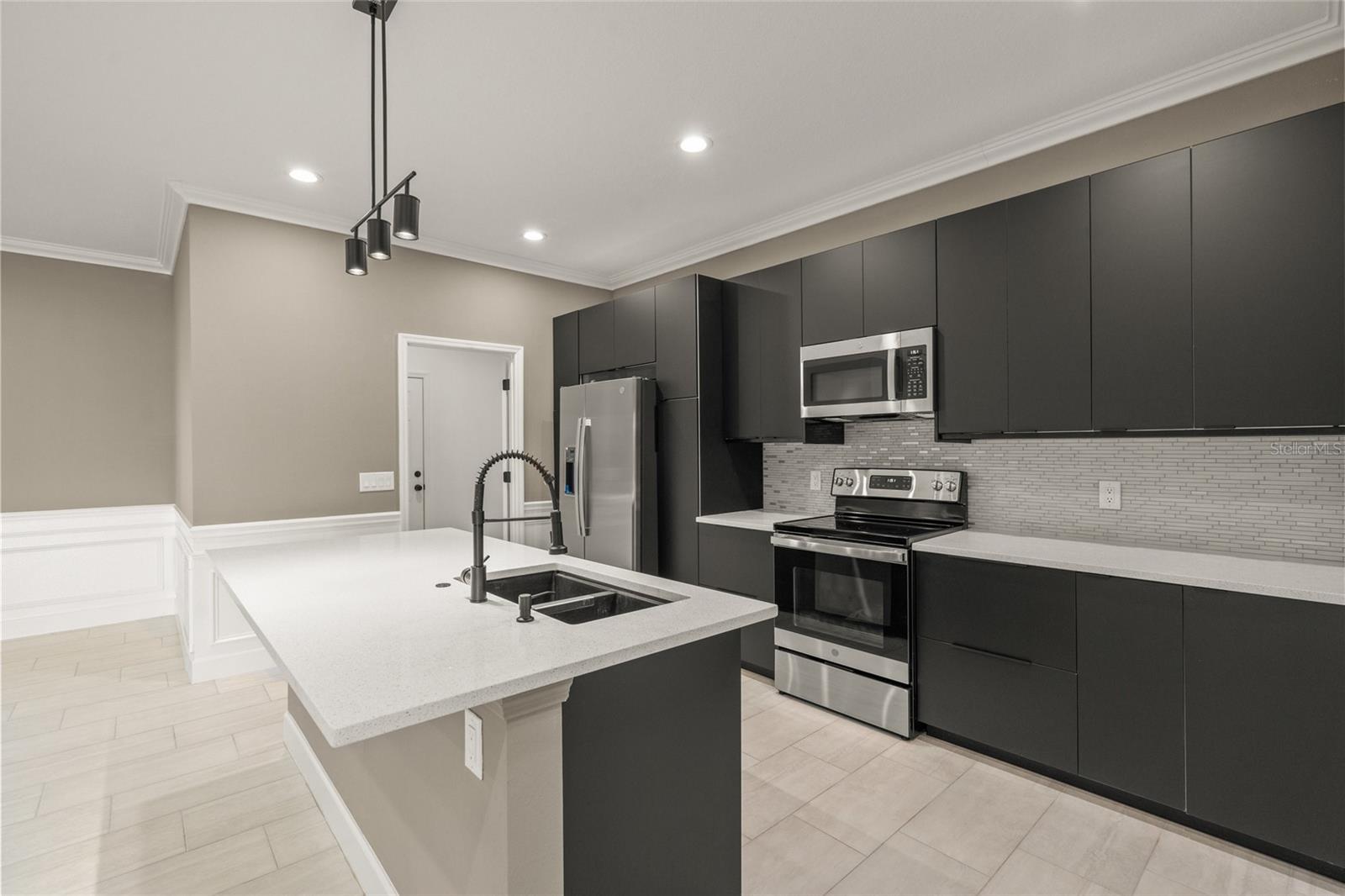One or more photo(s) has been virtually staged. This BEAUTIFUL 2023 construction home has NEVER BEEN LIVED IN and is located in North Port. What a dream! The owner has spared no expense and provides a well-built home with a stem wall, concrete, block, and stucco construction, and has included IMPACT WINDOWS throughout. The tray ceilings, crown molding, wainscot, oversized baseboards, and feature wall in the great room all contribute to an elegant atmosphere. The modern kitchen cabinets, quartz countertops, stainless steel appliances, pendant lighting, ceiling fans, natural colors throughout, ceramic tile, and laminate flooring (NO CARPET) create a contemporary and stylish feel. The bathrooms have been tastefully completed with beautiful cabinets, fixtures, and upgraded tile, including floor-to-ceiling tile in the primary shower. The windows throughout have been finished with solid sills. The extended patio includes double doors and brick pavers for your enjoyment. A beautifully landscaped backyard makes for a peaceful retreat. The epoxy flooring in the garage enhances the functionality and appeal of this amazing home. And as an added bonus, there are NO HOA and NO CDD fees. Located close to where the Sarasota Memorial Hospital will be building its new facility. And you are not too far from the Cool Today Park, where the Atlanta Braves have spring training, or the famous Venice beaches. Make your appointment today to see this AMAZING home.