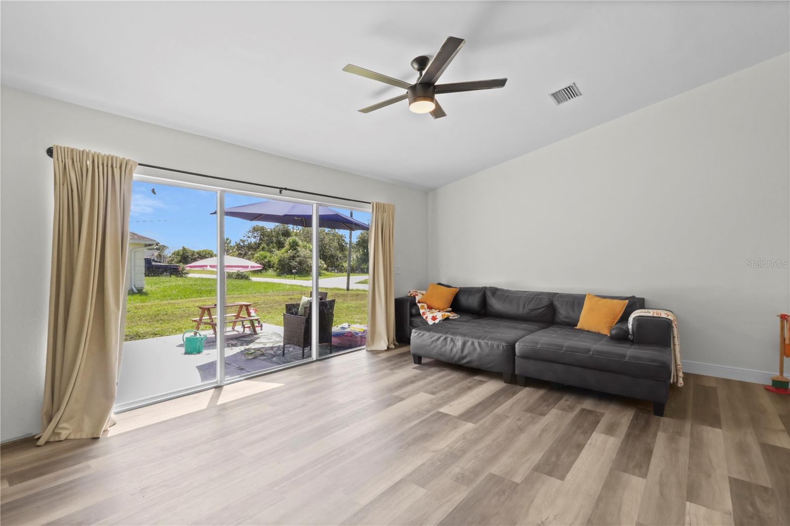 Short Sale. Welcome to this spacious 4-bedroom, 2-bath, 2-car garage home located on a large corner lot in a quiet North Port neighborhood. Featuring an open floor plan with soaring ceilings and nearly 1,800 sq. ft. of living space, this home is full of potential and requires TLC. The kitchen offers granite countertops, wood cabinetry, stainless steel appliances, and a pantry. The second bath includes a tall vanity, granite countertop, and modern fixtures and room to finish the updates started. Luxury vinyl flooring runs throughout the home for a stylish, low-maintenance touch. Additional features include a spacious laundry room, cost saving solar panels, a welcoming patio perfect for outdoor lounging or entertaining and a cozy firepit where you can relax and gaze up at the stars. Enjoy easy access to local beaches, waterways, golf courses, shopping, dining, and public parks with bike trails, picnic areas, and boat ramps leading to Charlotte Harbor and the Gulf.