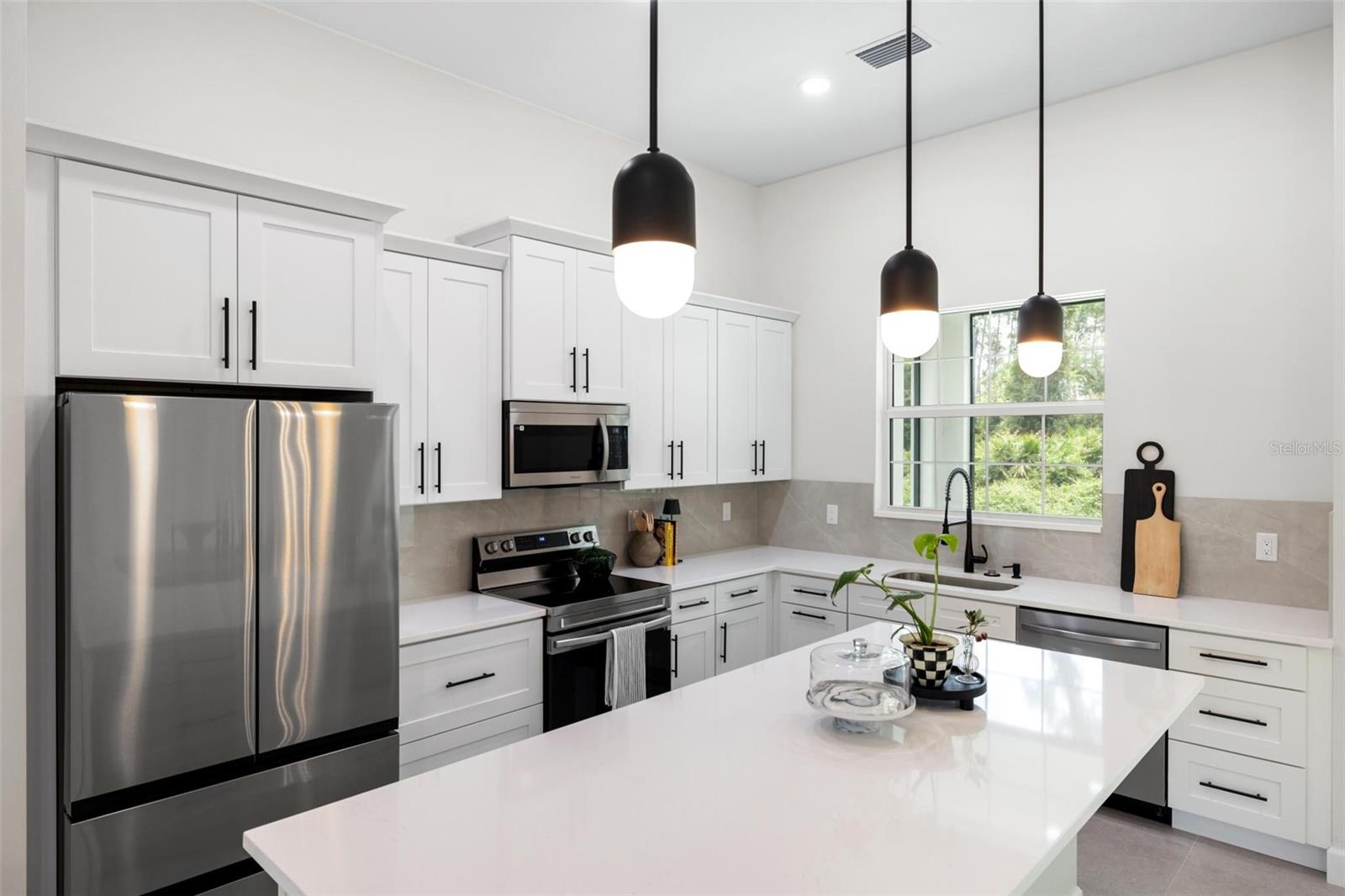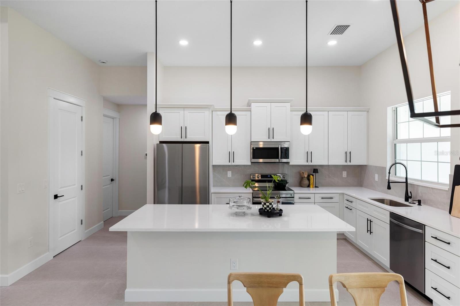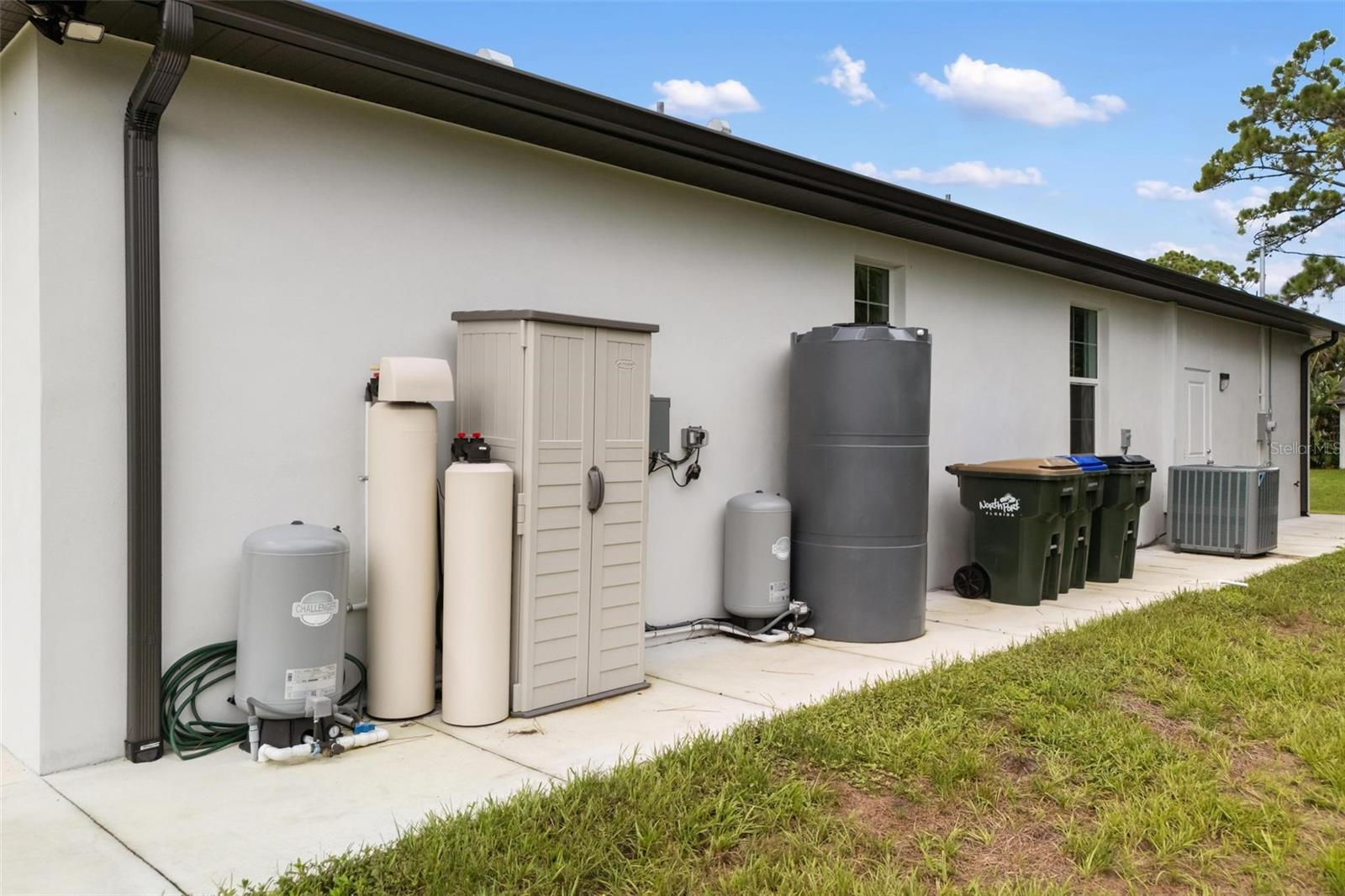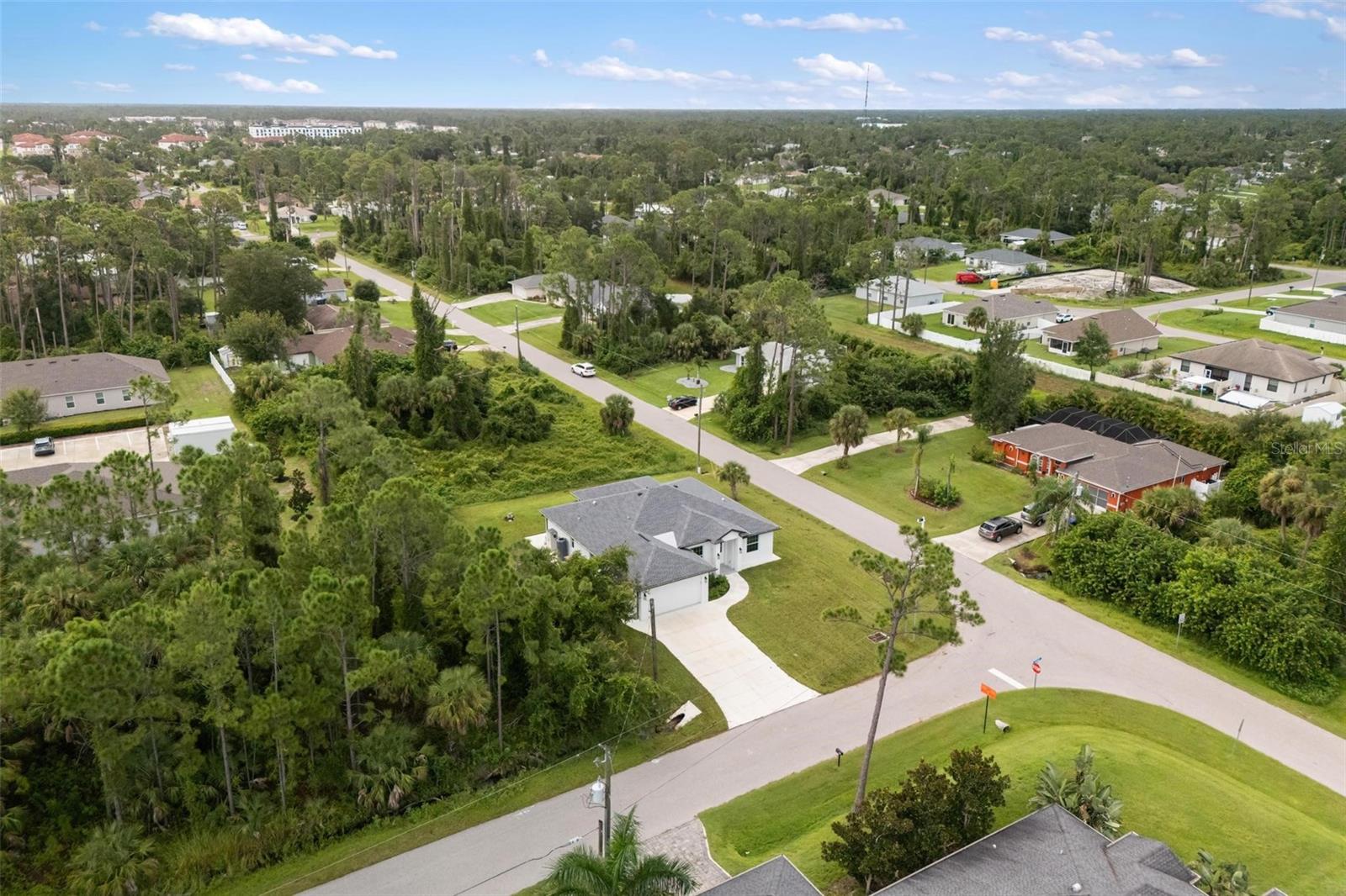 Welcome to this stunning, custom-built home on an oversized corner lot in the heart of North Port. Featuring 3 bedrooms, 2 bathrooms, plus an office, this split-bedroom design offers privacy with the primary suite on one side and the guest bedrooms on the other. The office is conveniently located at the front of the home, just off the entryway. Inside, you’ll find soaring ceilings and a bright open floor plan with a spacious living room accented by elegant Spanish porcelain tile. The gourmet kitchen includes quartz countertops with backsplash, tall soft-close cabinets, a breakfast bar, and premium appliances. Both bathrooms feature custom tilework, quartz counters, and beautifully tiled walk-in showers. This home is loaded with upgrades, including a WHOLE HOUSE REVERSE OSMOSIS WATER SYSTEM—a rare and valuable feature providing pure water throughout the home. The full IRRIGATION SYSTEM keeps the lawn and landscaping lush year-round. It also includes hurricane-impact windows and doors, custom wood shelving in the pantry and closets, epoxy garage floor, a complete gutter package, sidewalk wrapping the home, a CULVERT PIPE WITH COMPLETE COVERED DRAINAGE SYSTEM, an extra-wide driveway, and a laundry room with utility sink. Located near US-41, I-75, beaches, Wellen Park, shopping, and dining—this property combines comfort, convenience, and quality. Don’t miss the chance to own this truly unique home. Schedule your private showing today!
